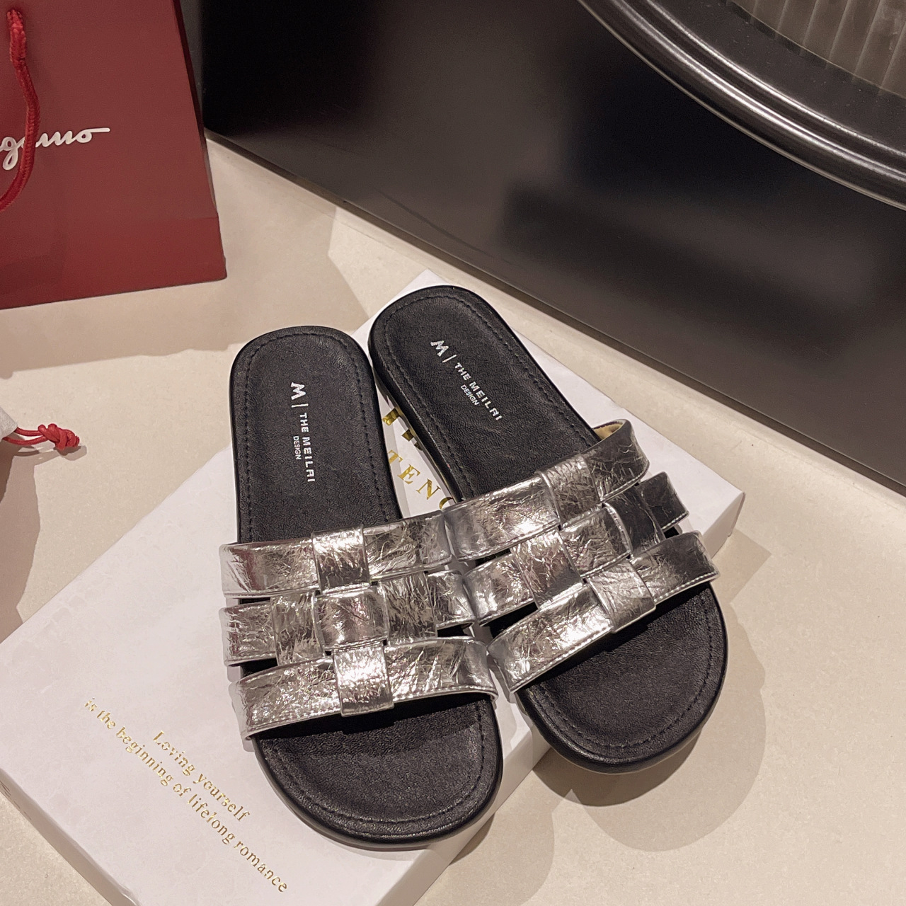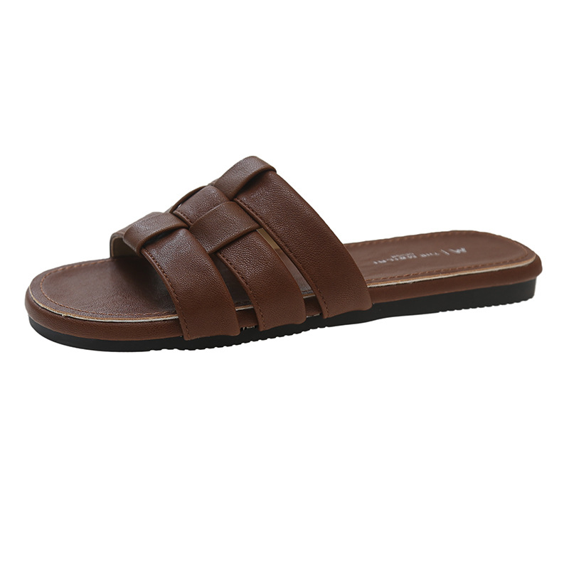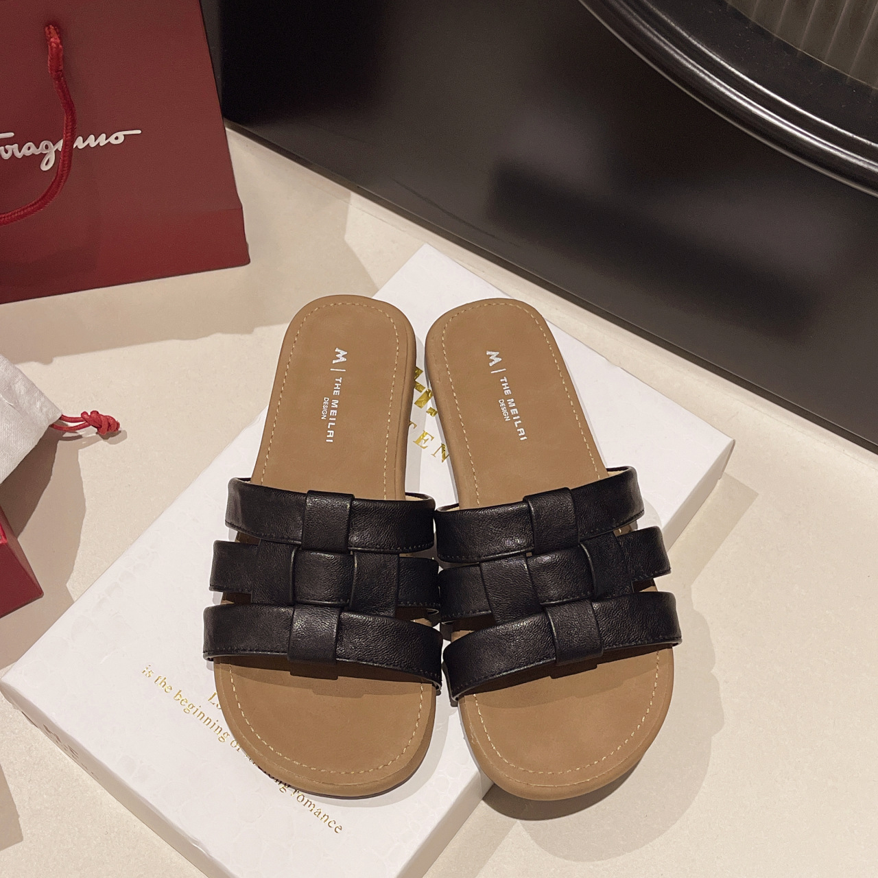 仙女风平底一字拖鞋女外穿夏季新款百搭配裙子编织沙滩凉拖鞋