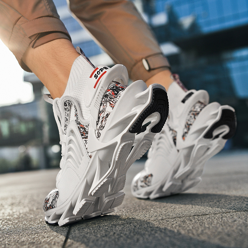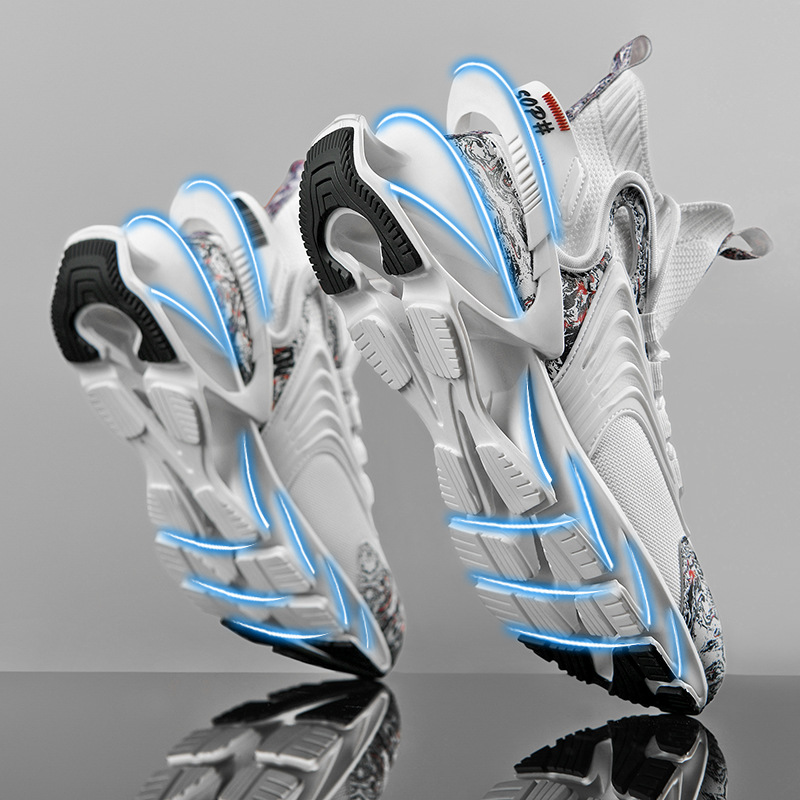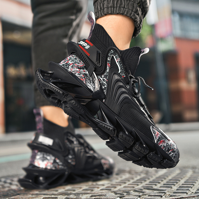跨境爆款飞织刀锋潮鞋男士中高帮运动鞋透气网面鞋防滑耐磨篮球鞋