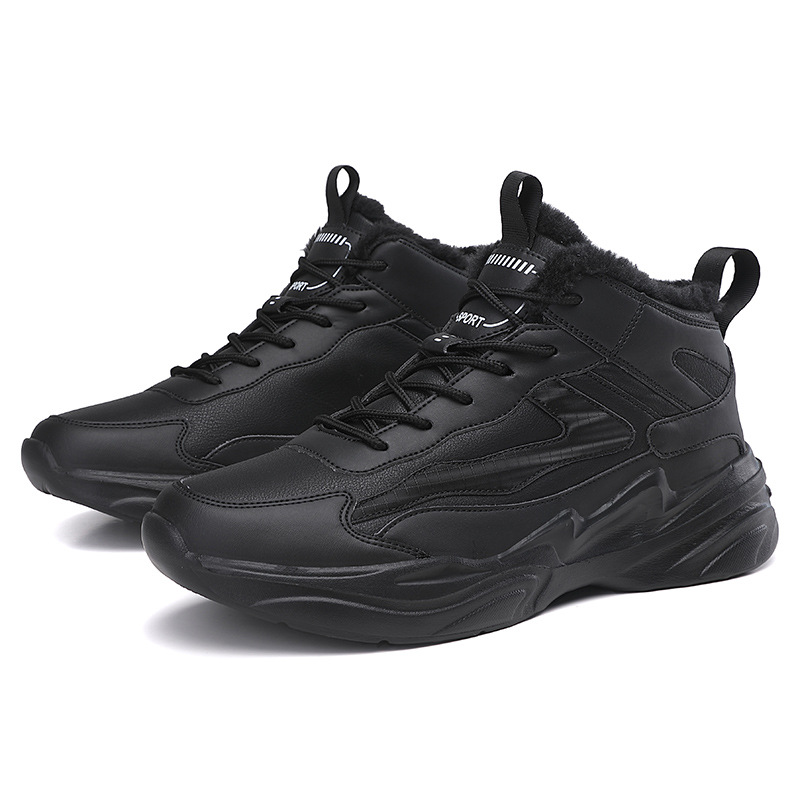 跨境46大码男鞋秋冬季百搭青少年皮面防水加绒保暖棉鞋老爹运动鞋
