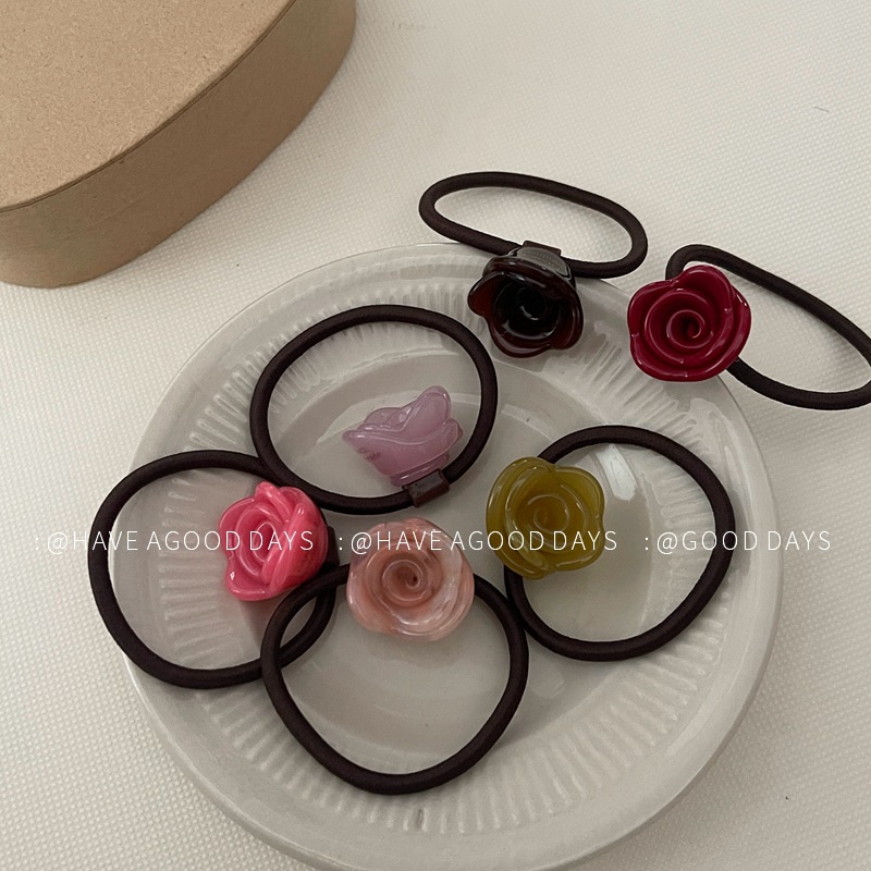个性玫瑰花头绳发饰甜美夏日新款发圈小众设计感气质简约百搭清新