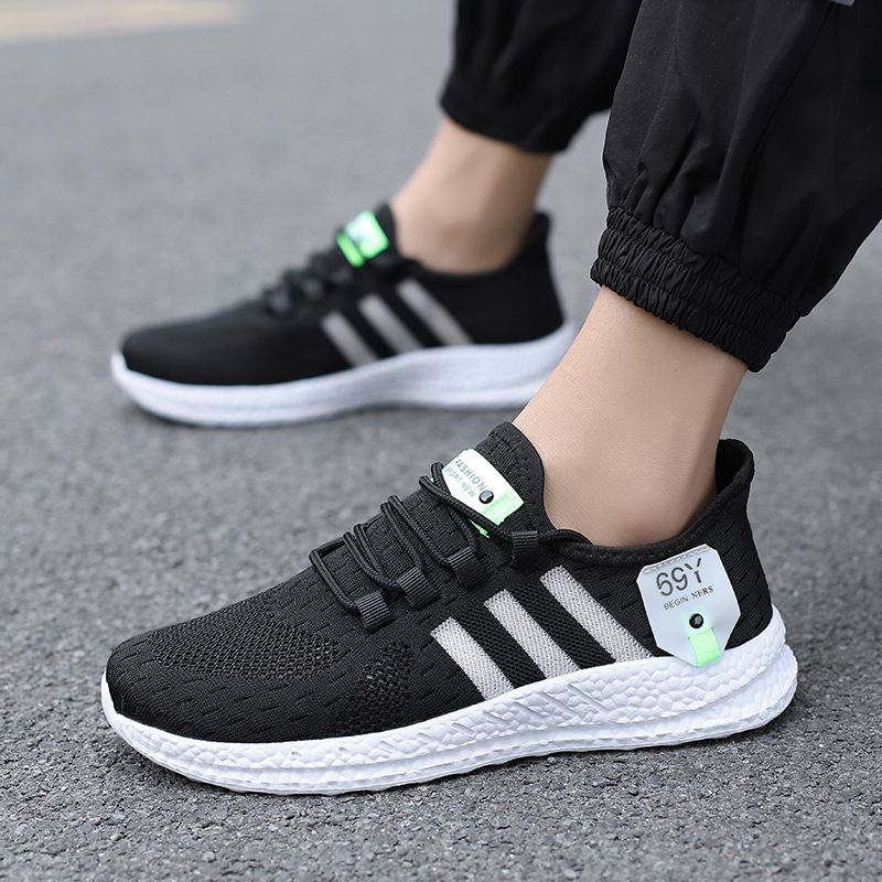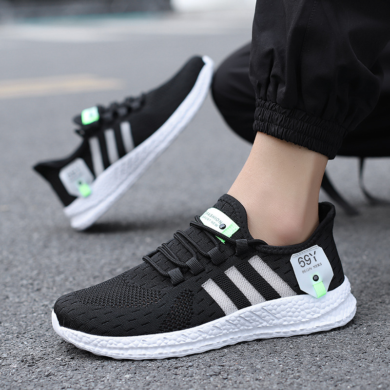 夏秋新款镂空透气飞织跑步鞋男士运动鞋青少年休闲鞋情侣潮鞋
