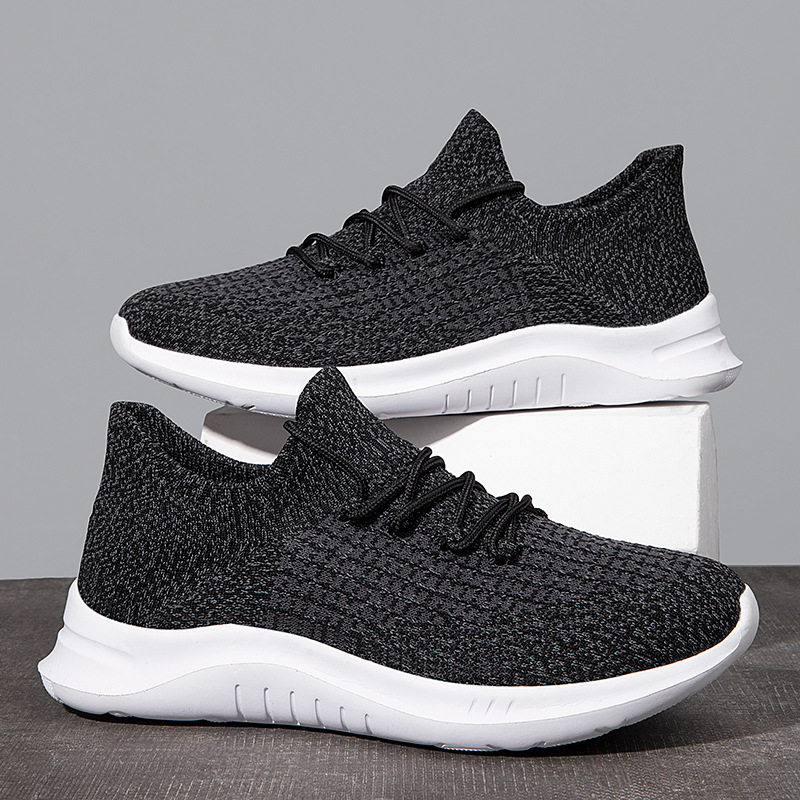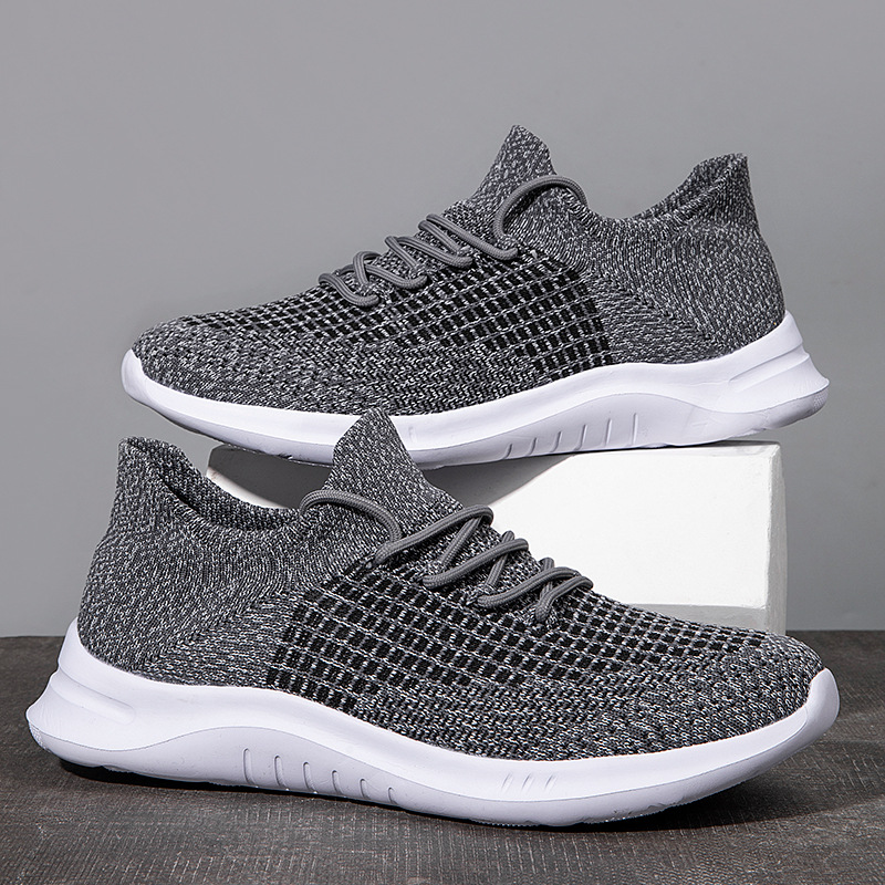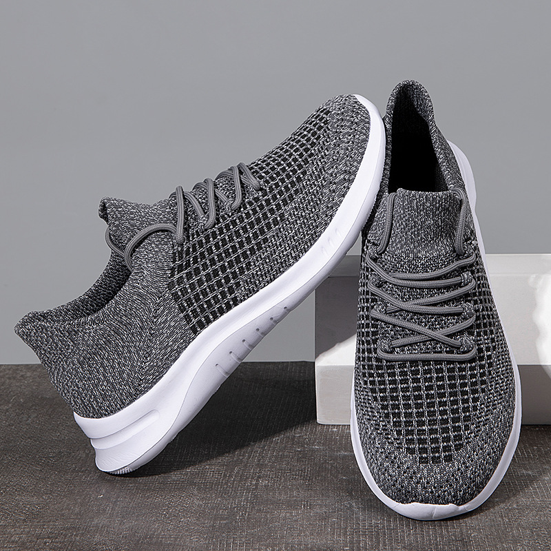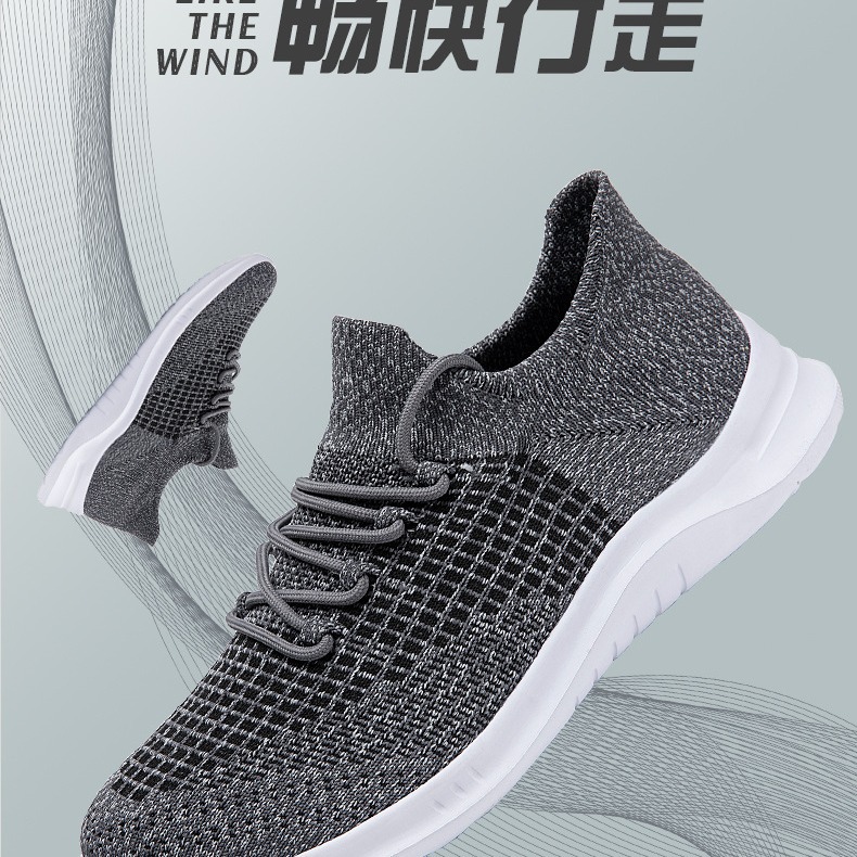 跨境大码新款防水透气运动男鞋单网面鞋男士飞织袜子鞋防臭跑步鞋