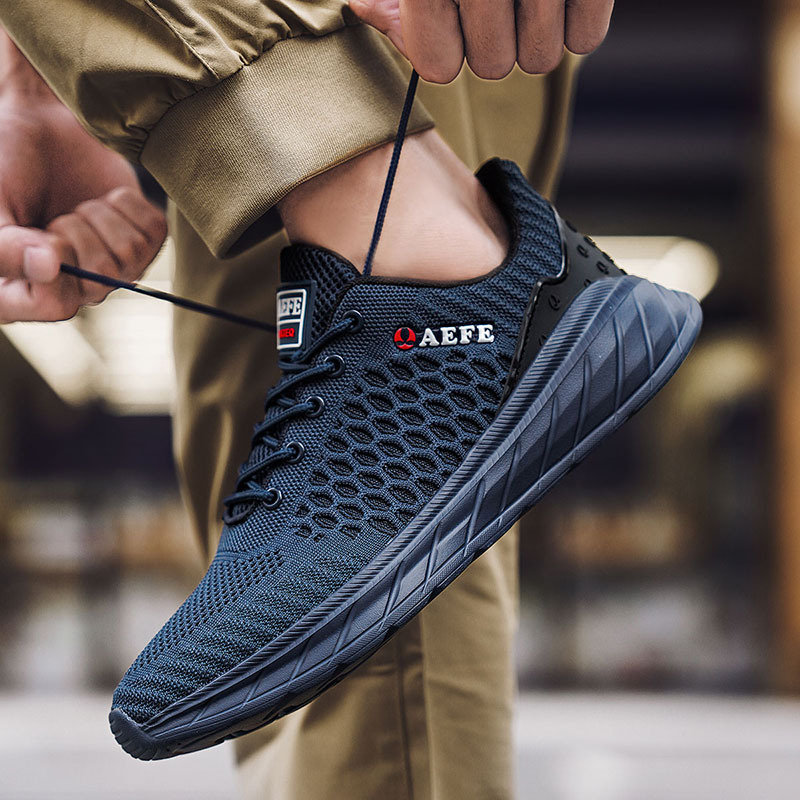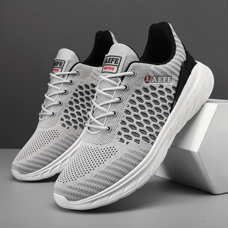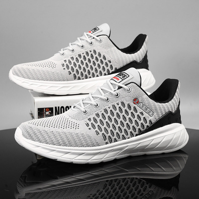 跨境47爆款男鞋飞织透气网面鞋男士运动鞋轻便防滑软底休闲跑步鞋