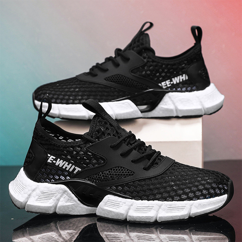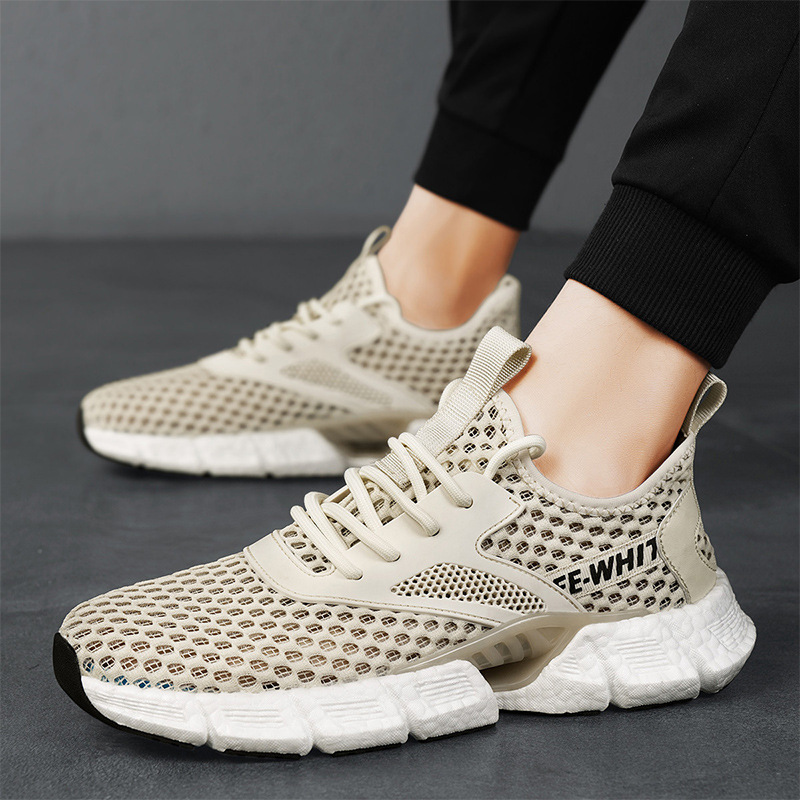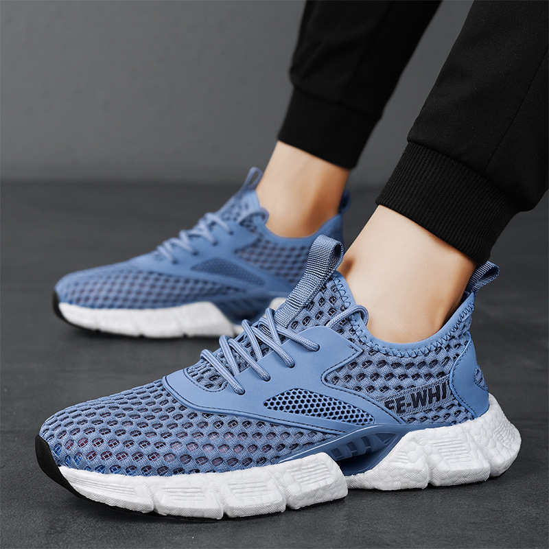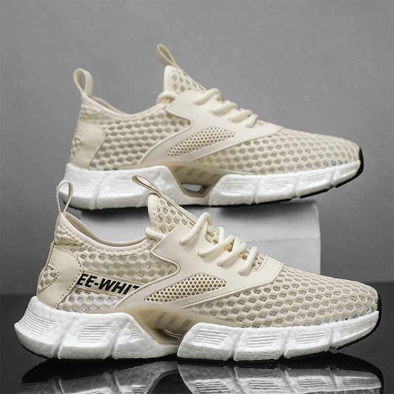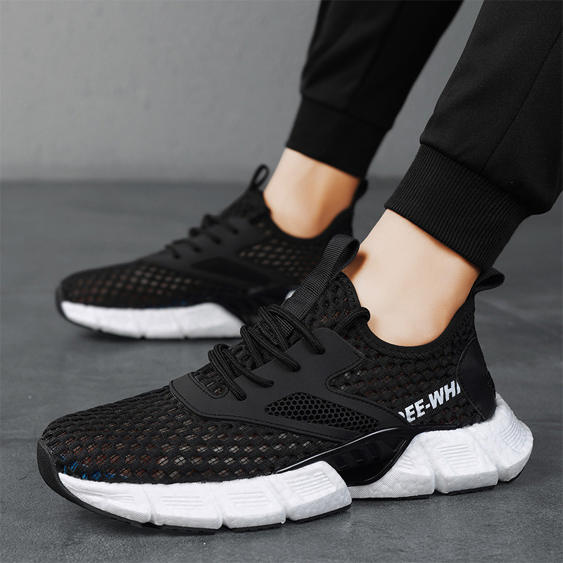 夏季男新款透气单网运动鞋软底跑步鞋青少年真爆米花潮鞋冷粘工艺