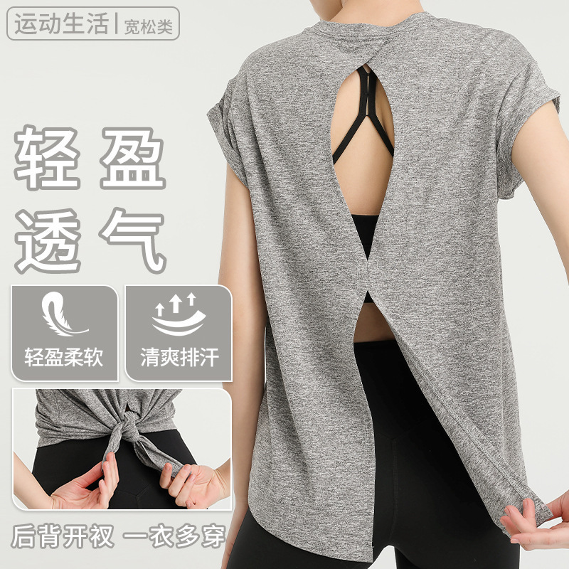 跨境健身短袖T恤速干运动罩衫夏季瑜伽服瑜伽上衣跑步健身服女