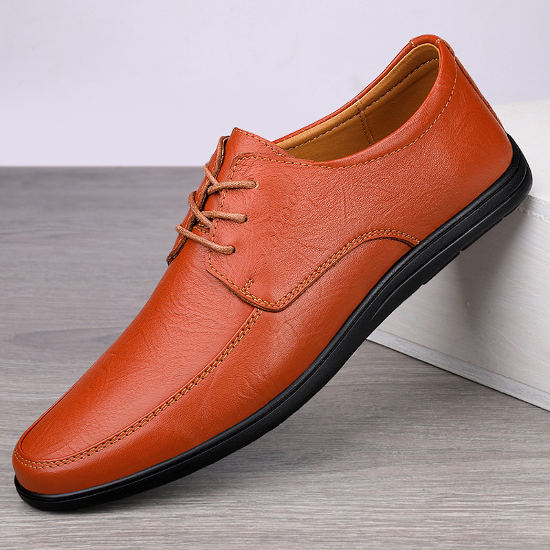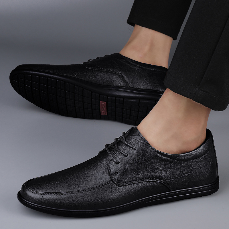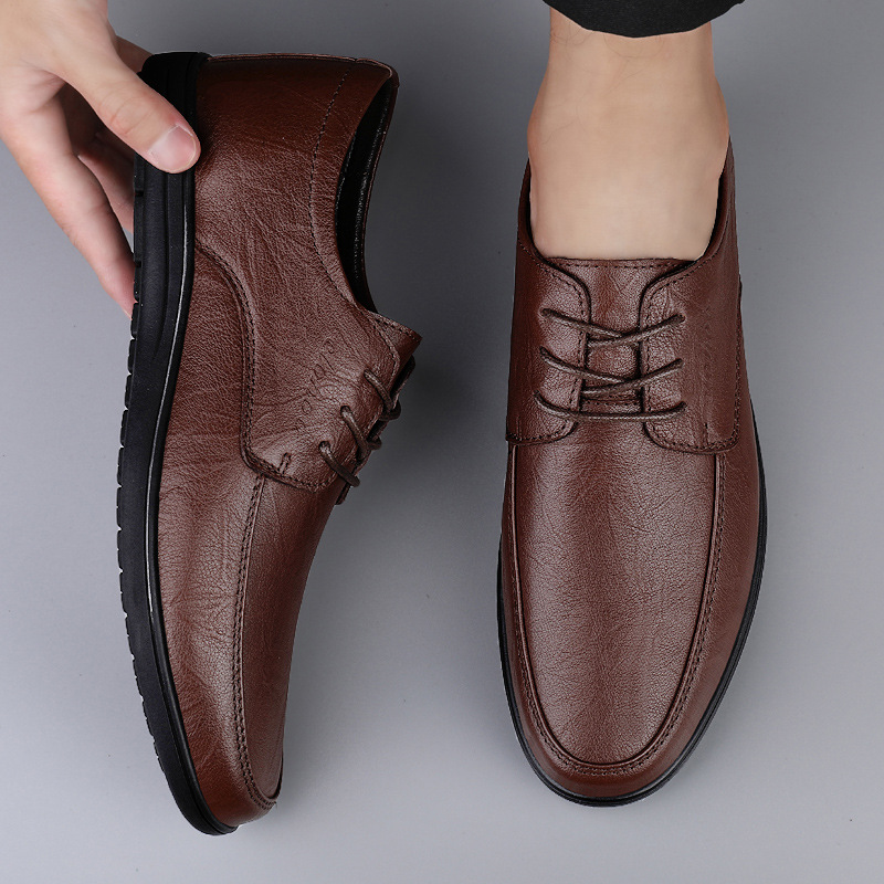 新款休闲皮鞋男士真牛皮男鞋冬季加绒保暖商务皮鞋圆头系带