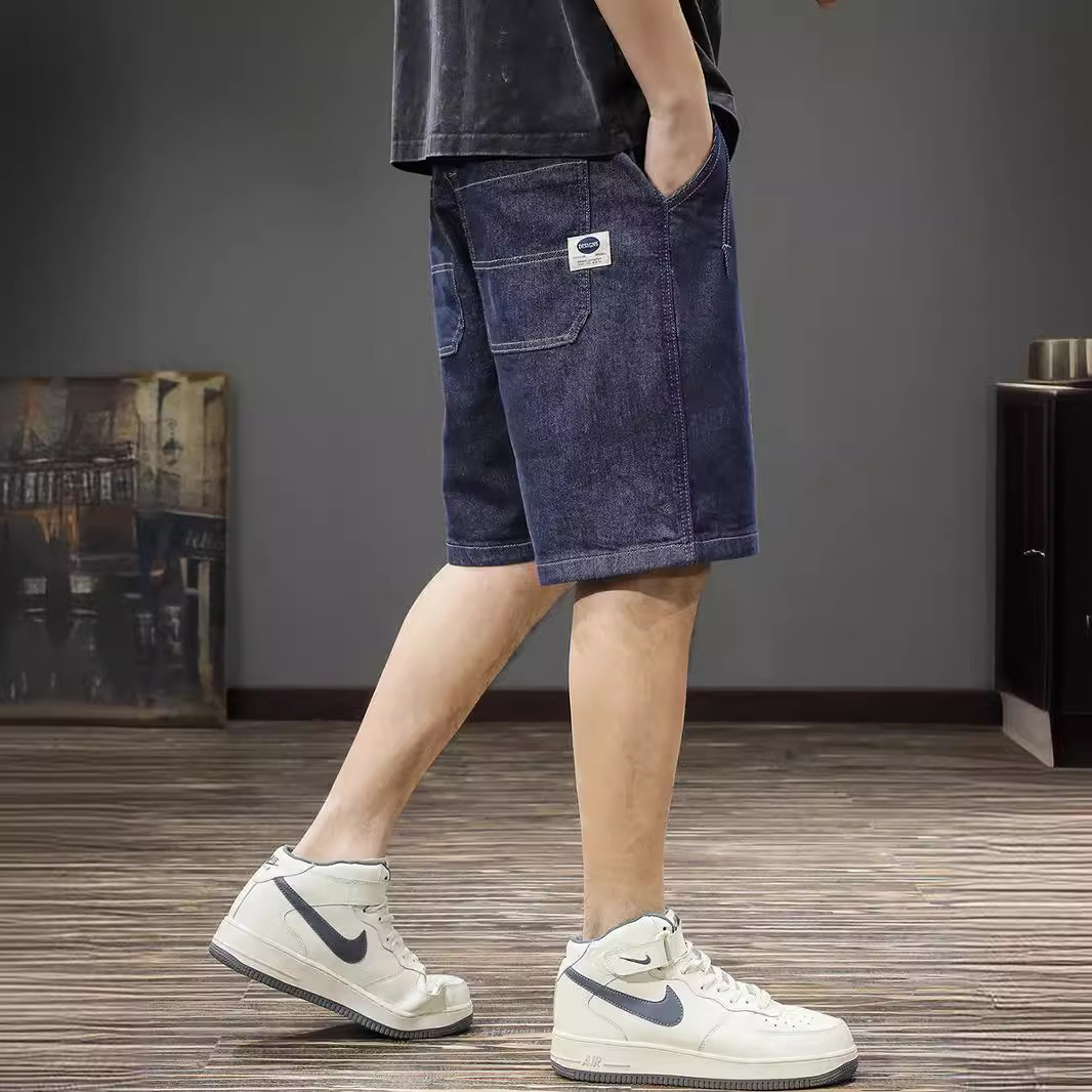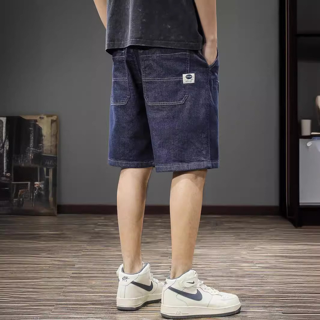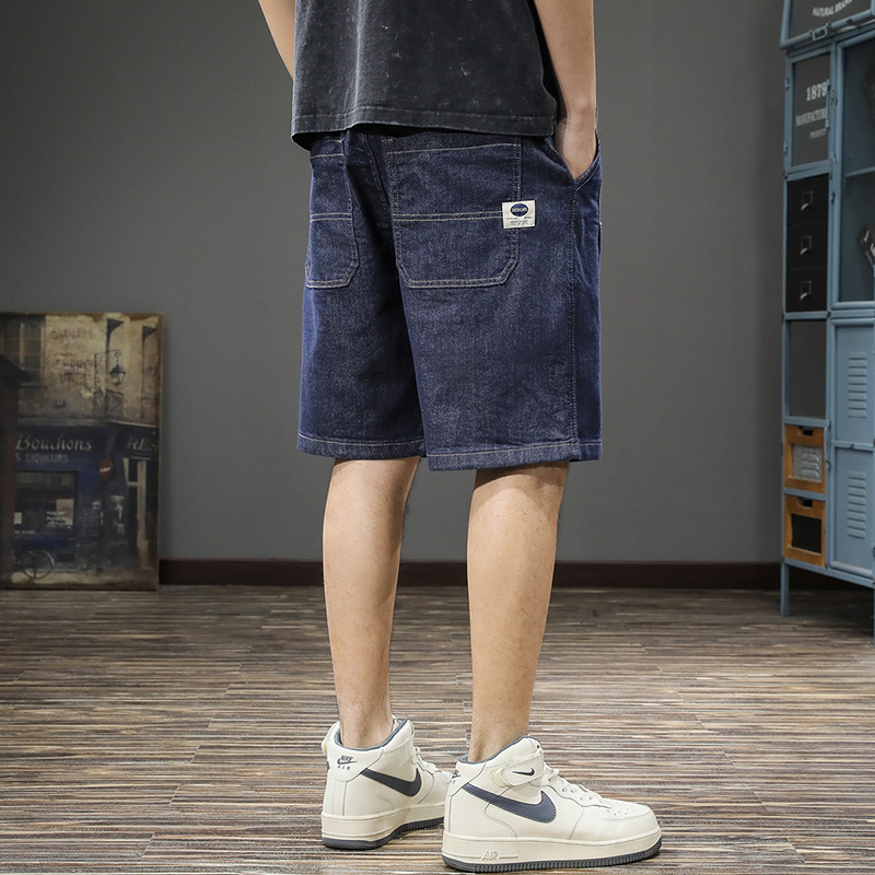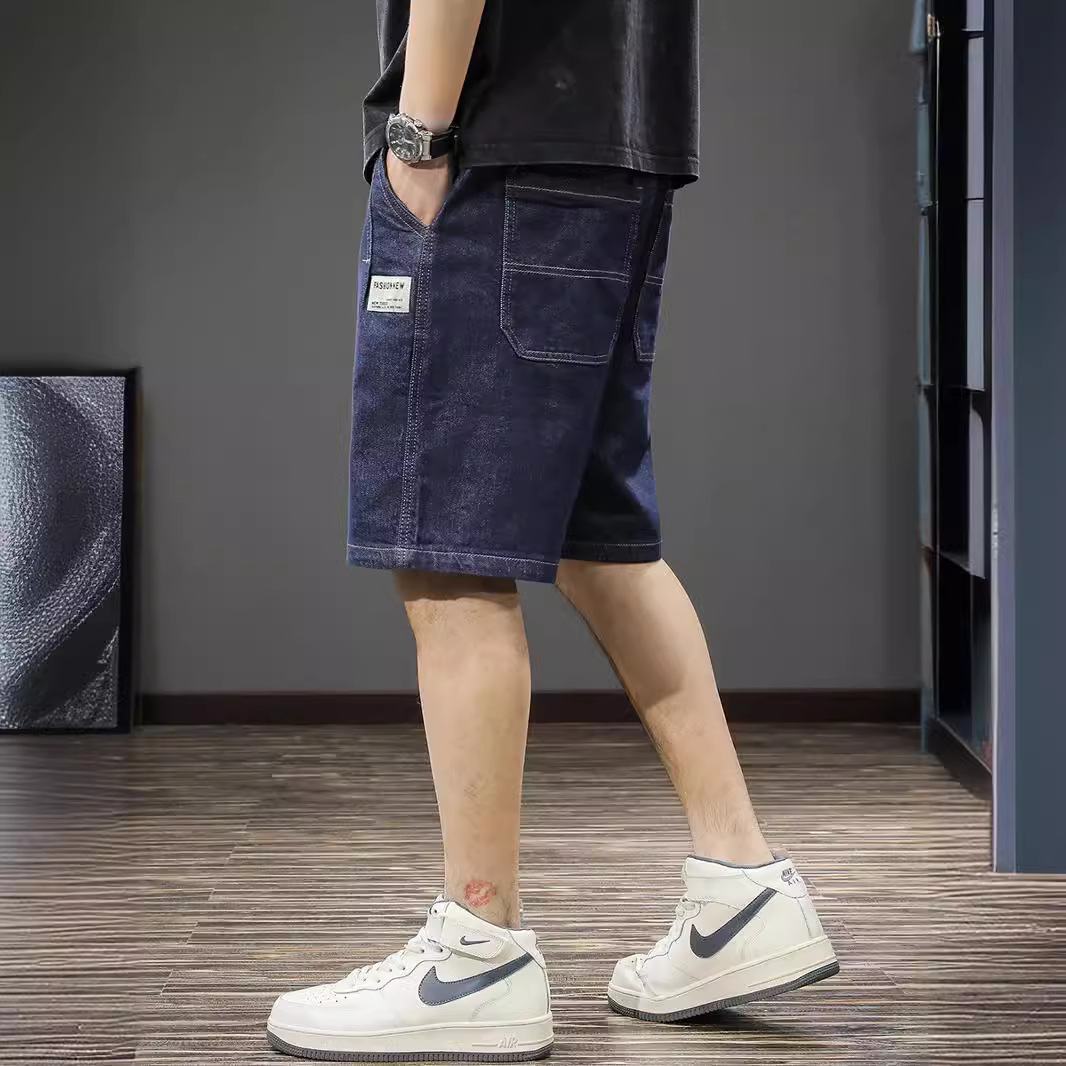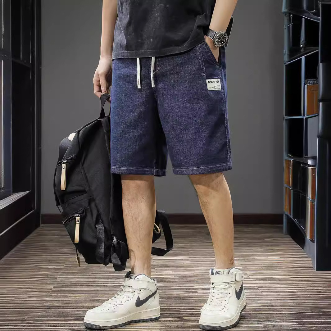 夏季薄款原色工装牛仔短裤男新款五分裤潮牌松紧腰休闲中裤子