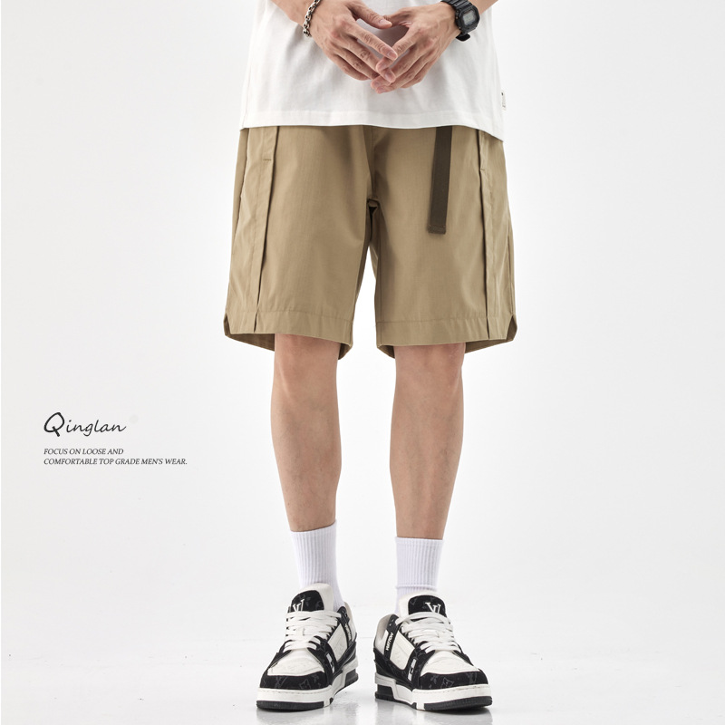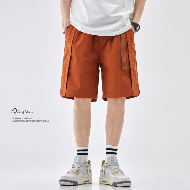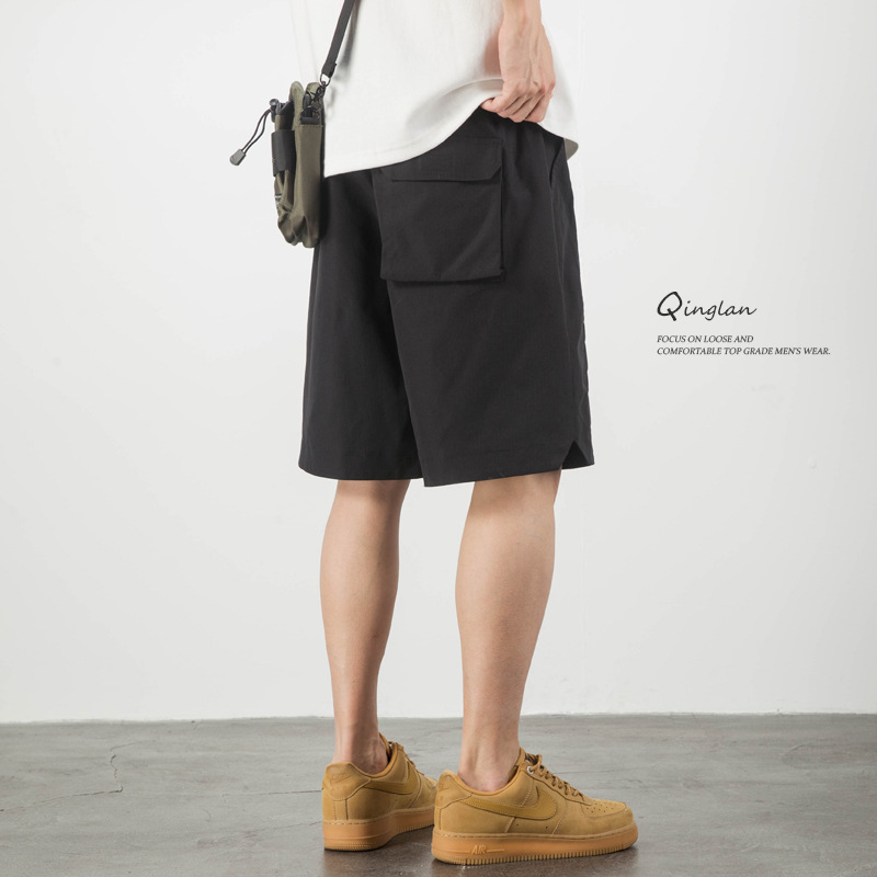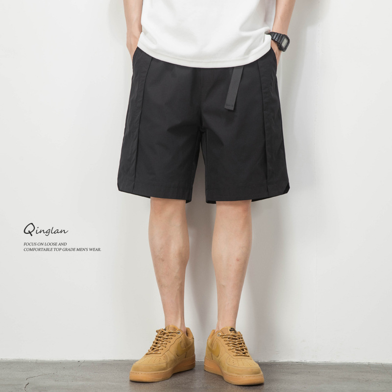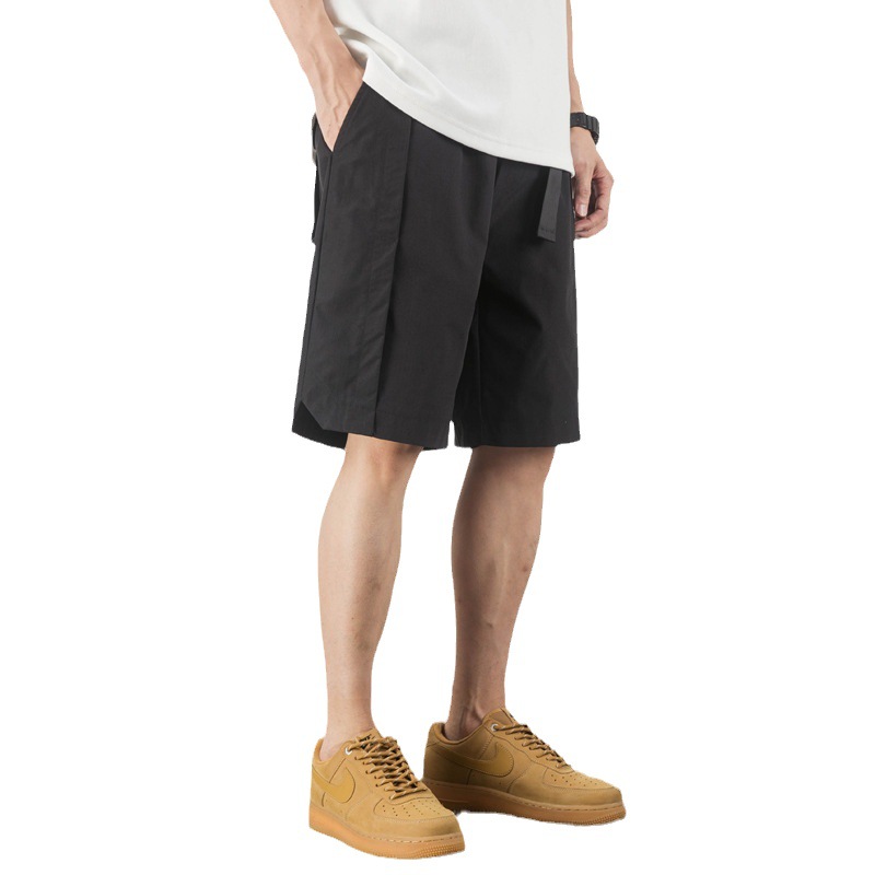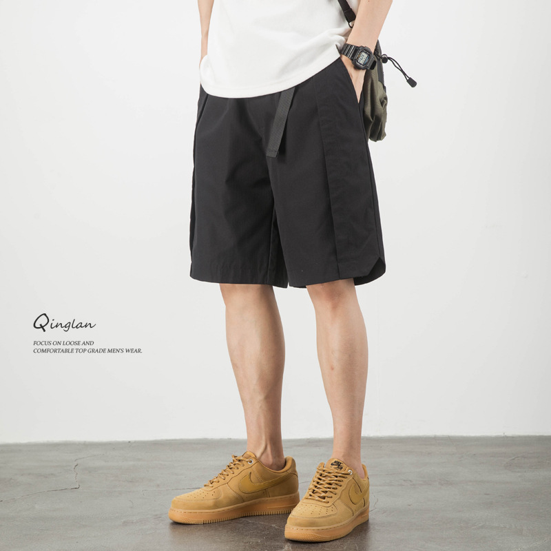 夏季薄款休闲短裤男宽松大码弹力透气速干冰丝五分裤运动黑色中裤