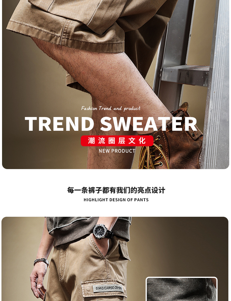 美式重磅纯棉工装短裤男夏季潮流男装休闲裤子男日系复古五分中裤