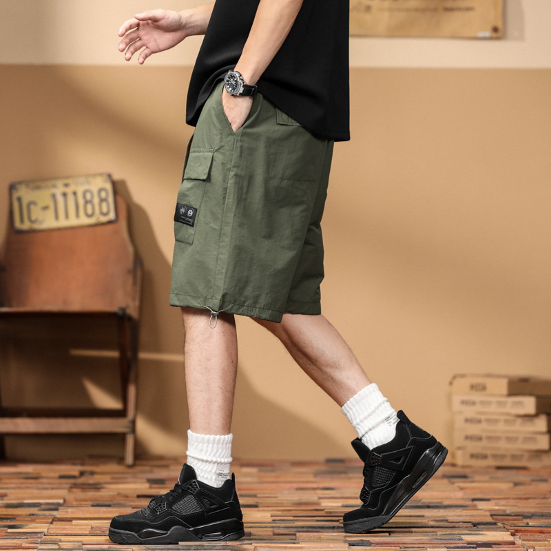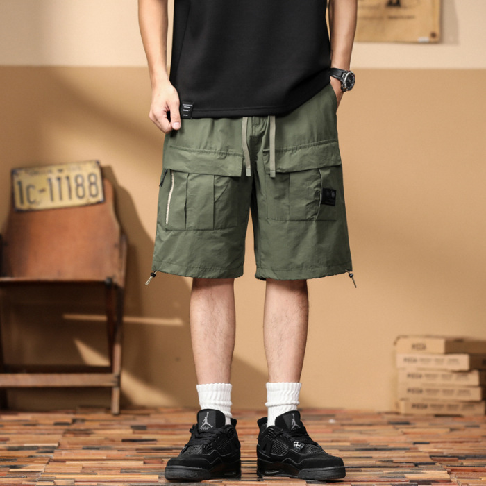 夏季冰丝速干工装短裤男生夏季新款潮流宽松舒适抽绳休闲中裤