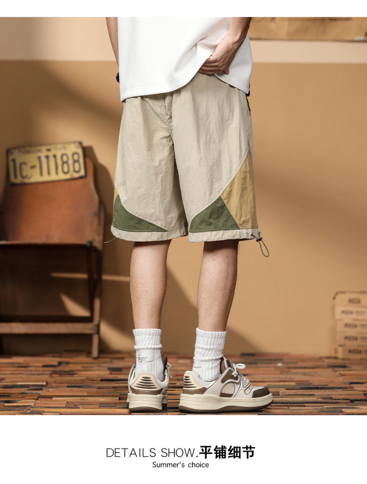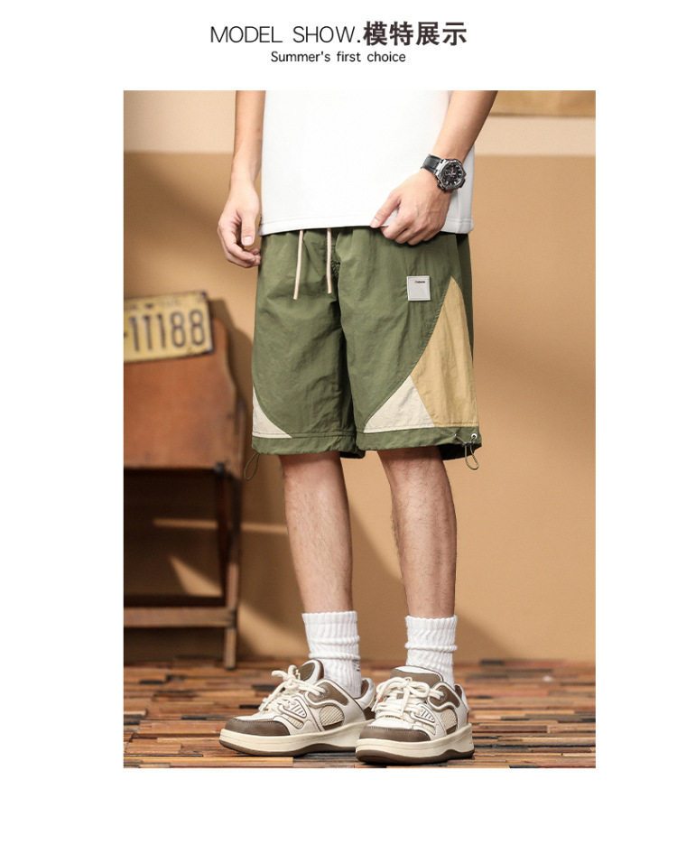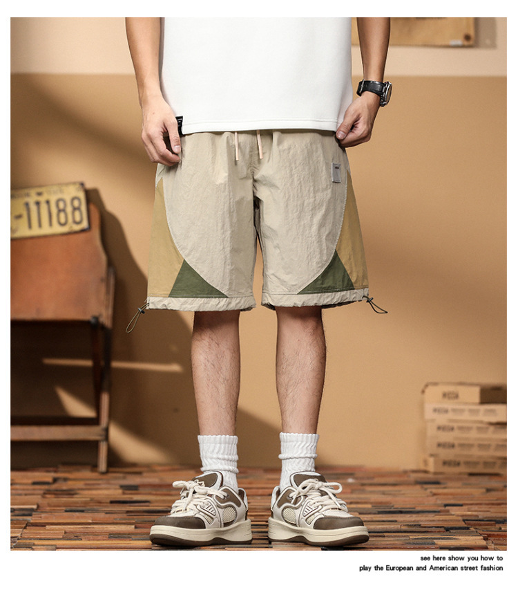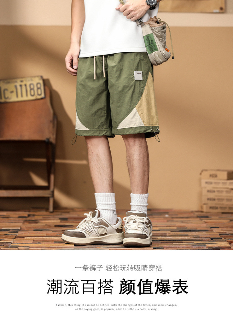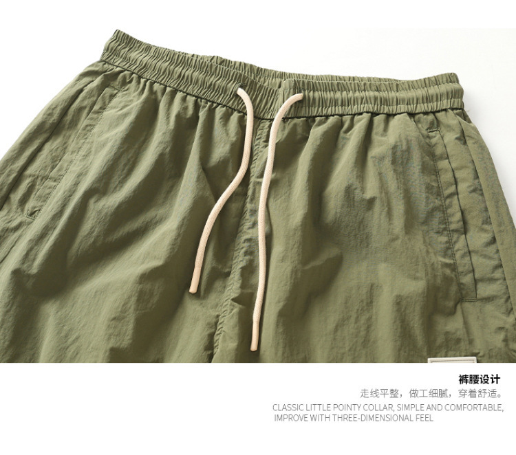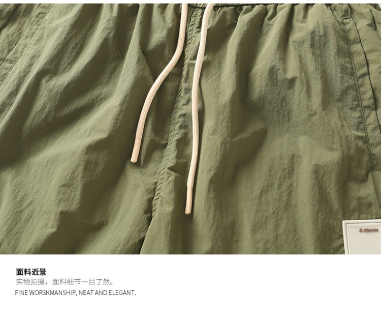 速干冰丝工装短裤男士夏季薄款宽松休闲松紧腰抽绳慵懒日常五分裤