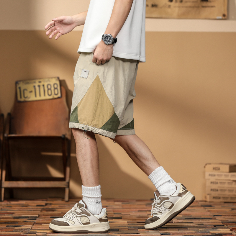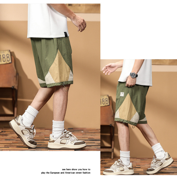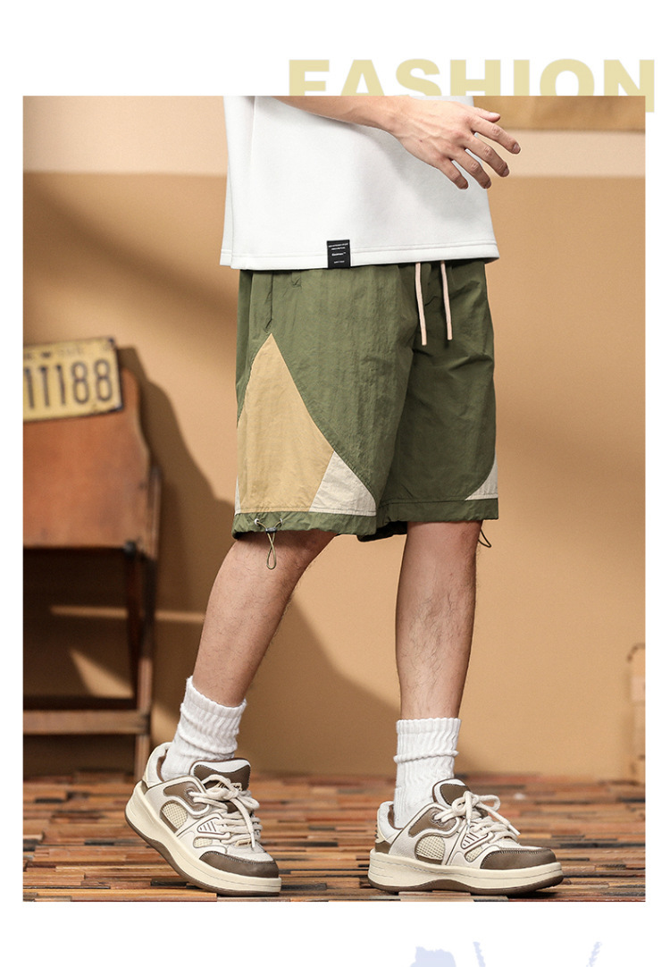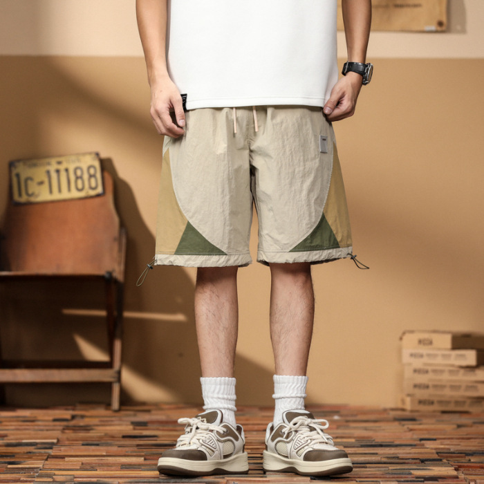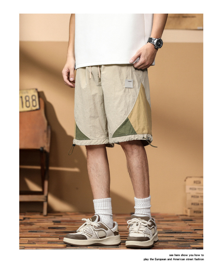 速干冰丝工装短裤男士夏季薄款宽松休闲松紧腰抽绳慵懒日常五分裤