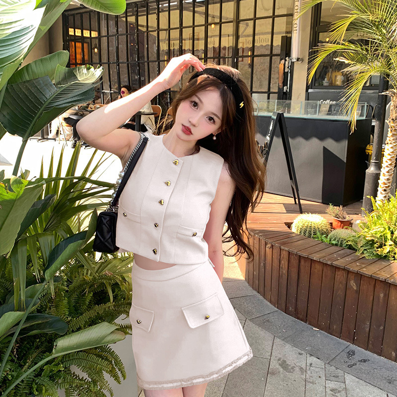 实拍夏季新款小个子洋气时髦套装气质时尚度假小香风套装裙两件套