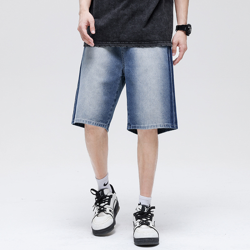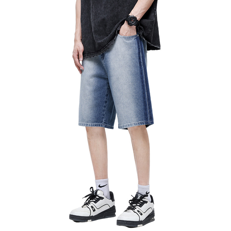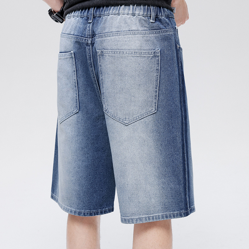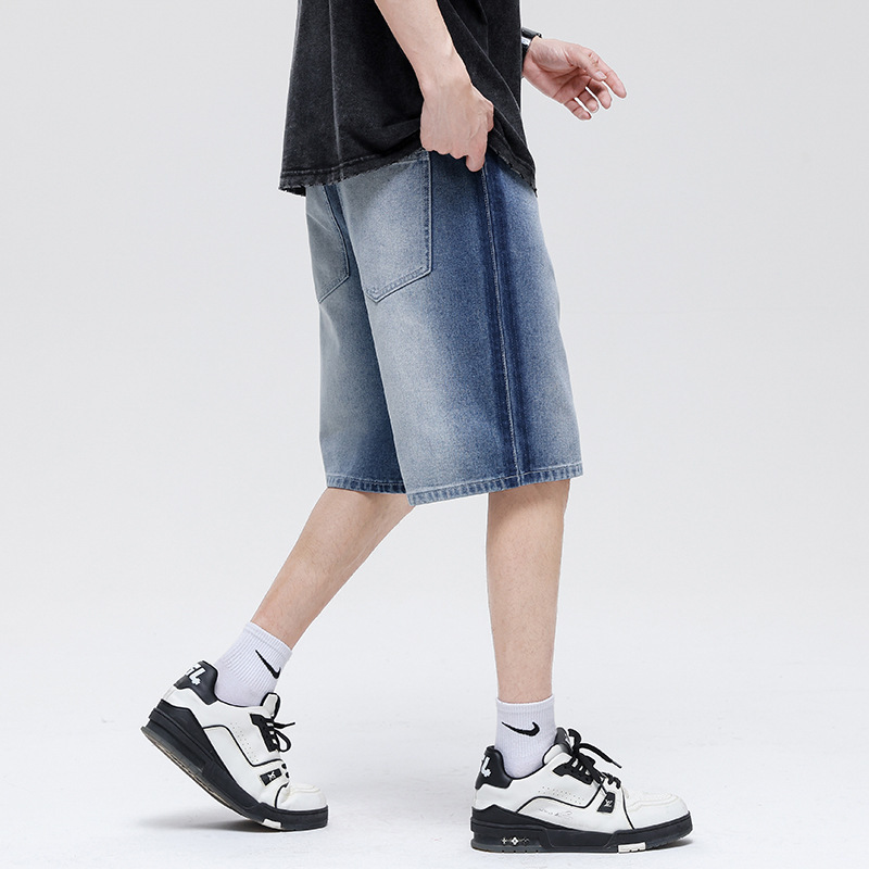 夏天破洞薄款中裤潮牌五分裤男士牛仔短裤直筒宽松韩版潮流