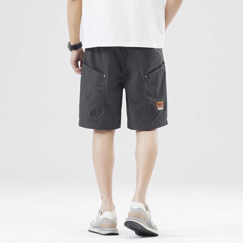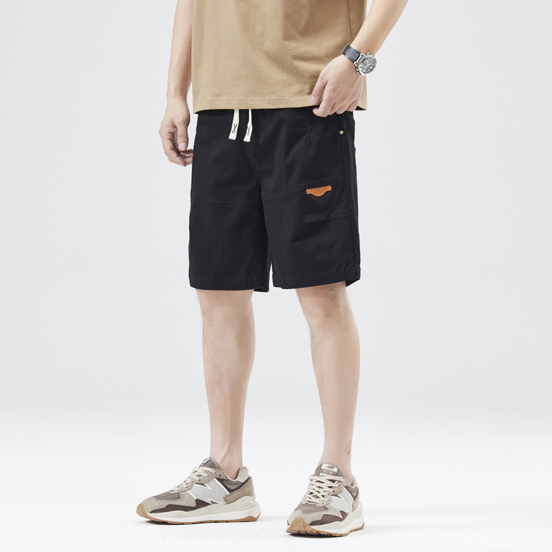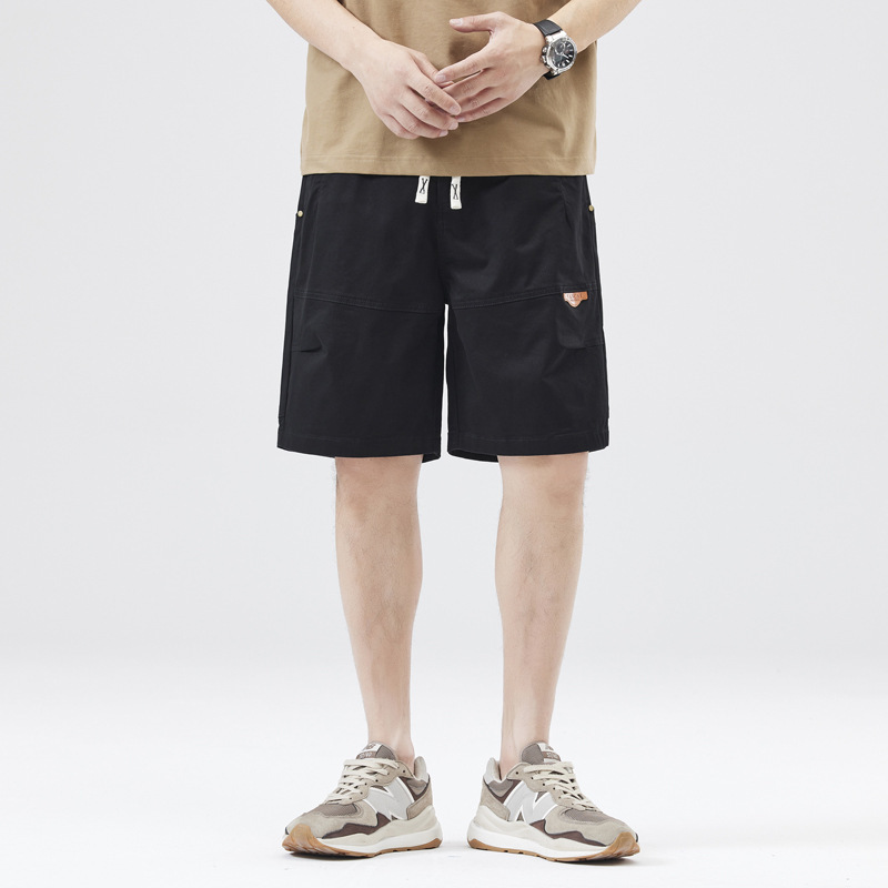 夏季新款潮牌男美式休闲百搭重磅洗水户外复古风五分裤男黑色