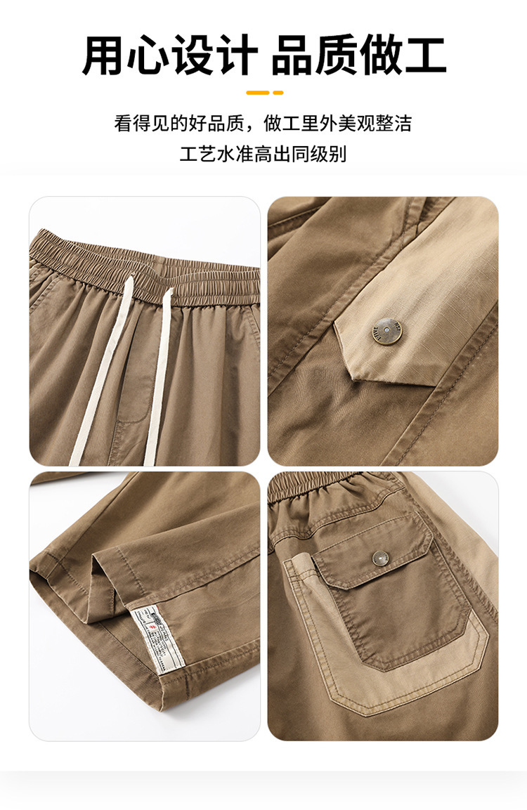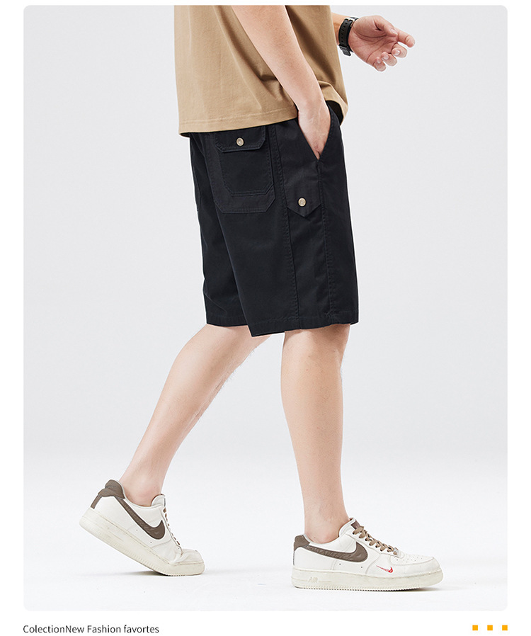 青年夏季新款潮流男美式休闲重磅洗水户外复古风五分裤男黑色