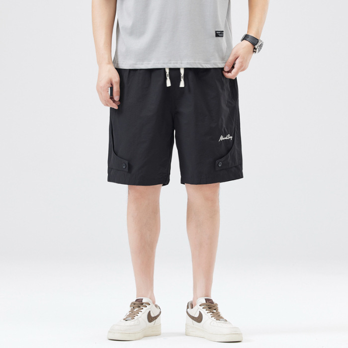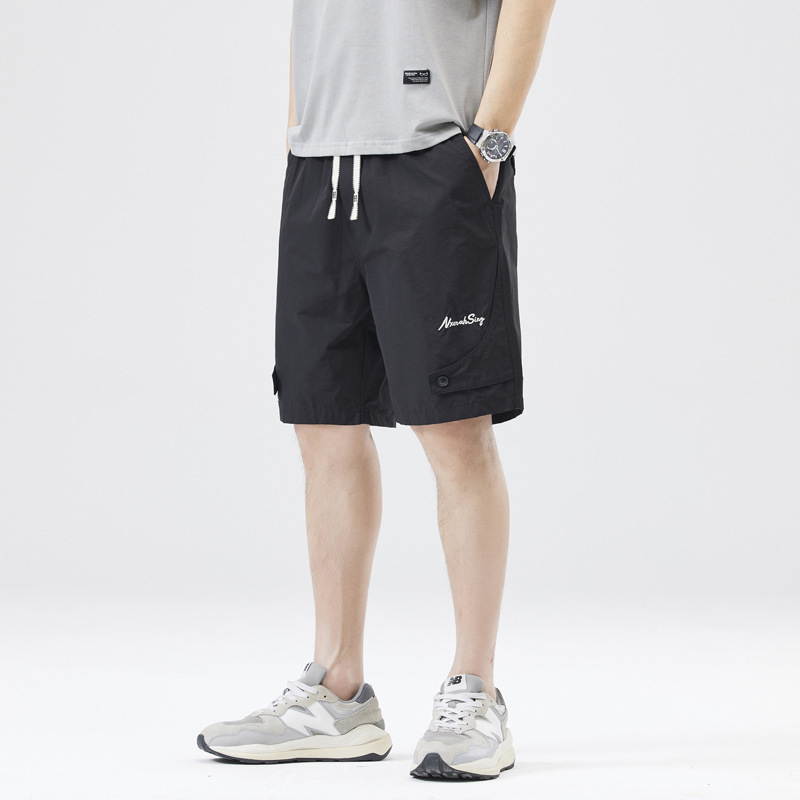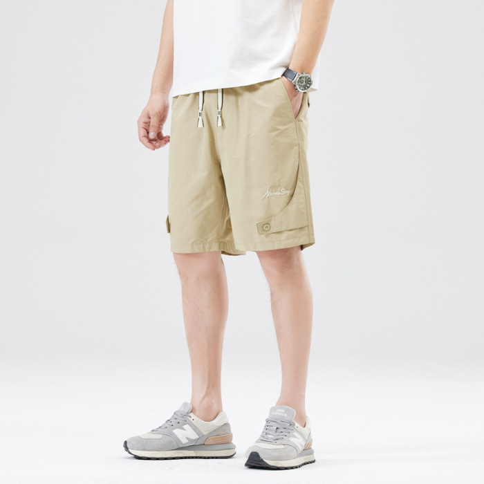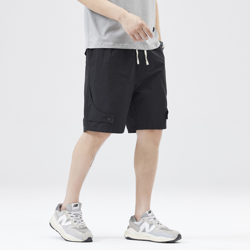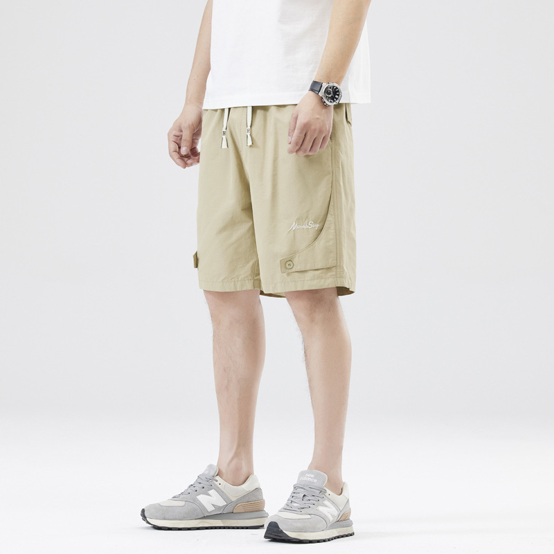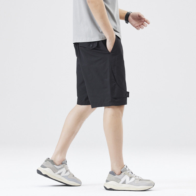 夏季新款男美式休闲重磅洗水户外复古风五分裤男卡其色黑色棉