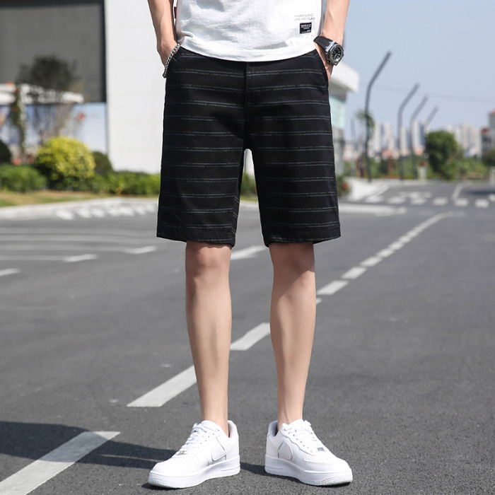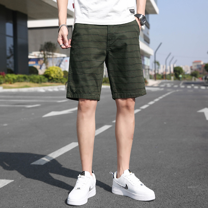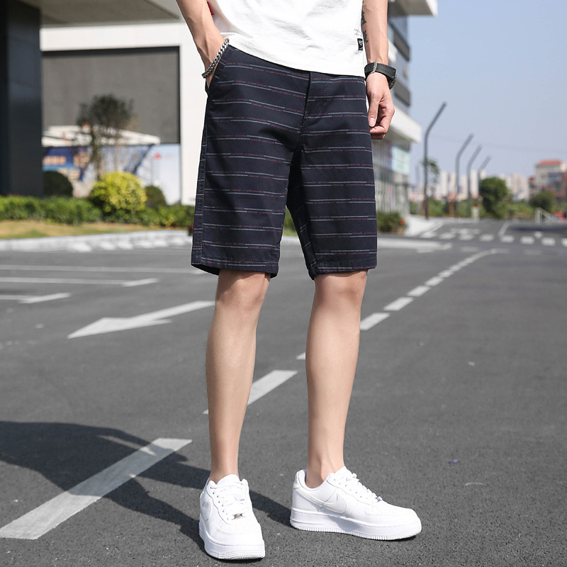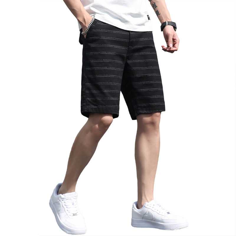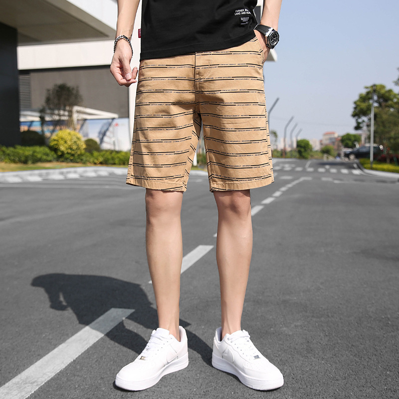 美式潮牌工装短裤男夏季中裤宽松直筒休闲百搭条纹印花棉款五分裤