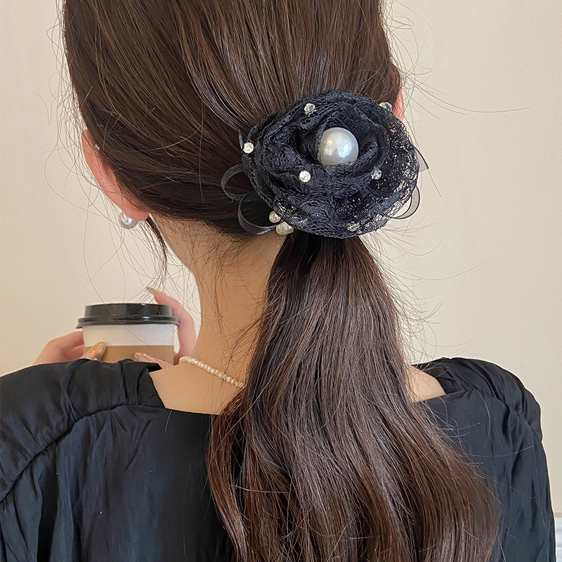温柔气质千金款蕾丝蝴蝶结发圈发绳韩版时尚白色布艺肠圈弹力皮筋
