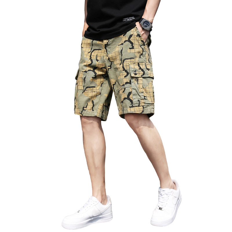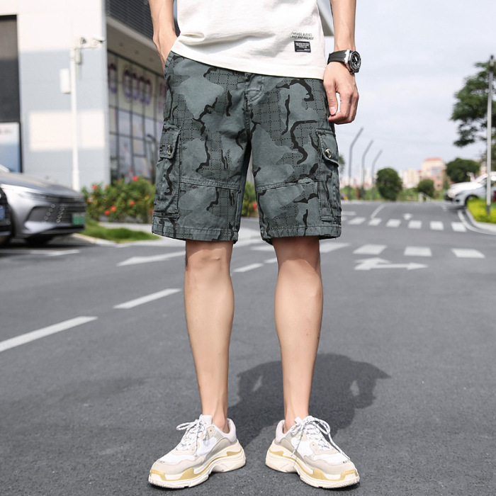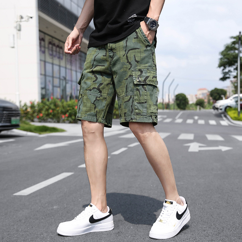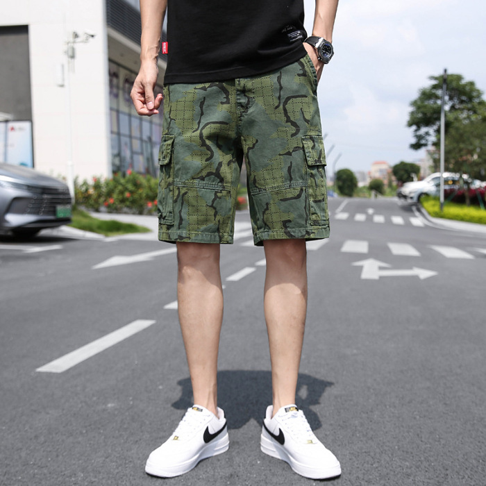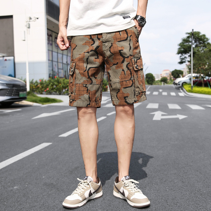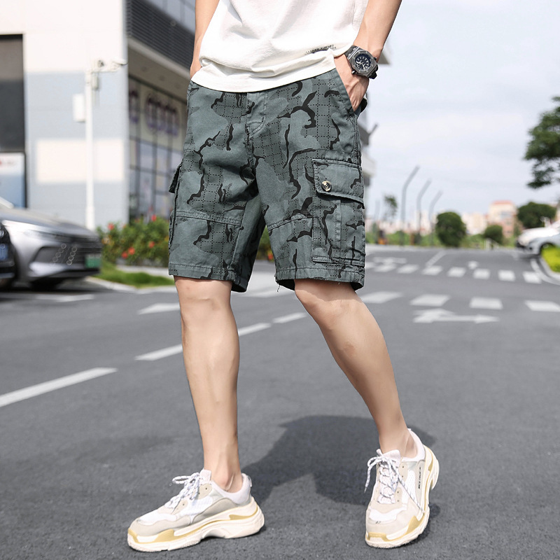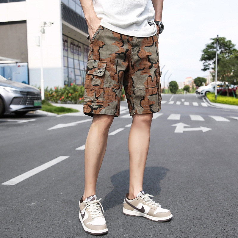夏季新款多口袋中裤美式潮牌工装短裤男宽松直筒休闲百搭印花五分