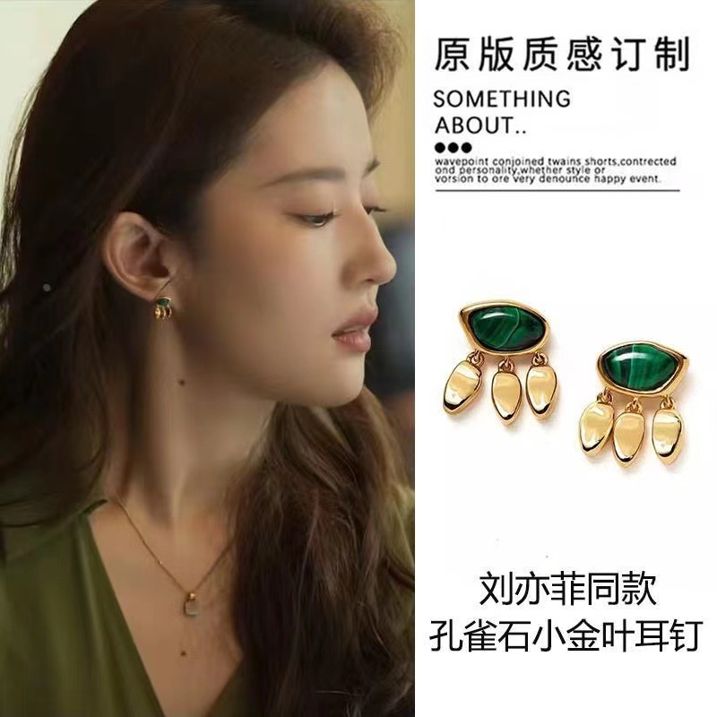 圆形孔雀石水滴流苏耳钉潮流耳环网红高级感耳饰女