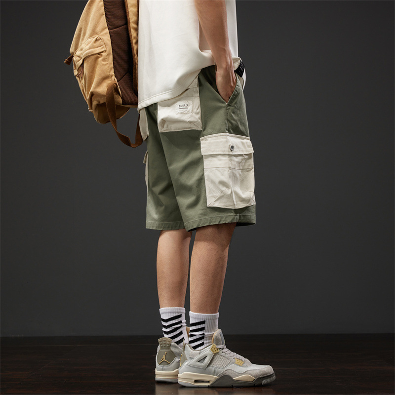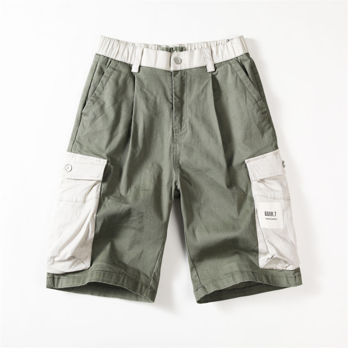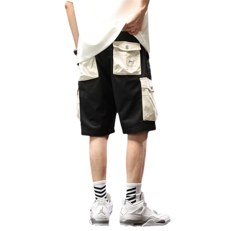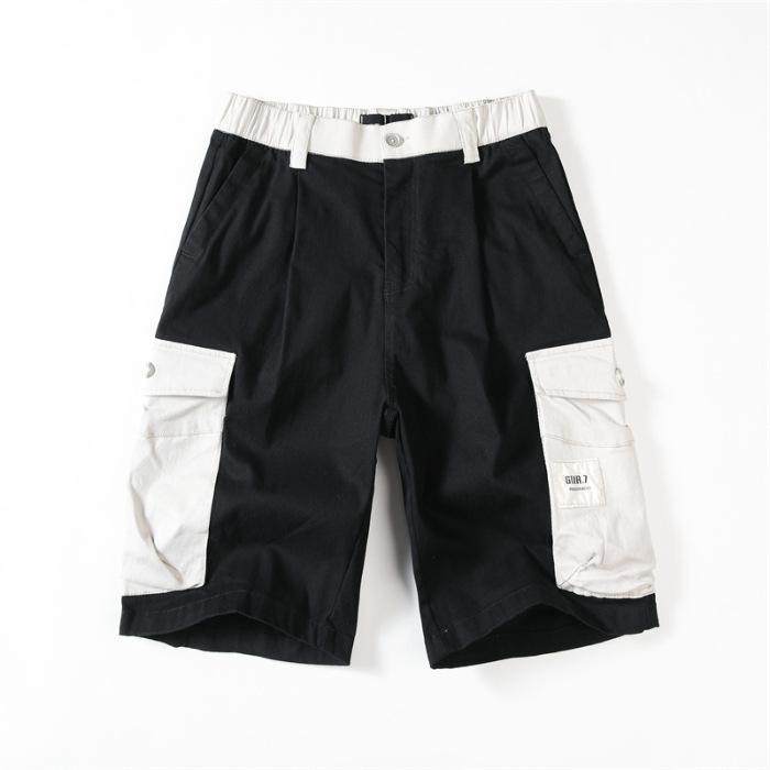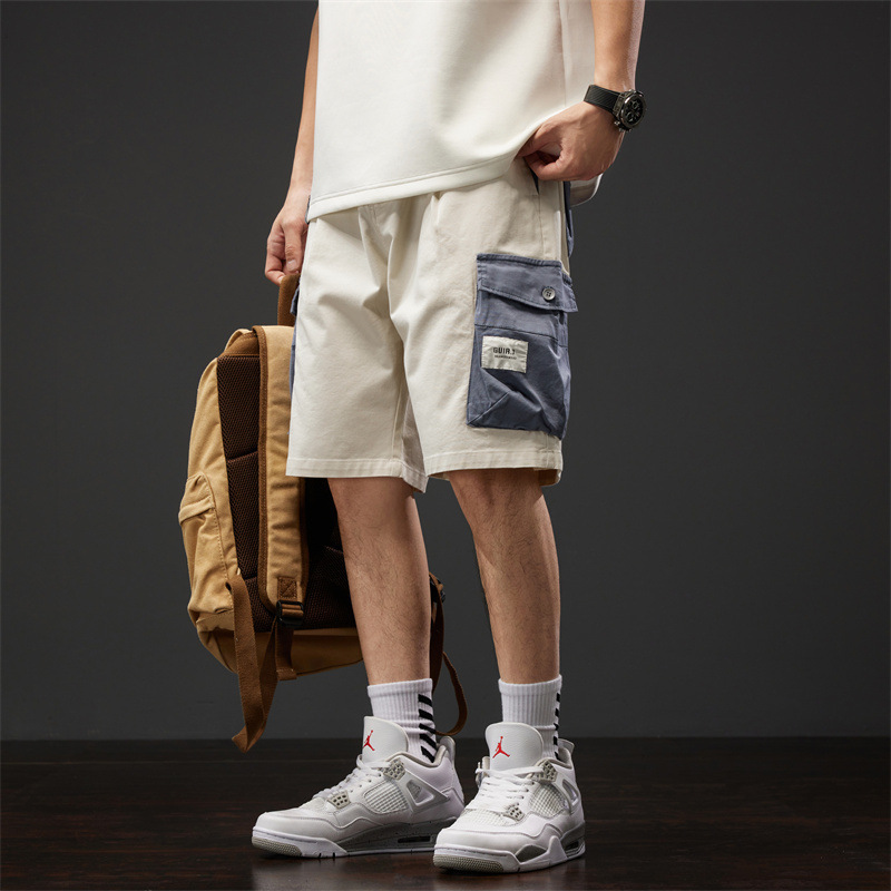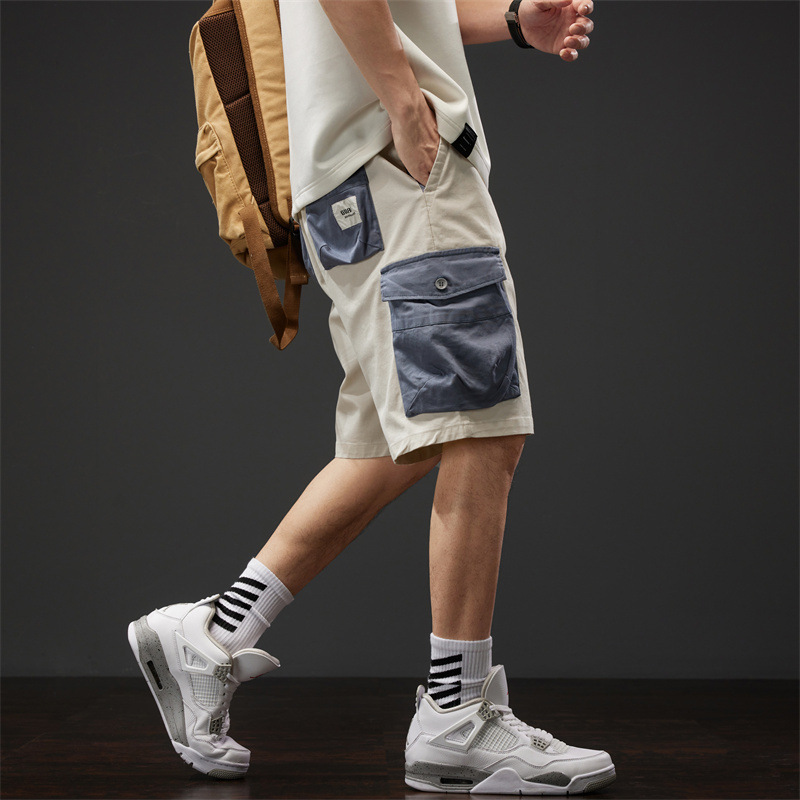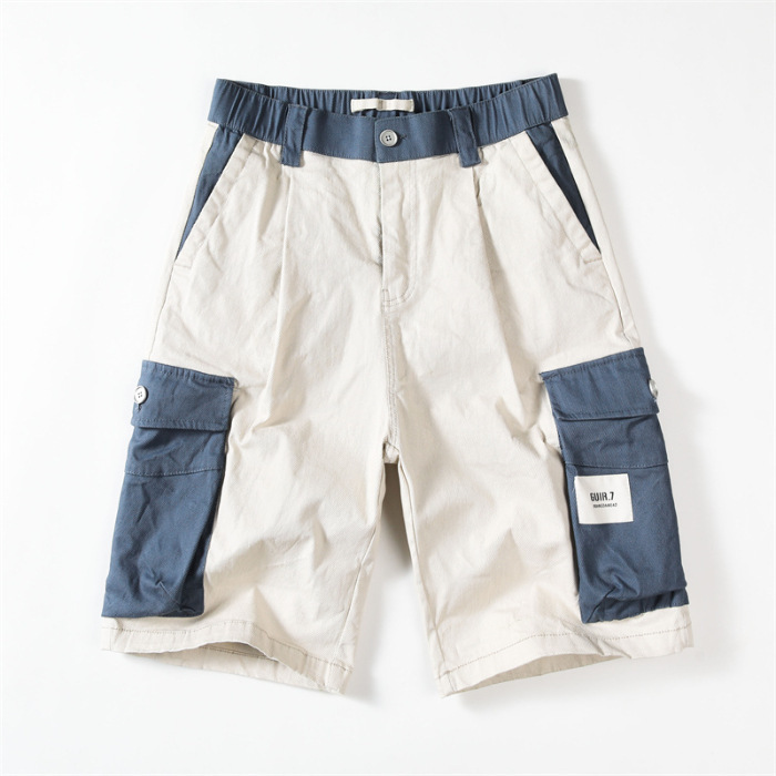 夏季工装撞色宽松短裤修型直筒休闲多袋裤男士哈伦运动裤子蓝色棉