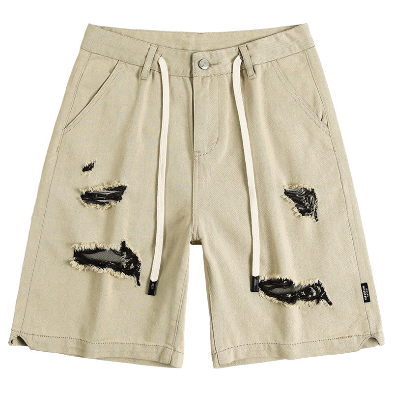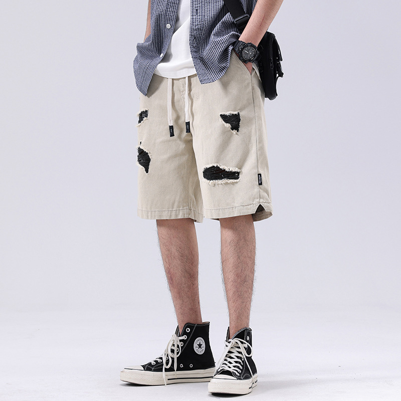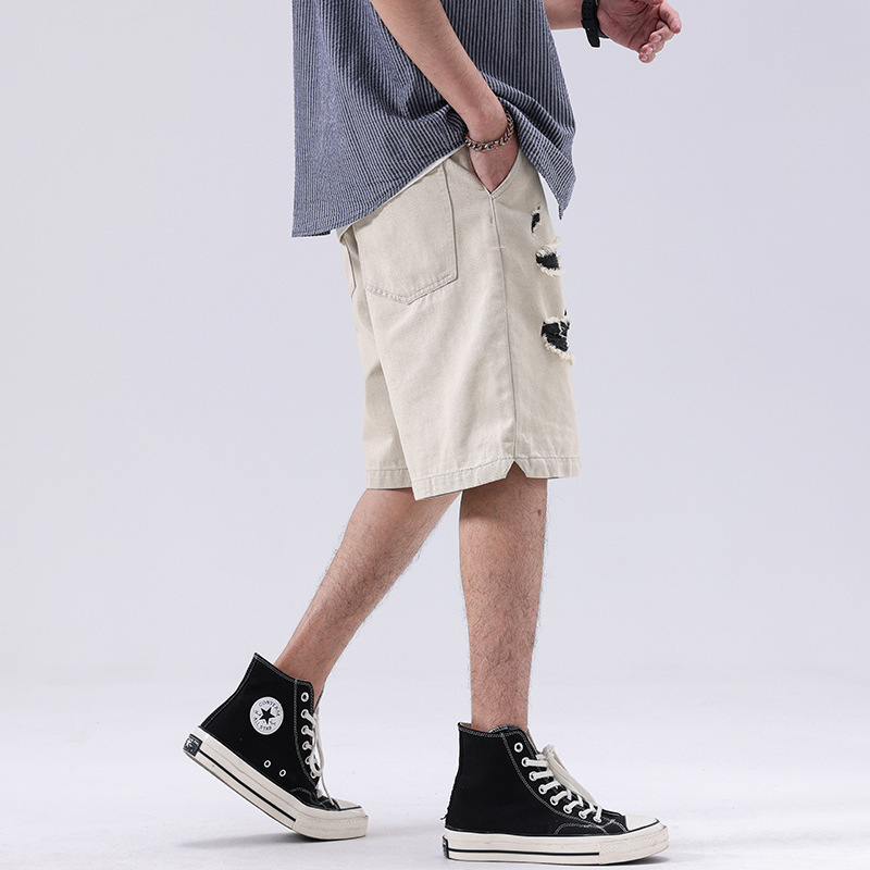 破洞水洗牛仔短裤男夏季薄款宽松复古中裤美式高街潮牌潮流五分裤