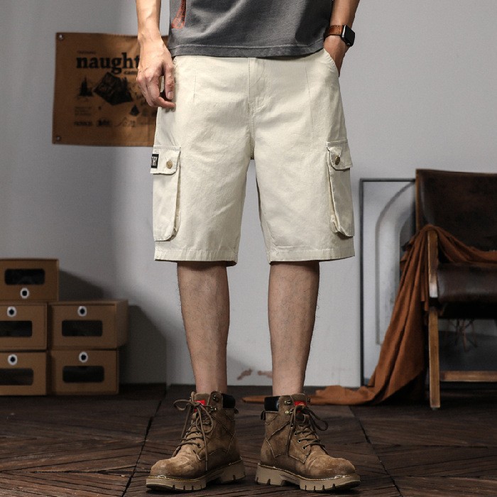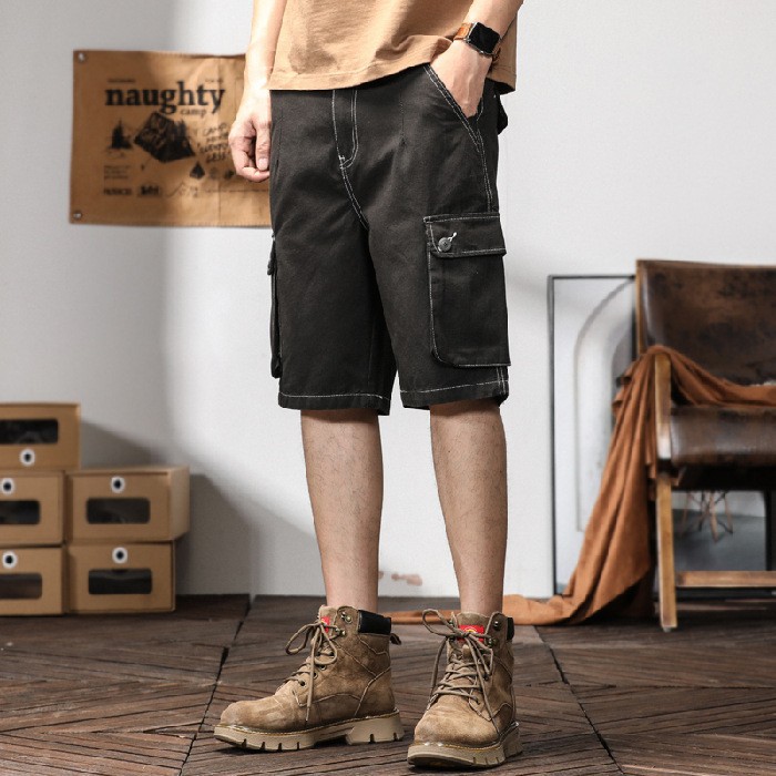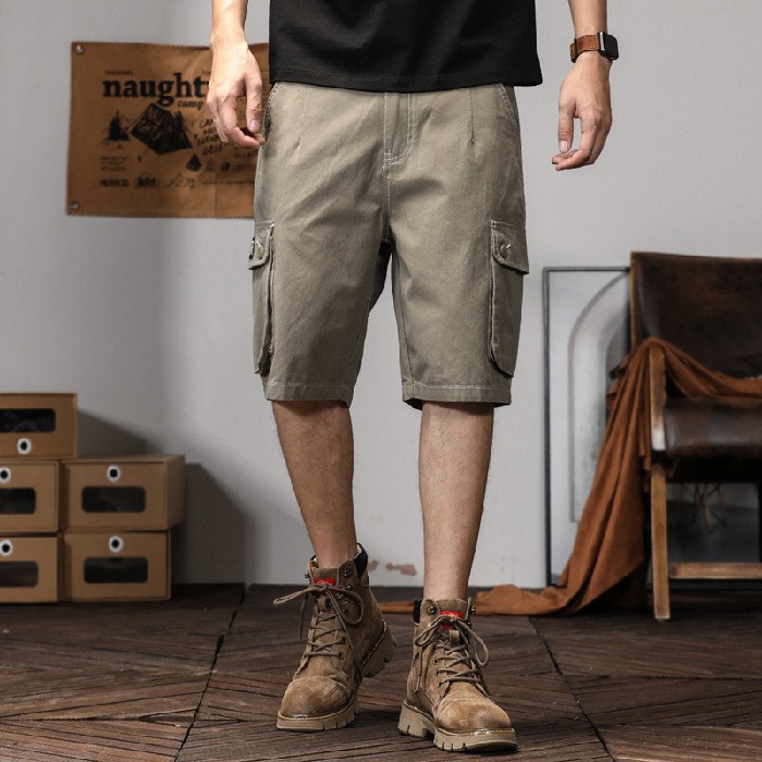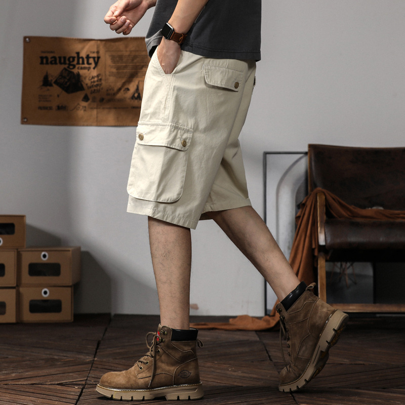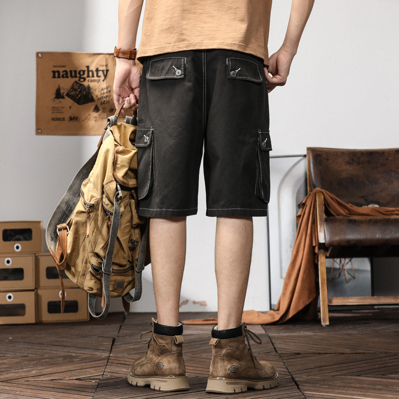 新款夏季薄款工装休闲短裤男宽松大码多口袋中裤外穿五分裤