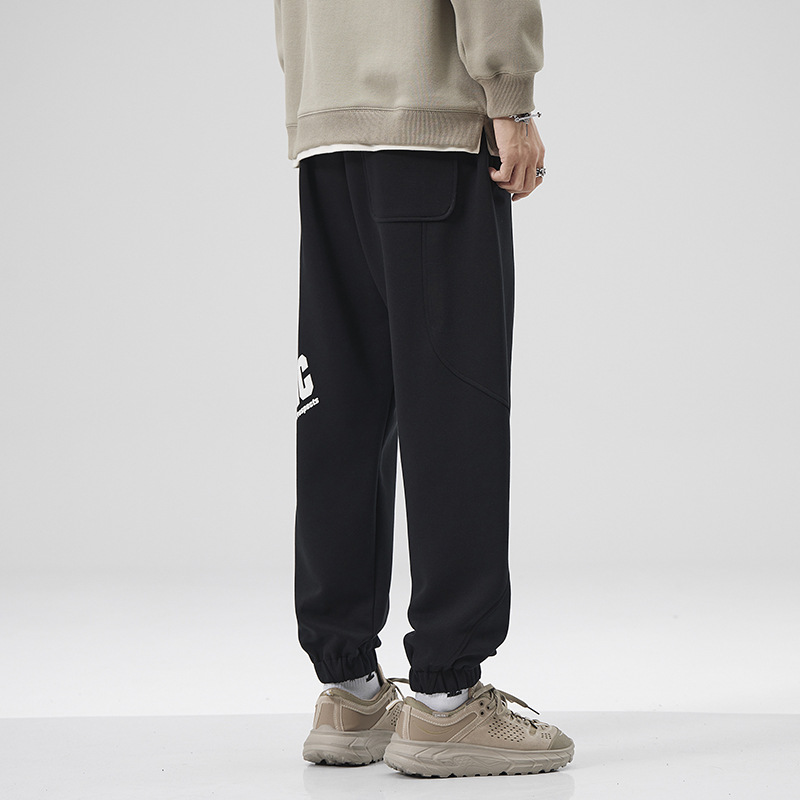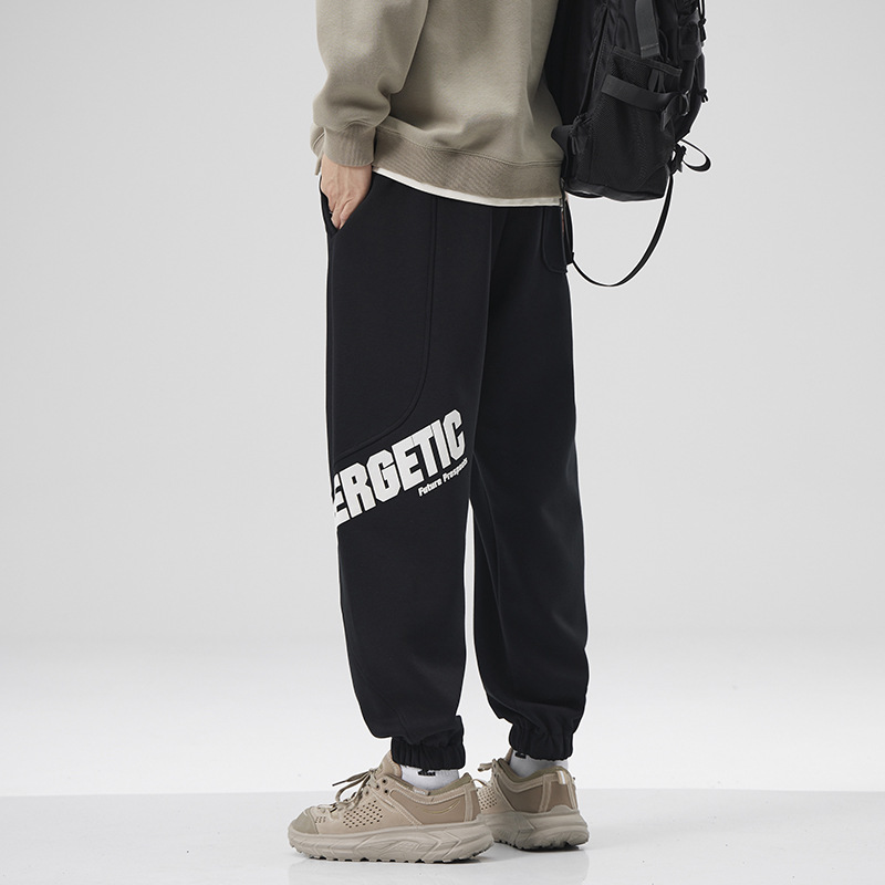 秋季新款印花字母灰色休闲裤男宽松大码卫裤重磅系带束脚运动裤潮