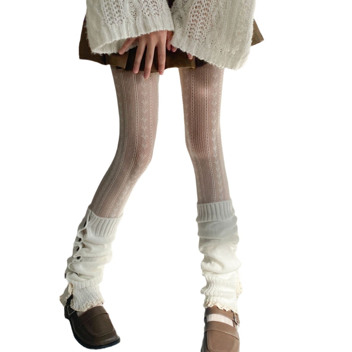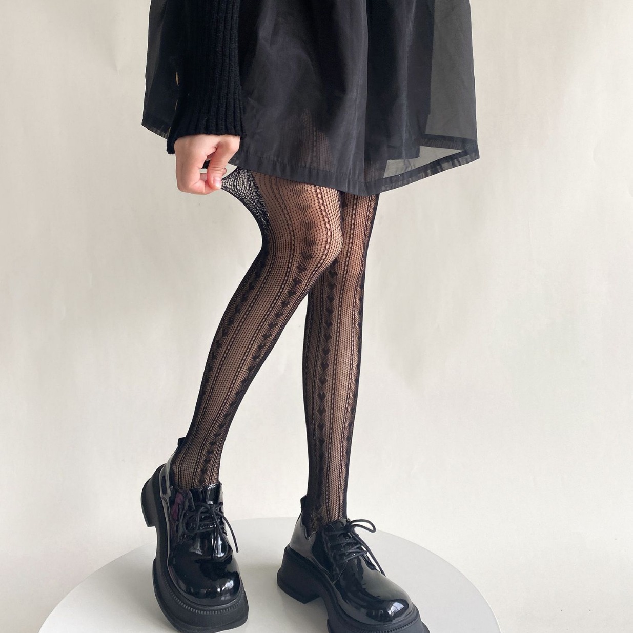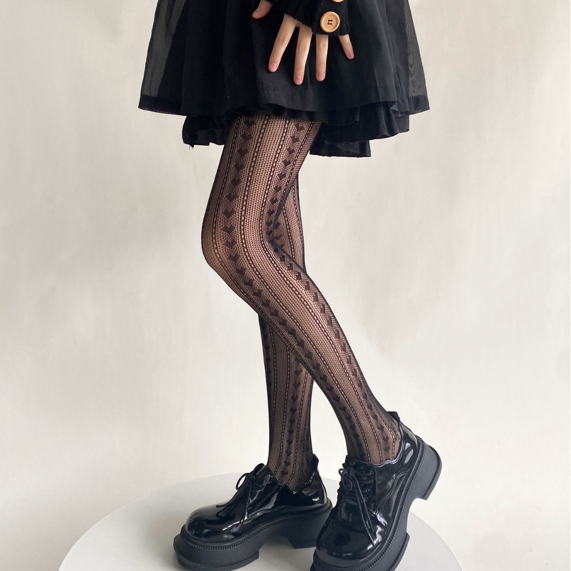 日系甜妹爱心竖条纹复古可爱镂空渔网袜女暗黑辣妹打底连裤袜纯色