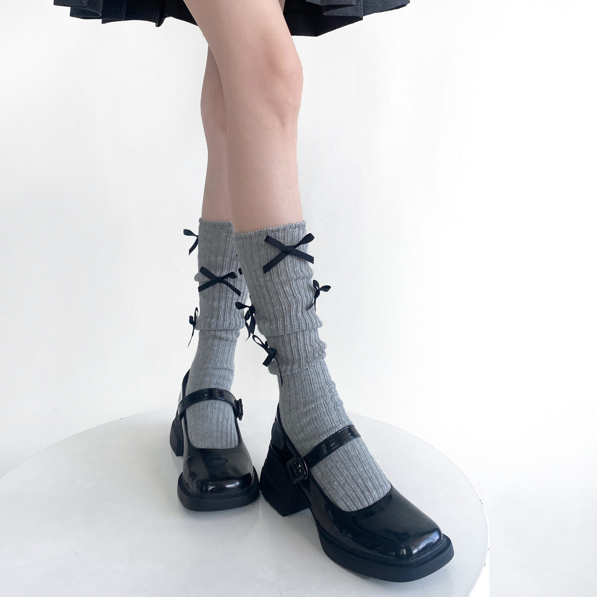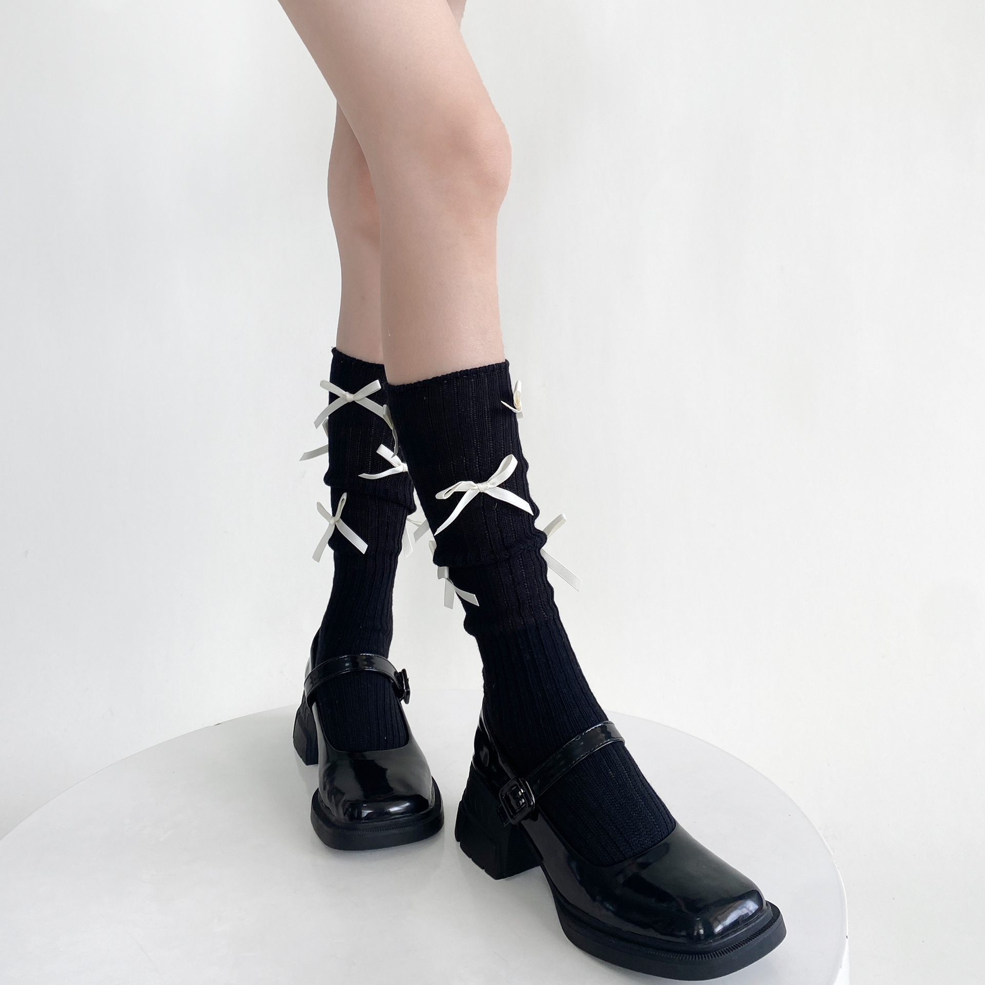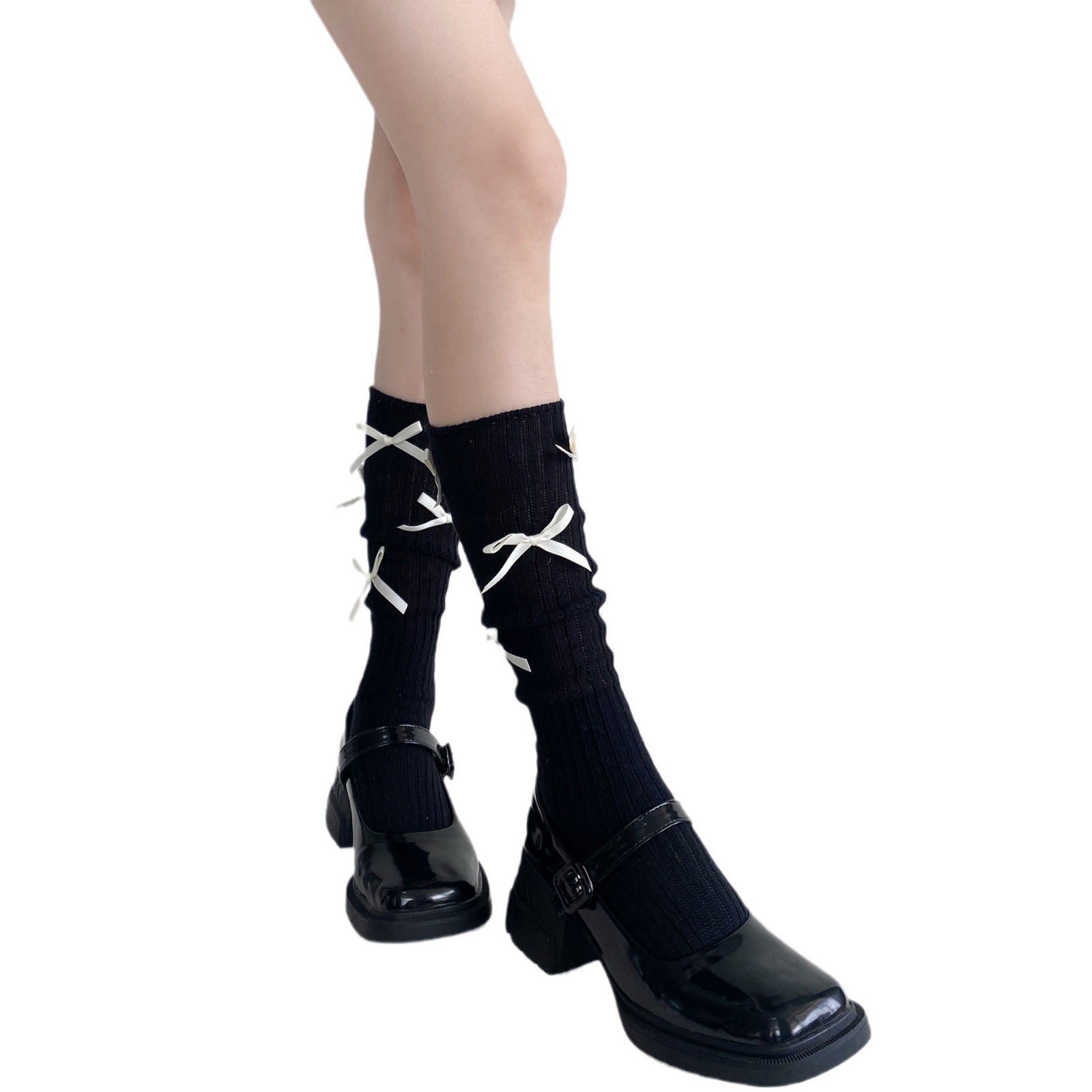 春秋季韩国东大门小众设计款多蝴蝶结堆堆小腿袜洋气棉质百搭中筒