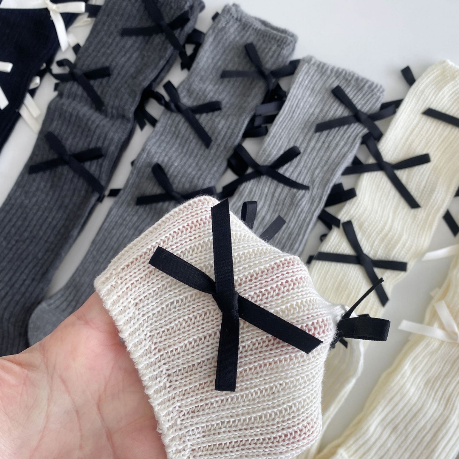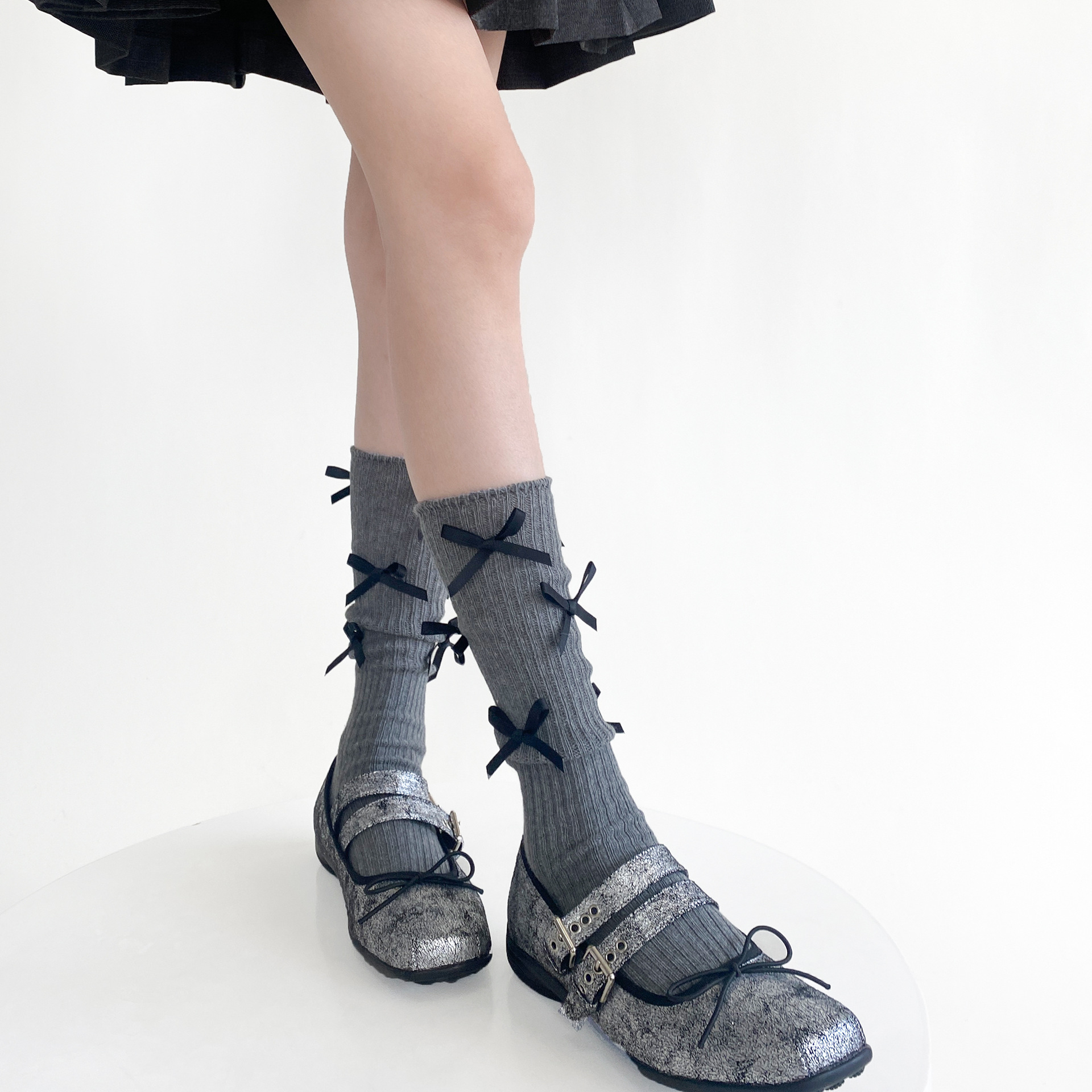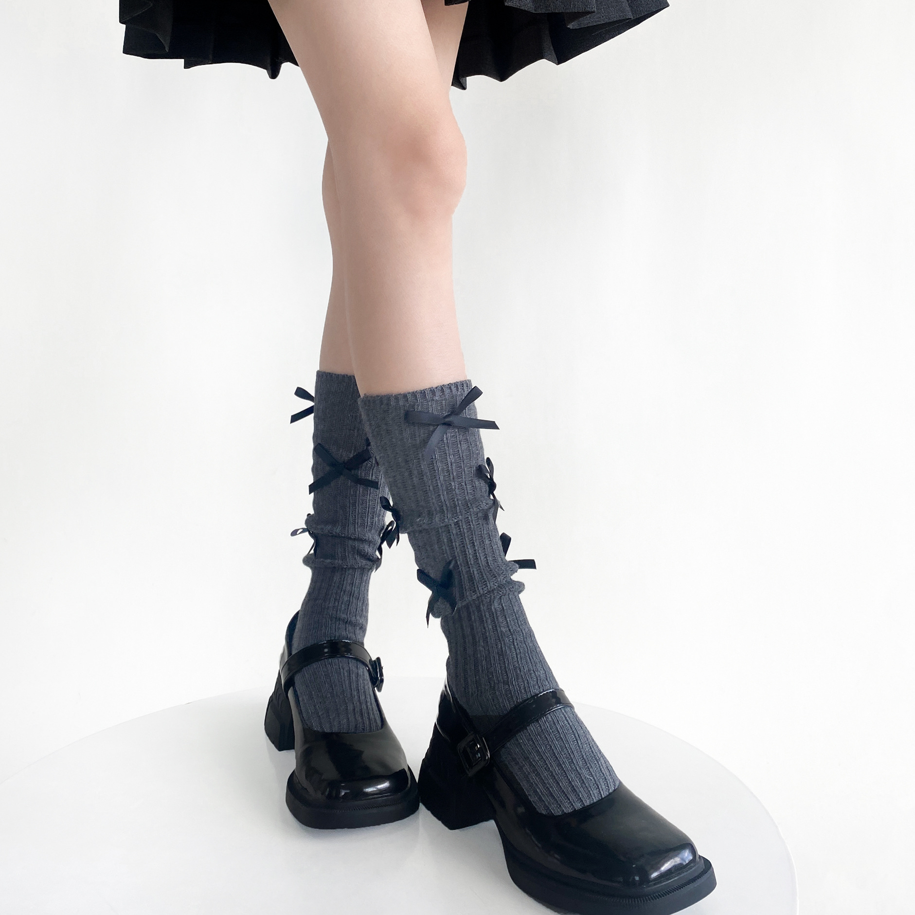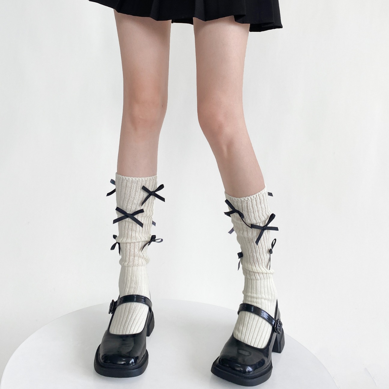 春秋季韩国东大门小众设计款多蝴蝶结堆堆小腿袜洋气棉质百搭中筒