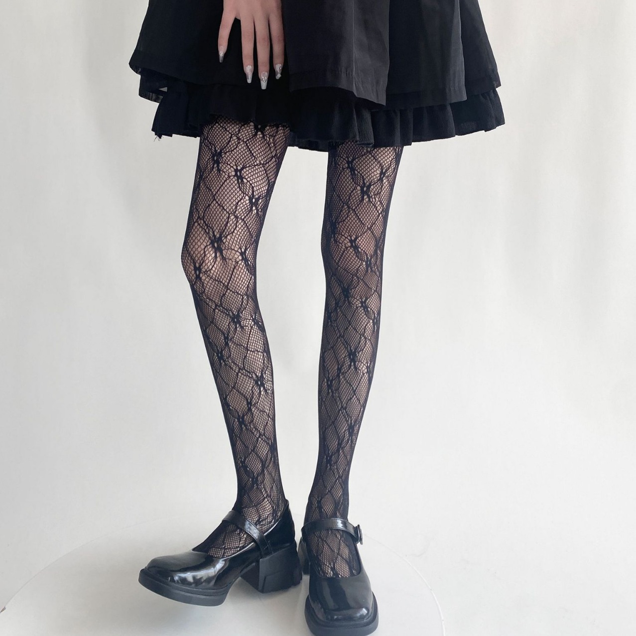 春夏小众蕾丝网袜女千禧辣妹Y2K花卉镂空美腿塑形薄款夏季打底袜