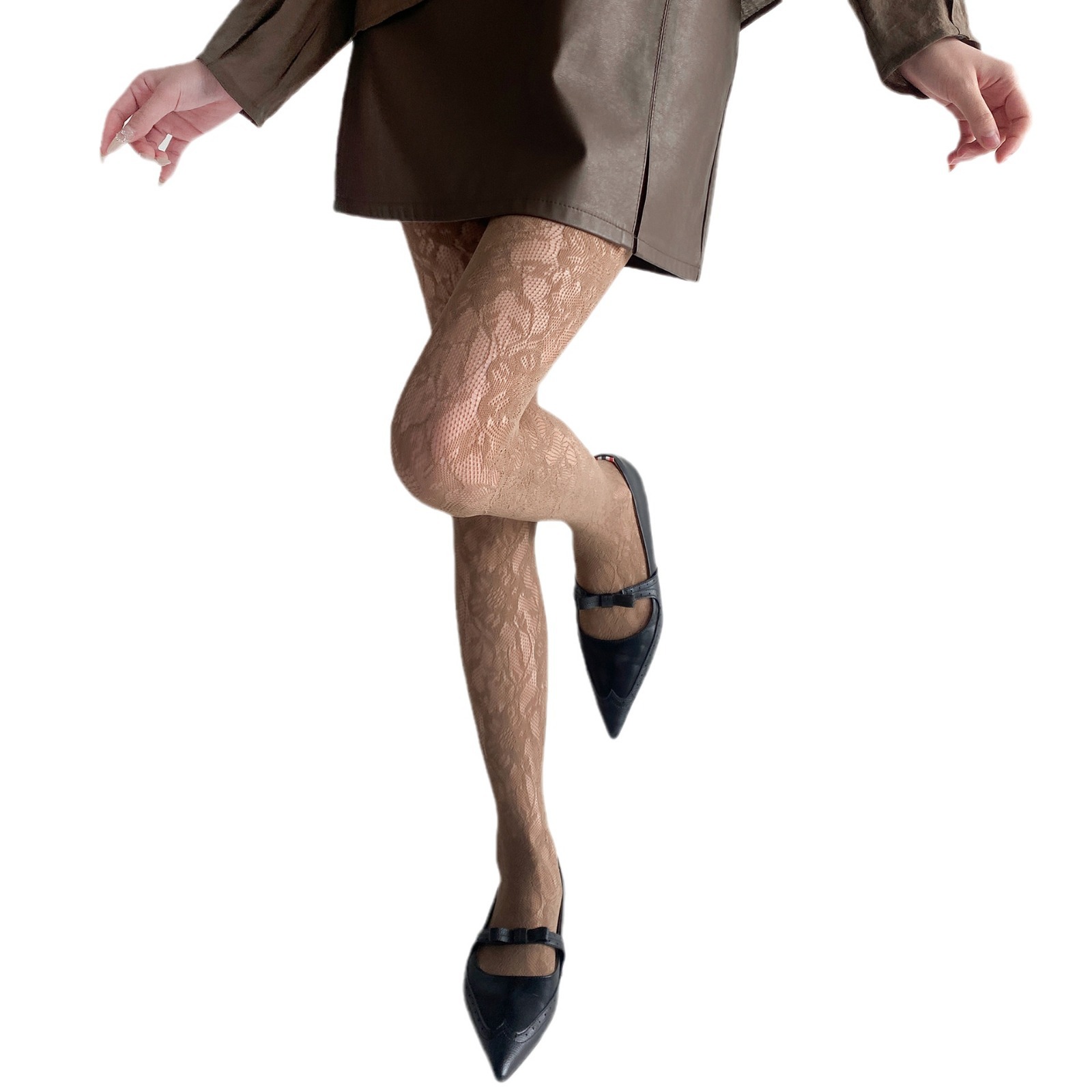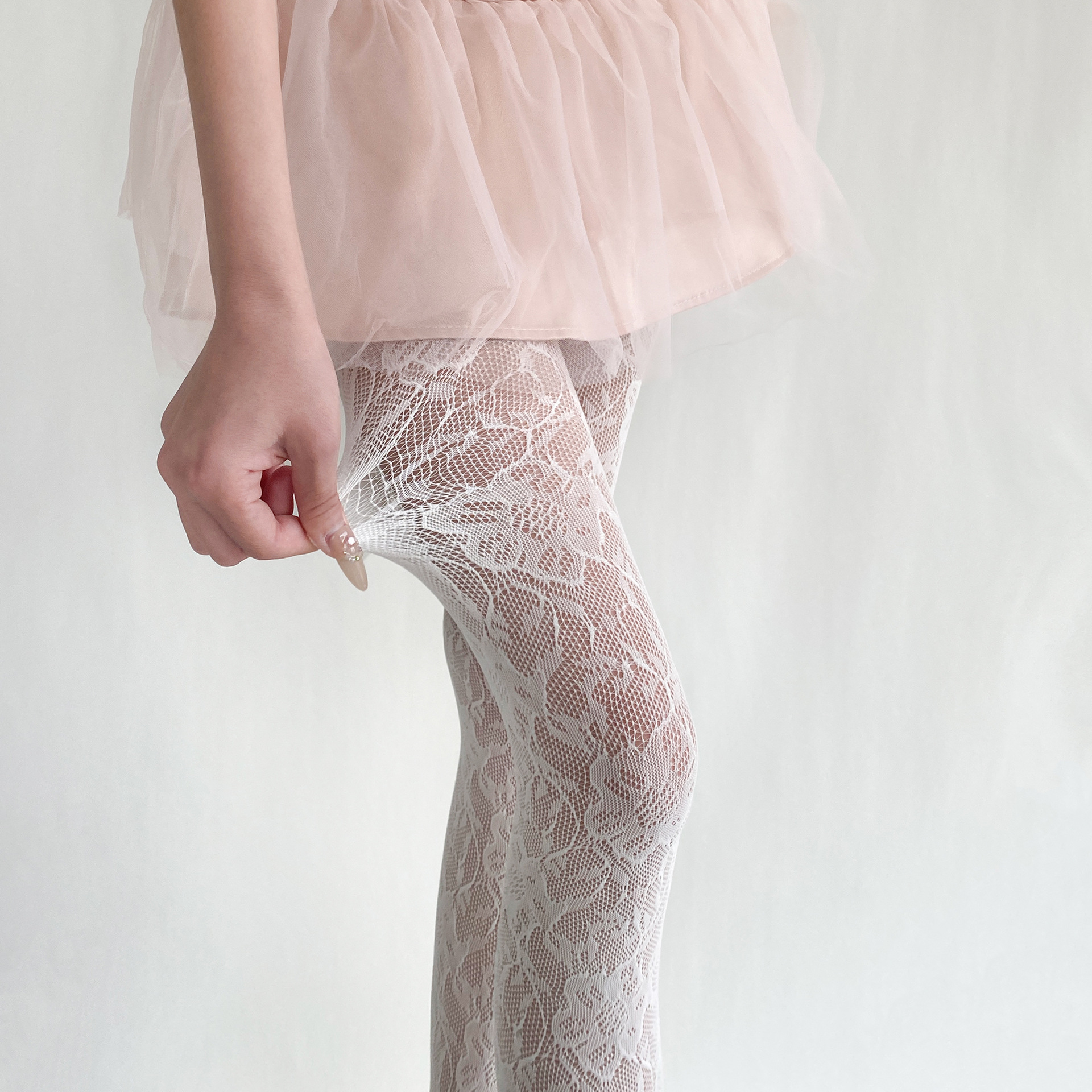 春夏新品复古蕾丝网袜女性感镂空花朵织花薄款暗黑纯欲白色连裤袜
