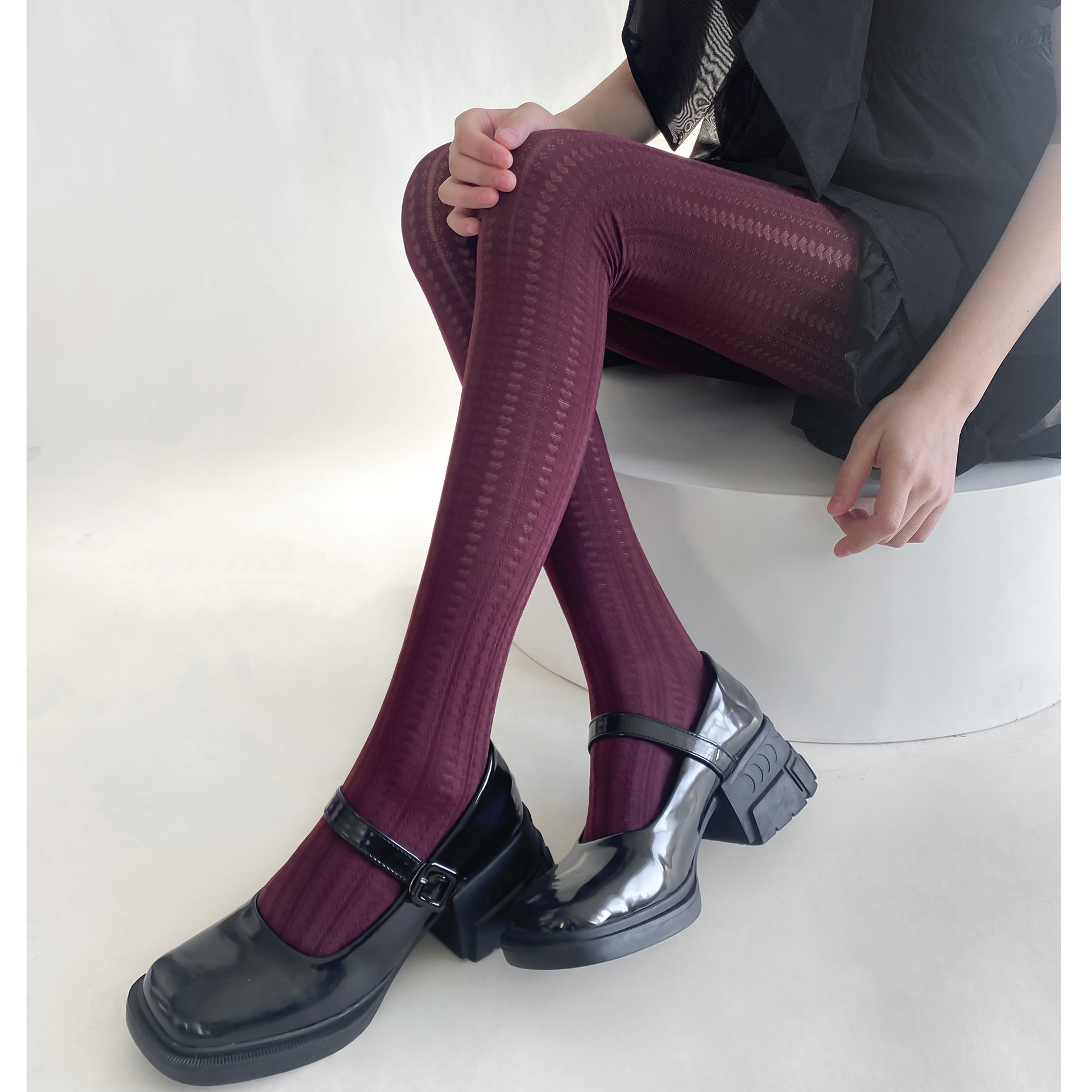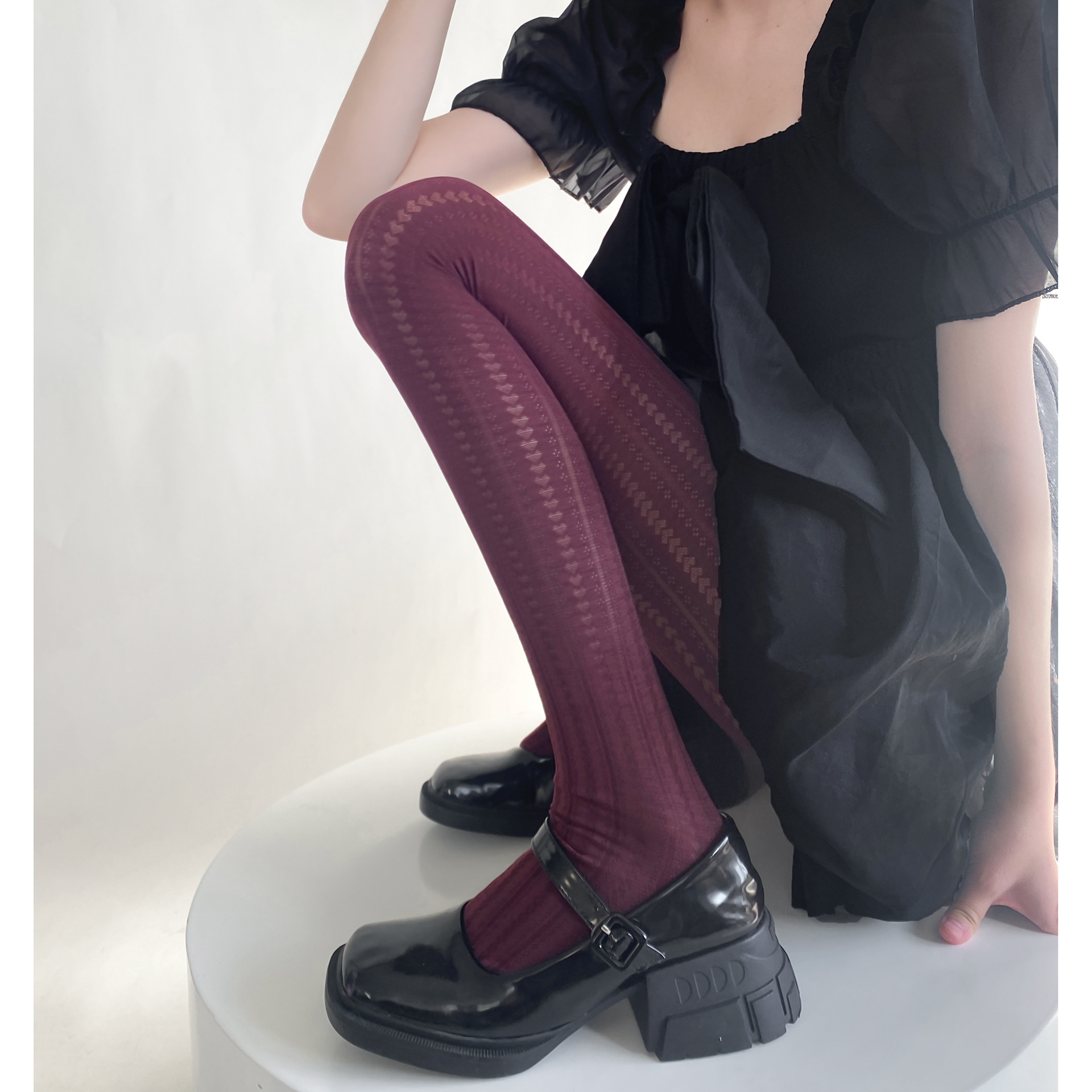 新款复古爱心立体竖纹提花显瘦打底袜女春秋纯色小众个性丝袜