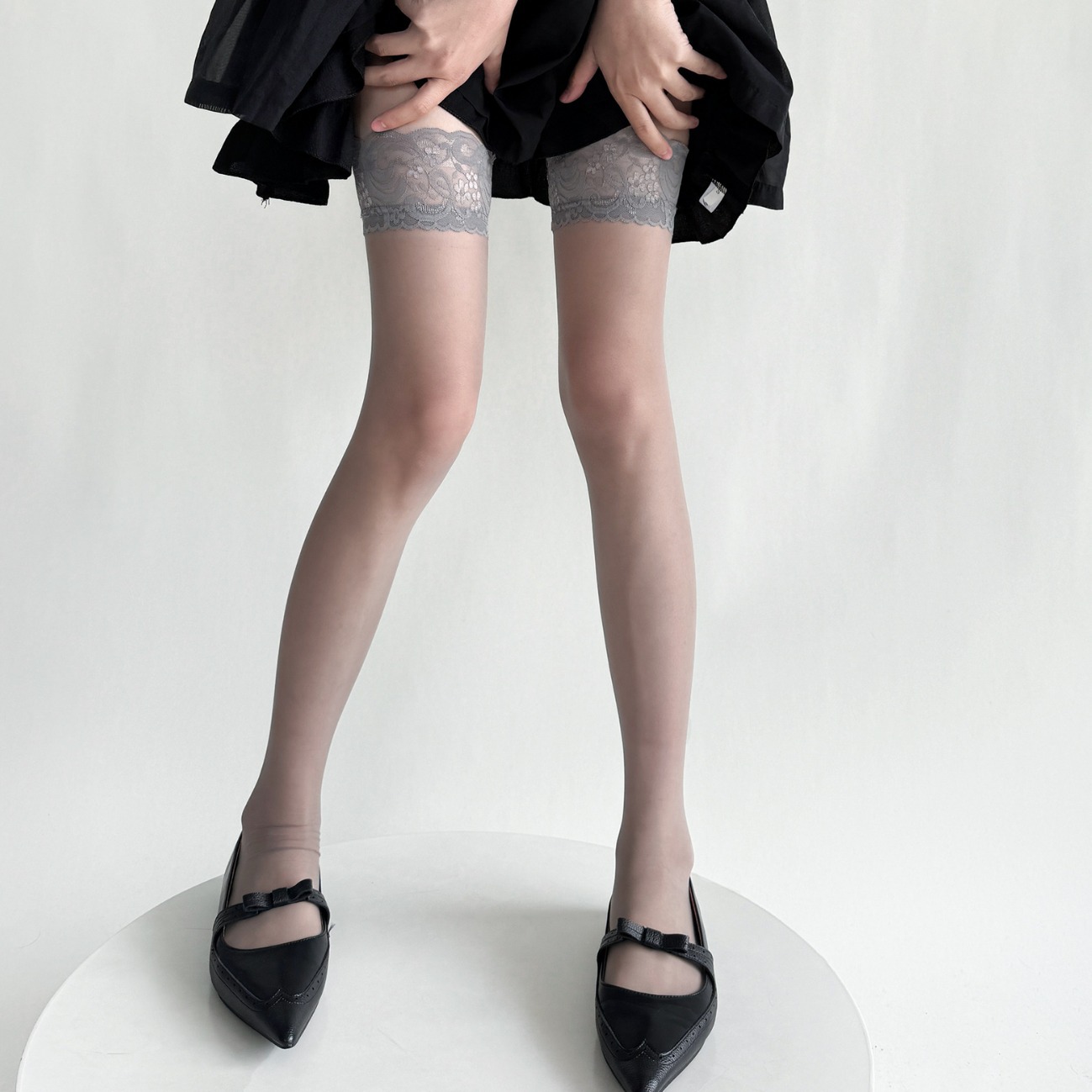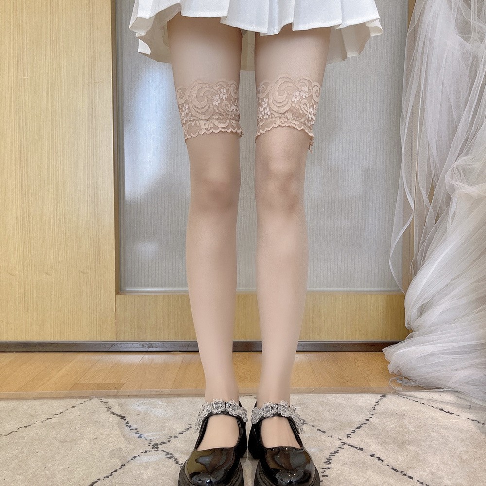 春夏季超薄款透肉纯欲蕾丝花边高筒袜女黑色性感显瘦过膝袜子灰色