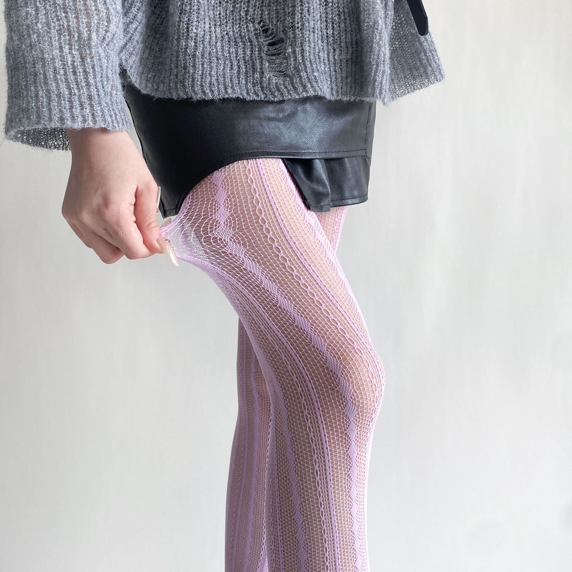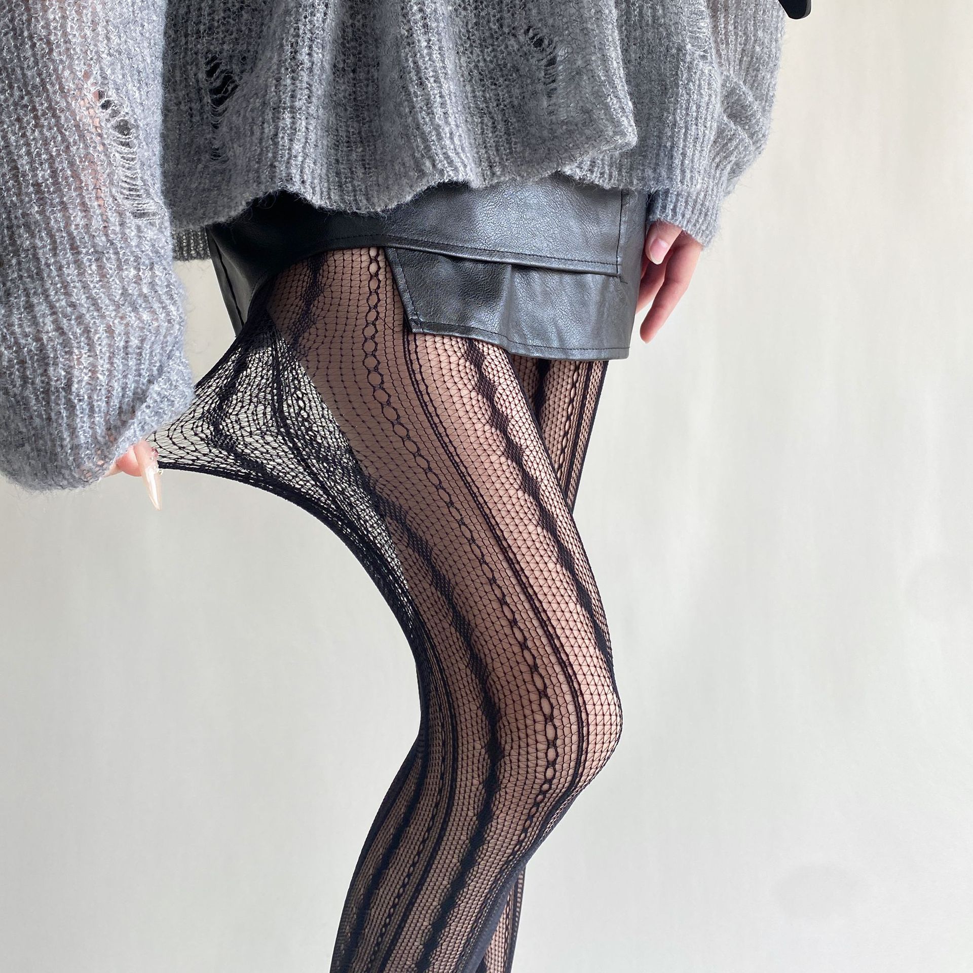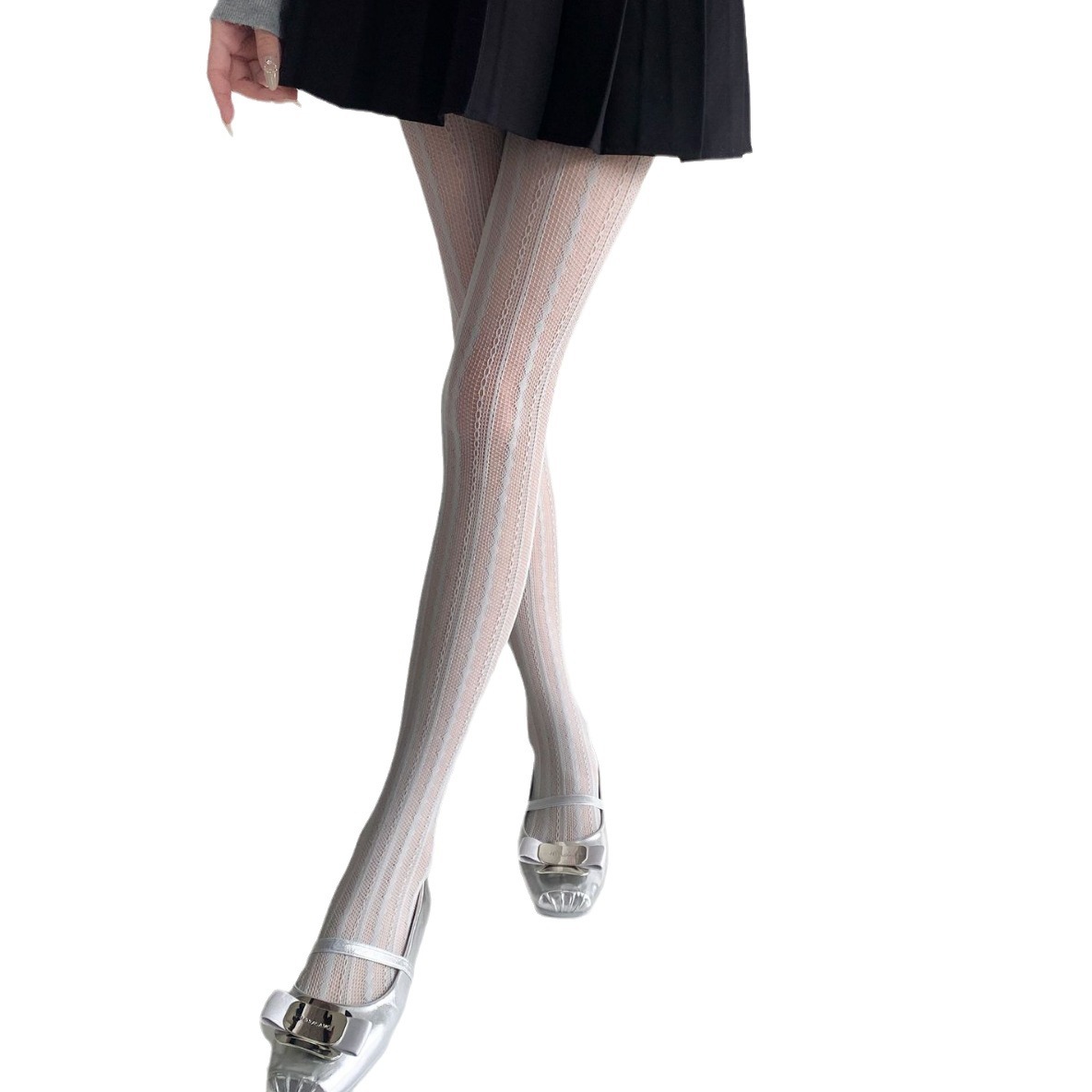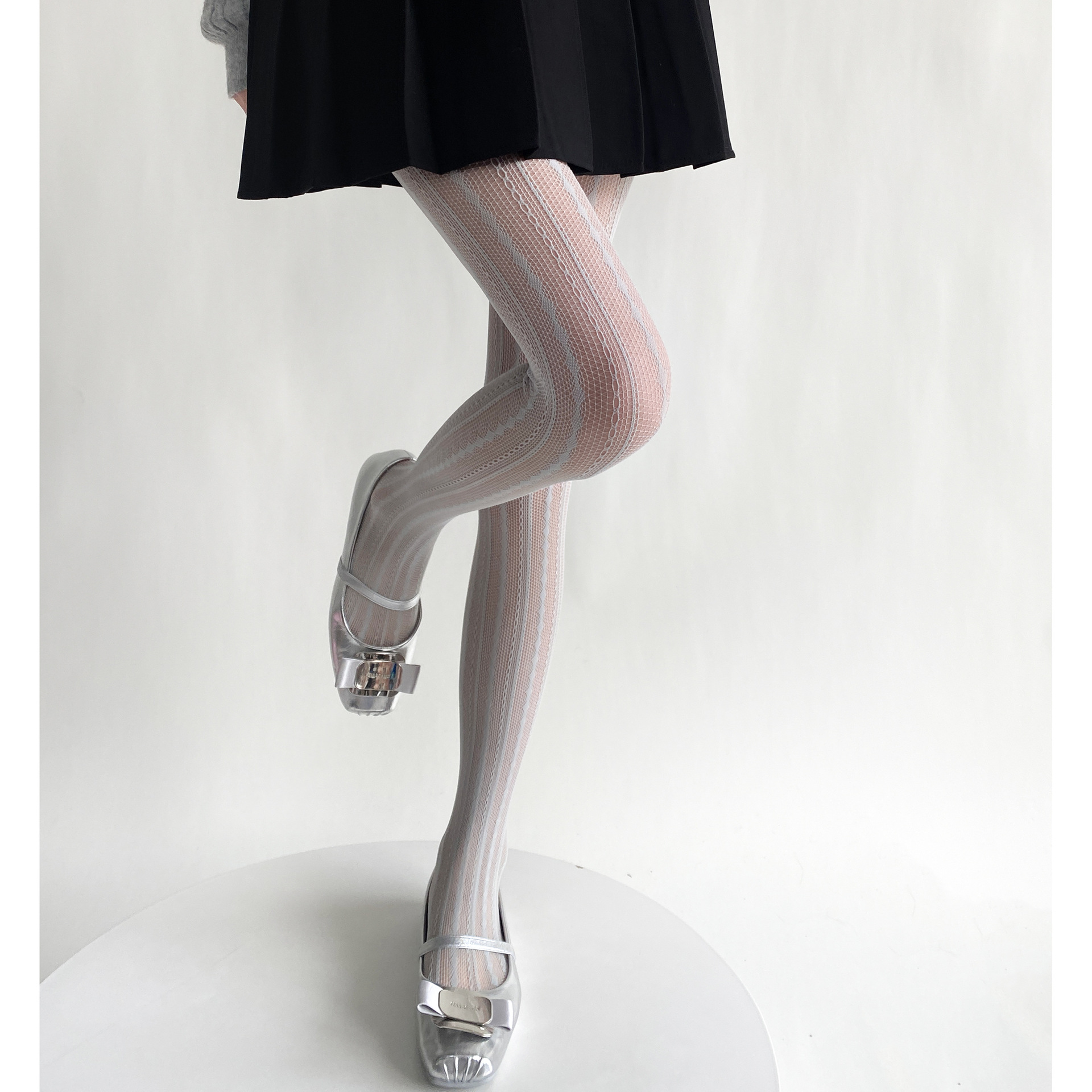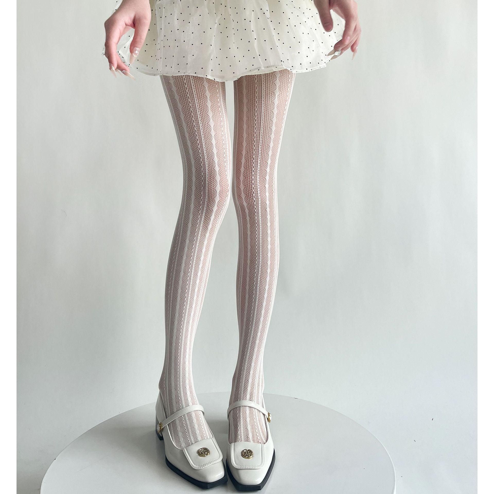 春夏新品菱格竖纹网袜复古芭蕾风条纹麻花纯欲风显瘦连裤袜女