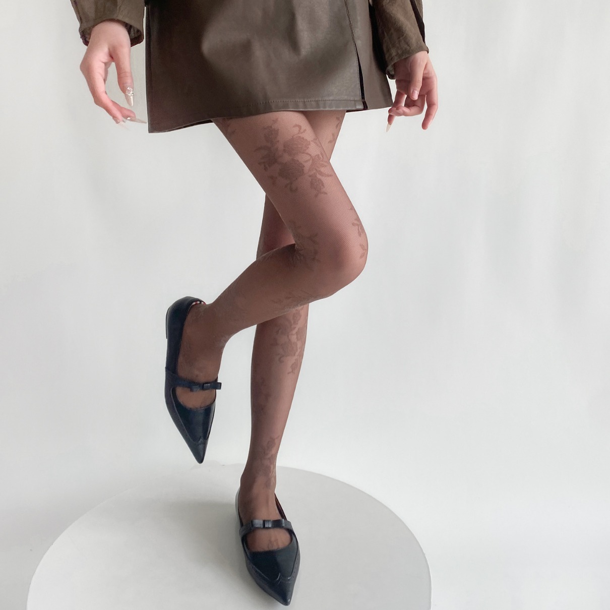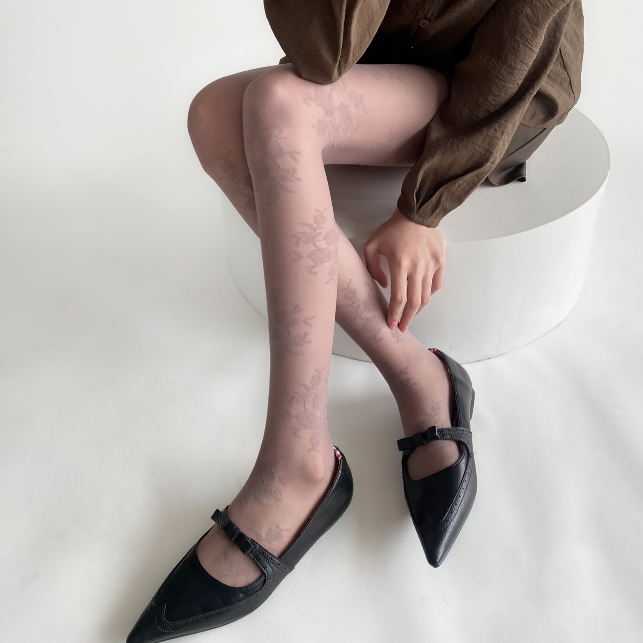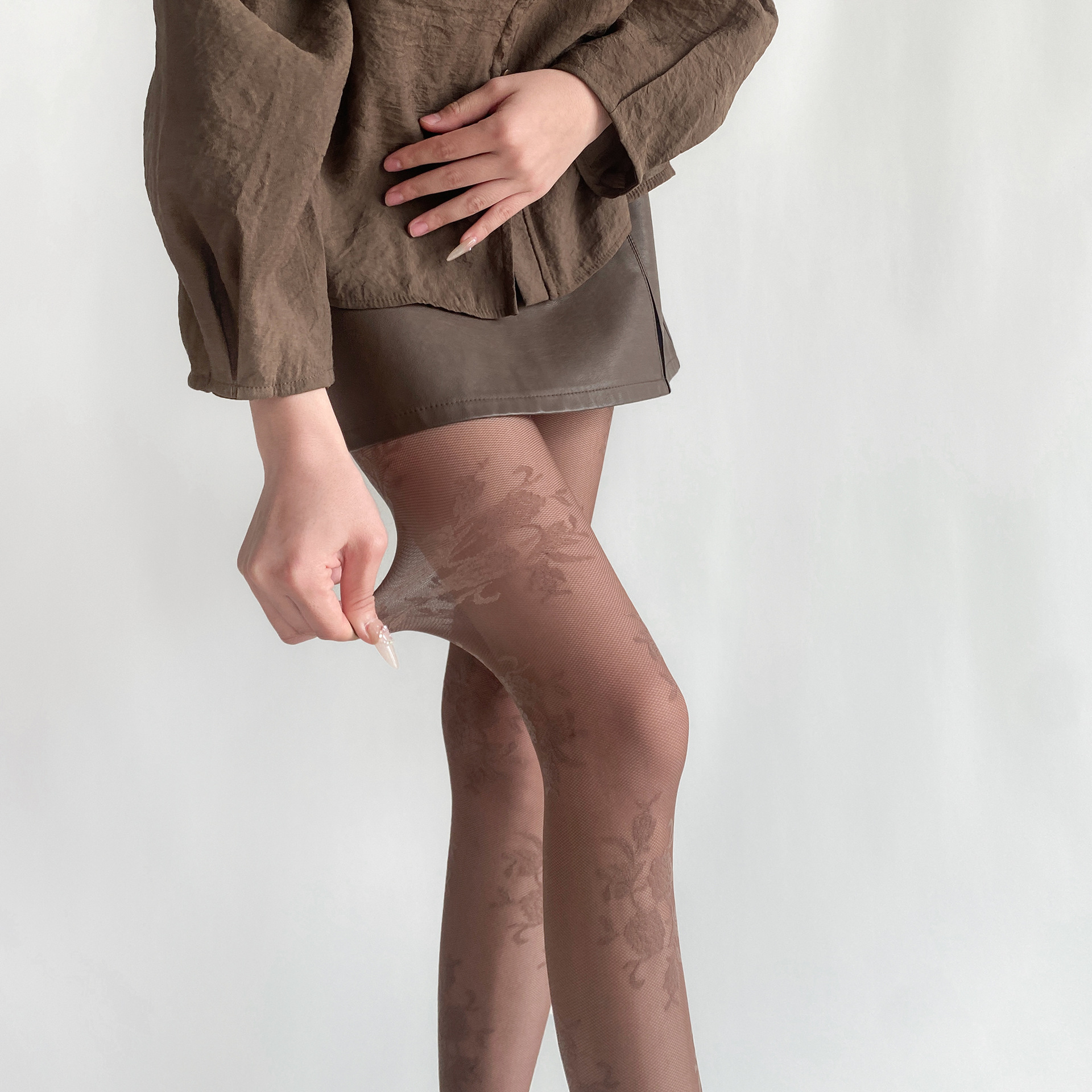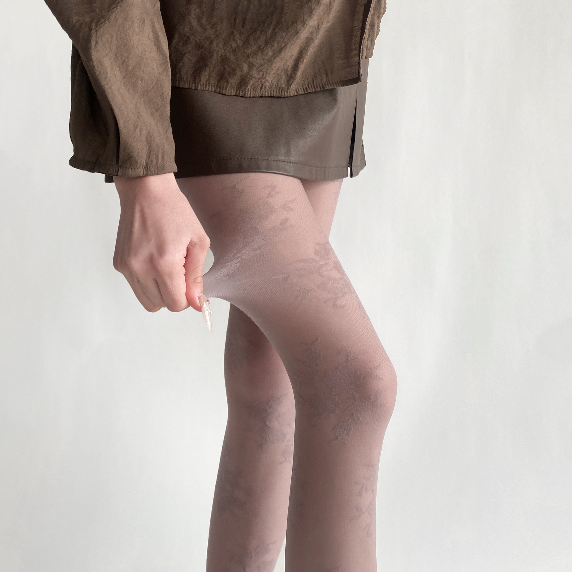 春夏季ins复古奶白色蔷薇玫瑰提花丝袜蕾丝薄款黑丝防脱丝连裤袜