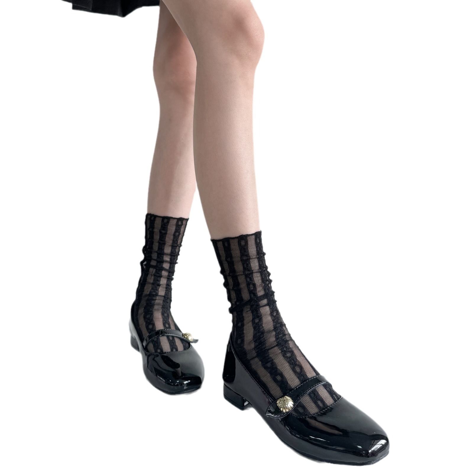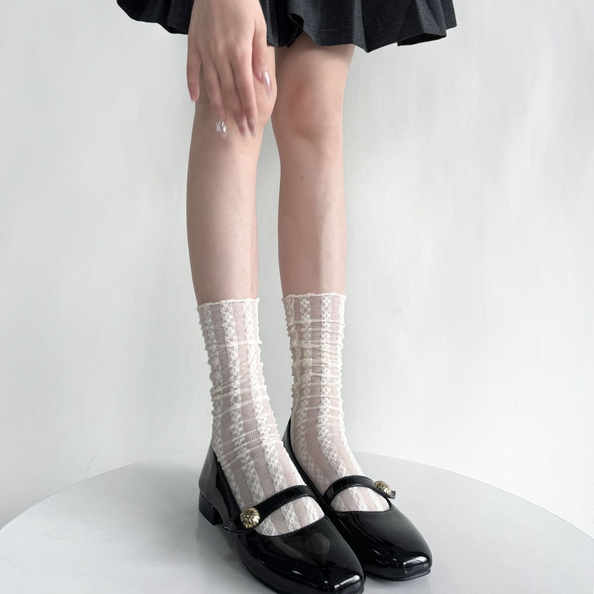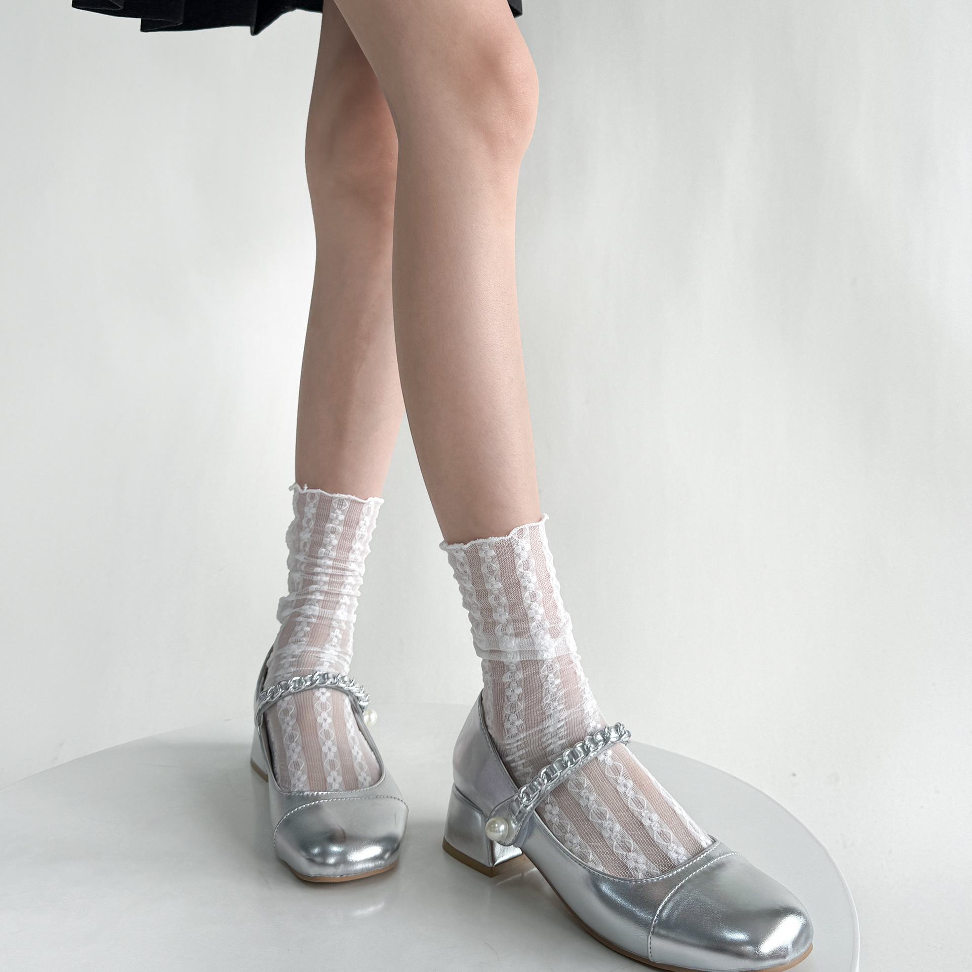 白色蕾丝袜子女中筒袜夏季镂空花朵玛丽珍奶白短袜夏季薄款堆堆袜