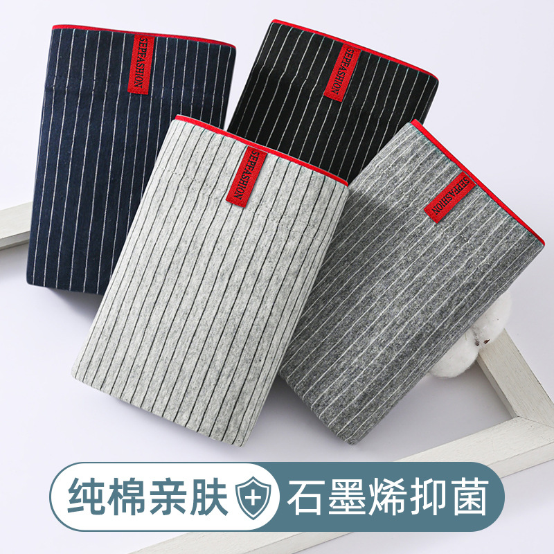 男士内裤秋冬季抗菌男款棉质条纹平角裤男生大码透气四角裤杈中腰