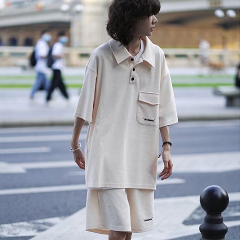 夏季polo衫短袖T恤男士宽松商务休闲潮流翻领半袖衫休闲短裤套装