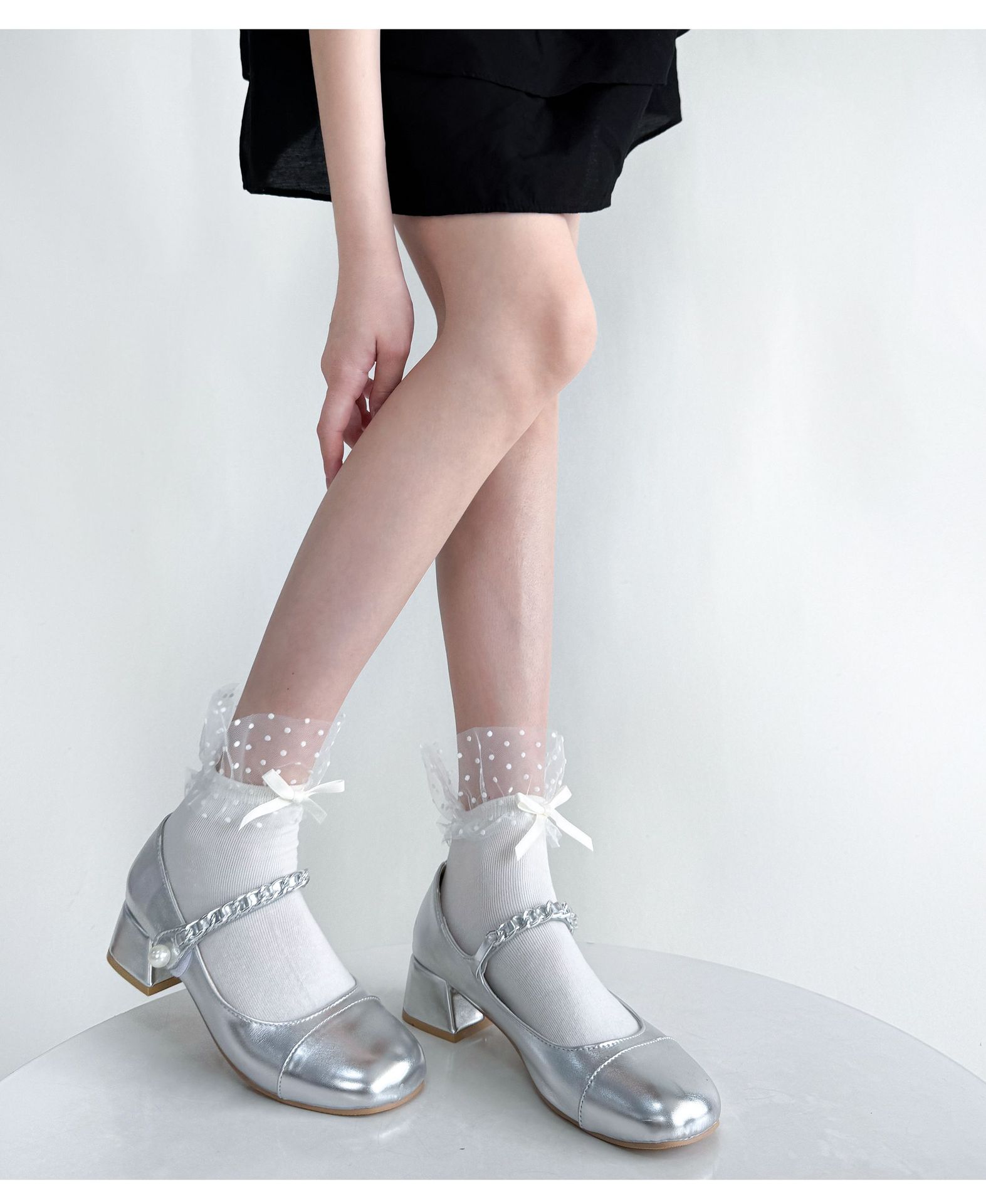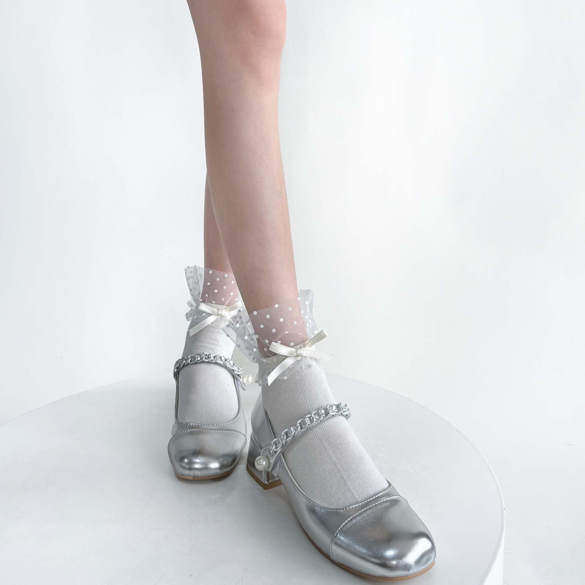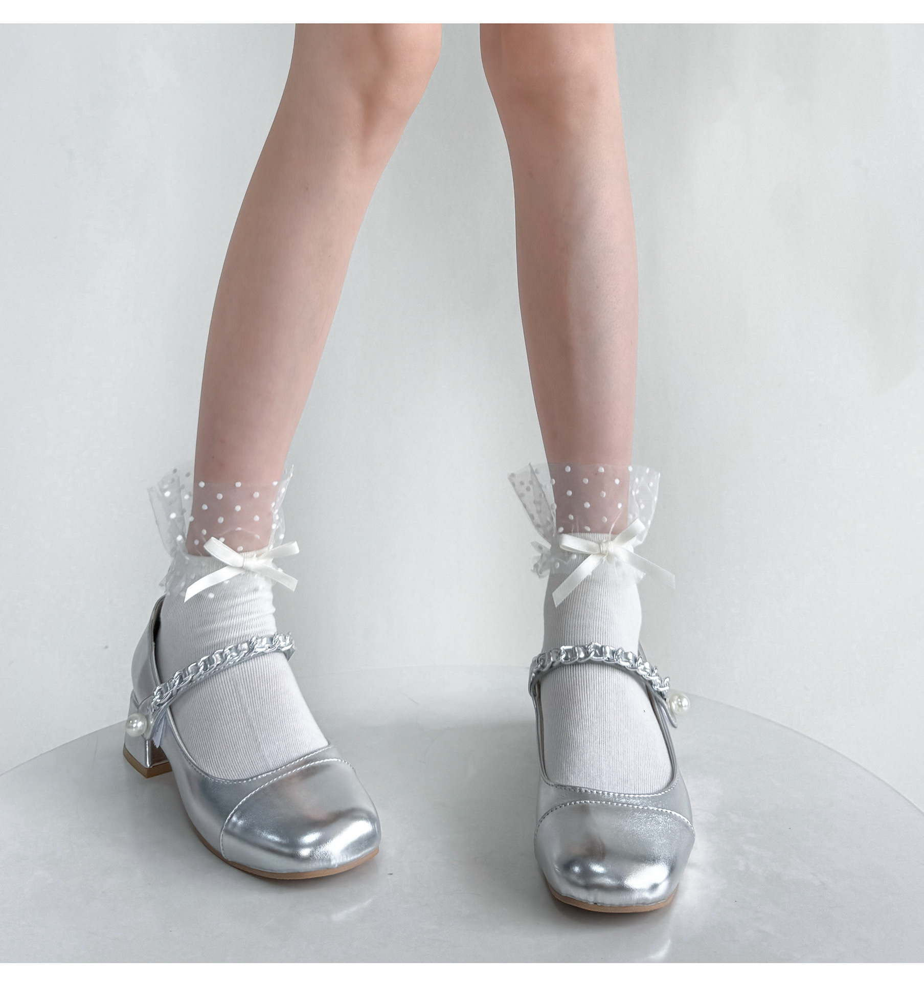 少女波点网纱花边中筒袜黑色洛丽塔棉袜蝴蝶结甜美短袜白色女夏季