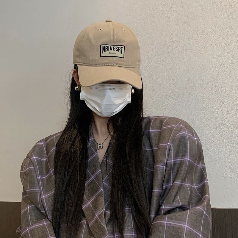 大头围软顶女日系复古字母贴布百搭休闲软顶大头围韩版潮牌显脸小