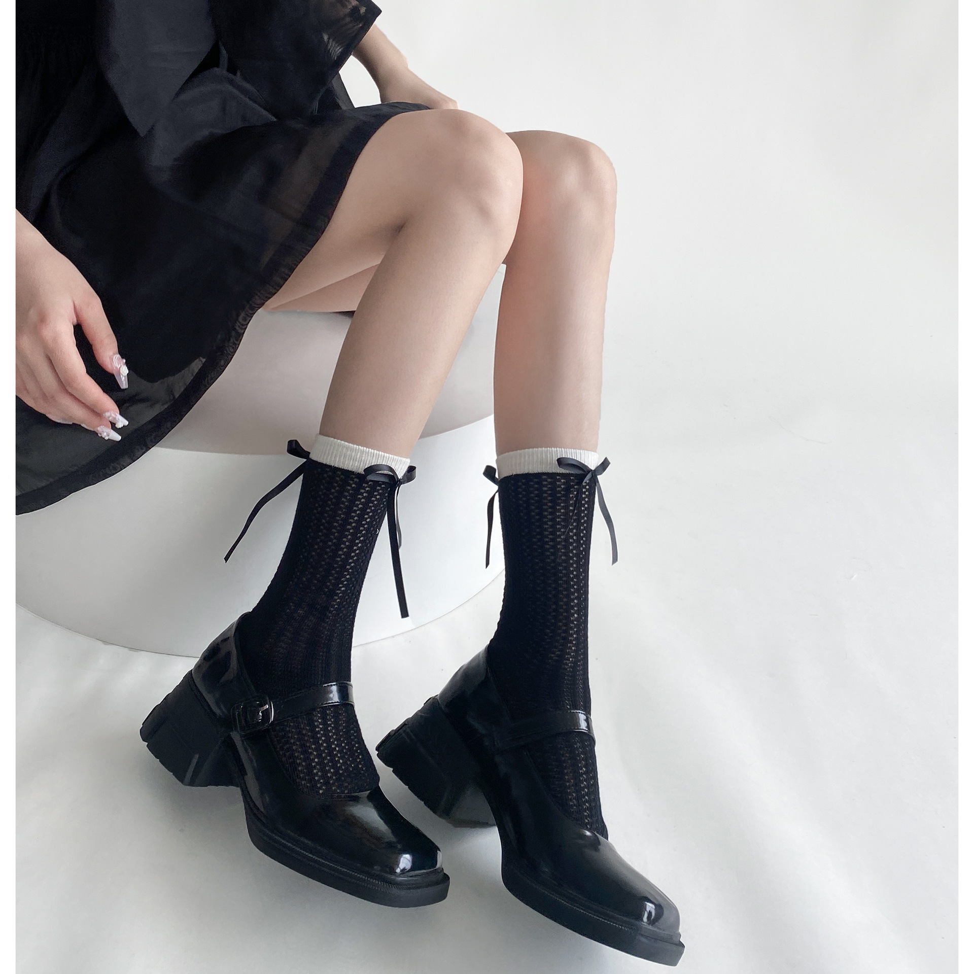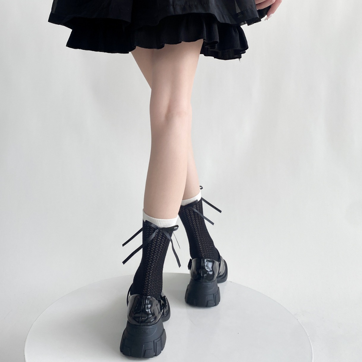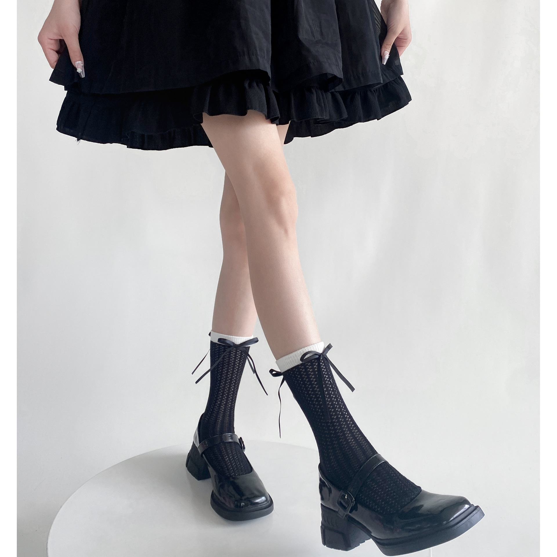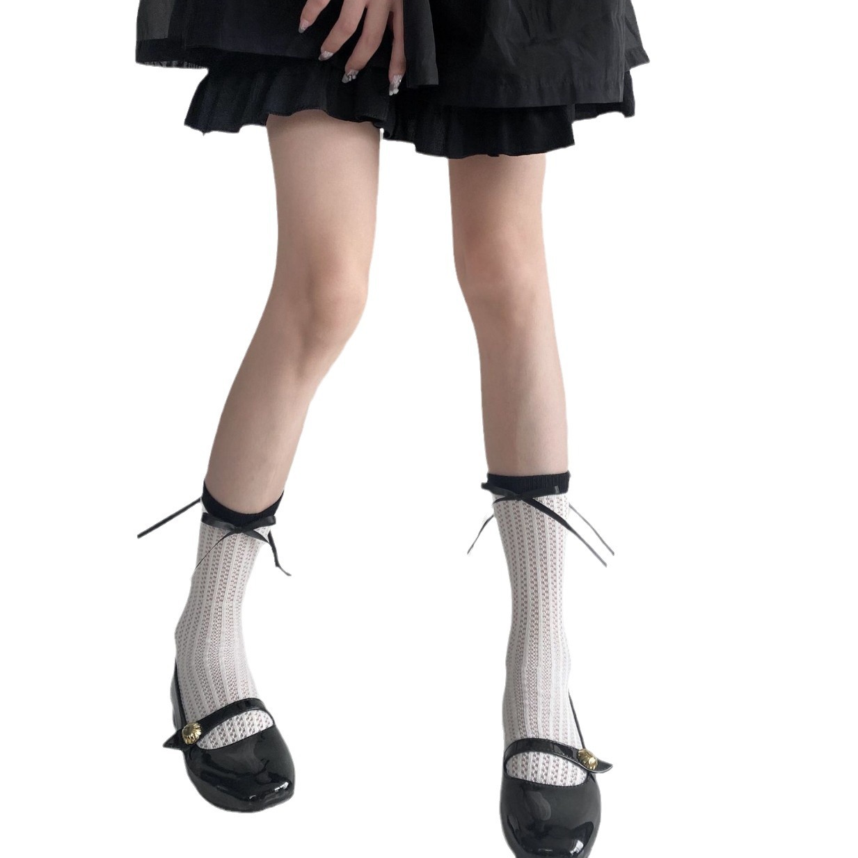 春夏薄款撞色镂空网眼中筒袜女透气吸汗百搭款黑白复古英伦风夏季