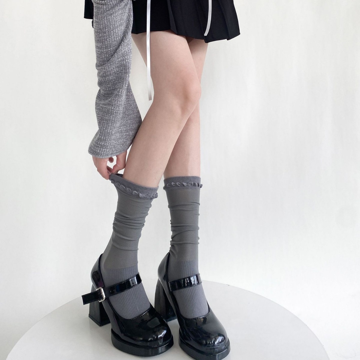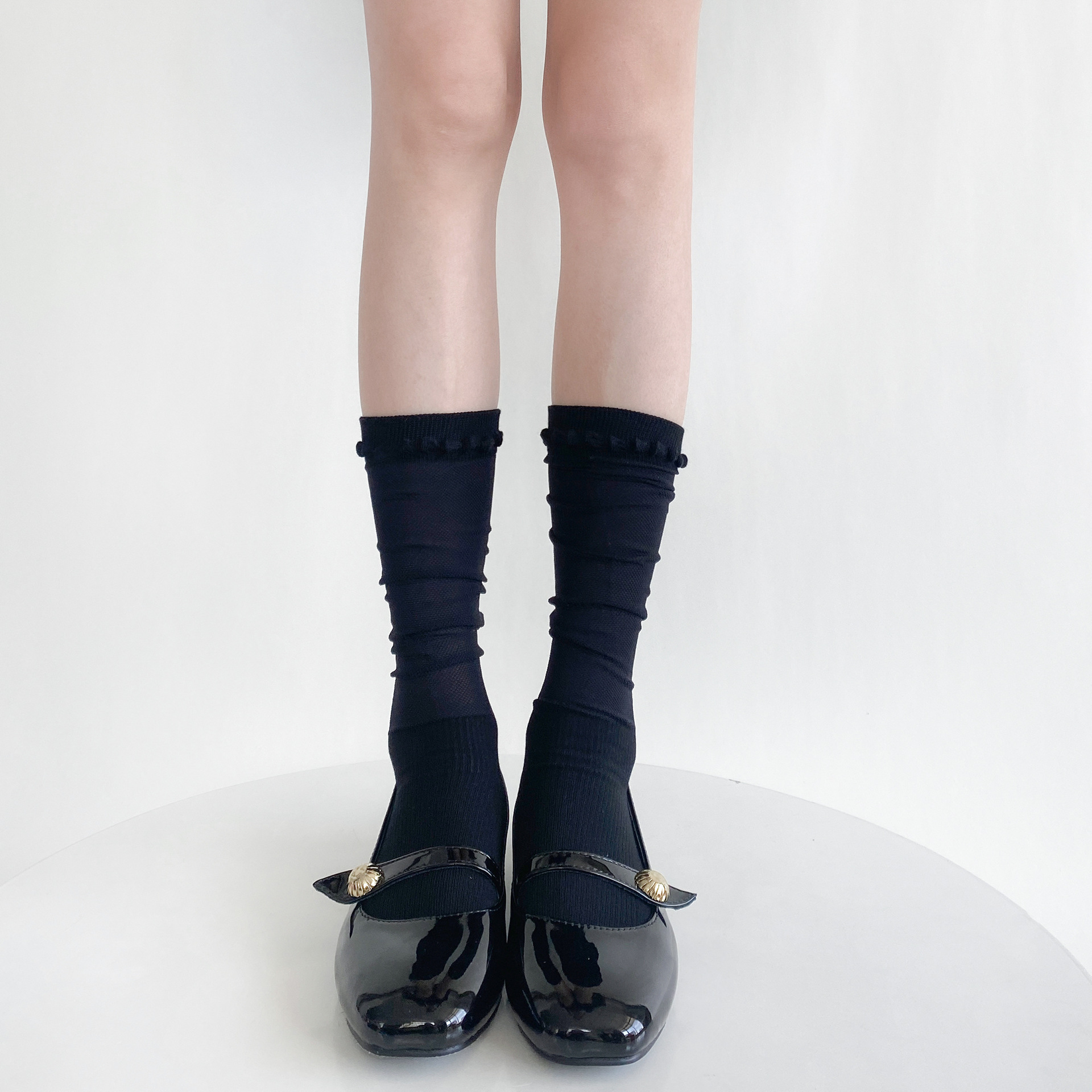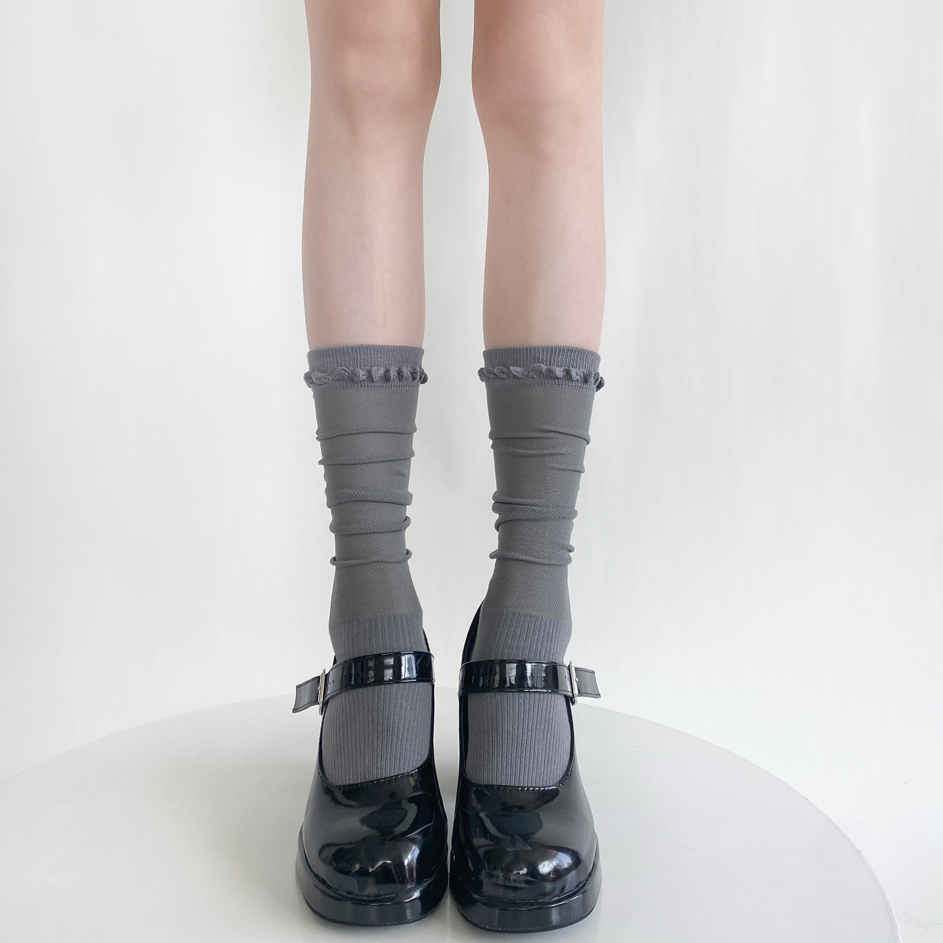 小腿袜子女春夏季薄款日系甜美花边透气网眼木耳边堆堆袜ins简约