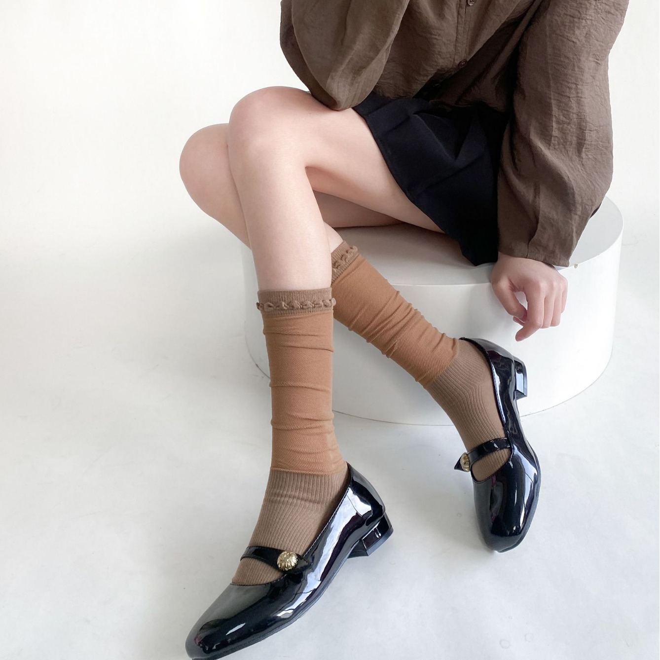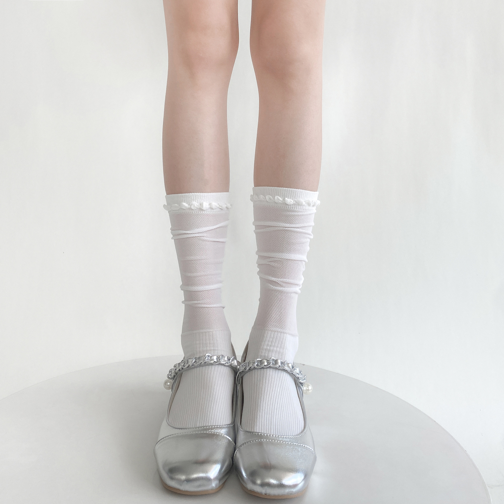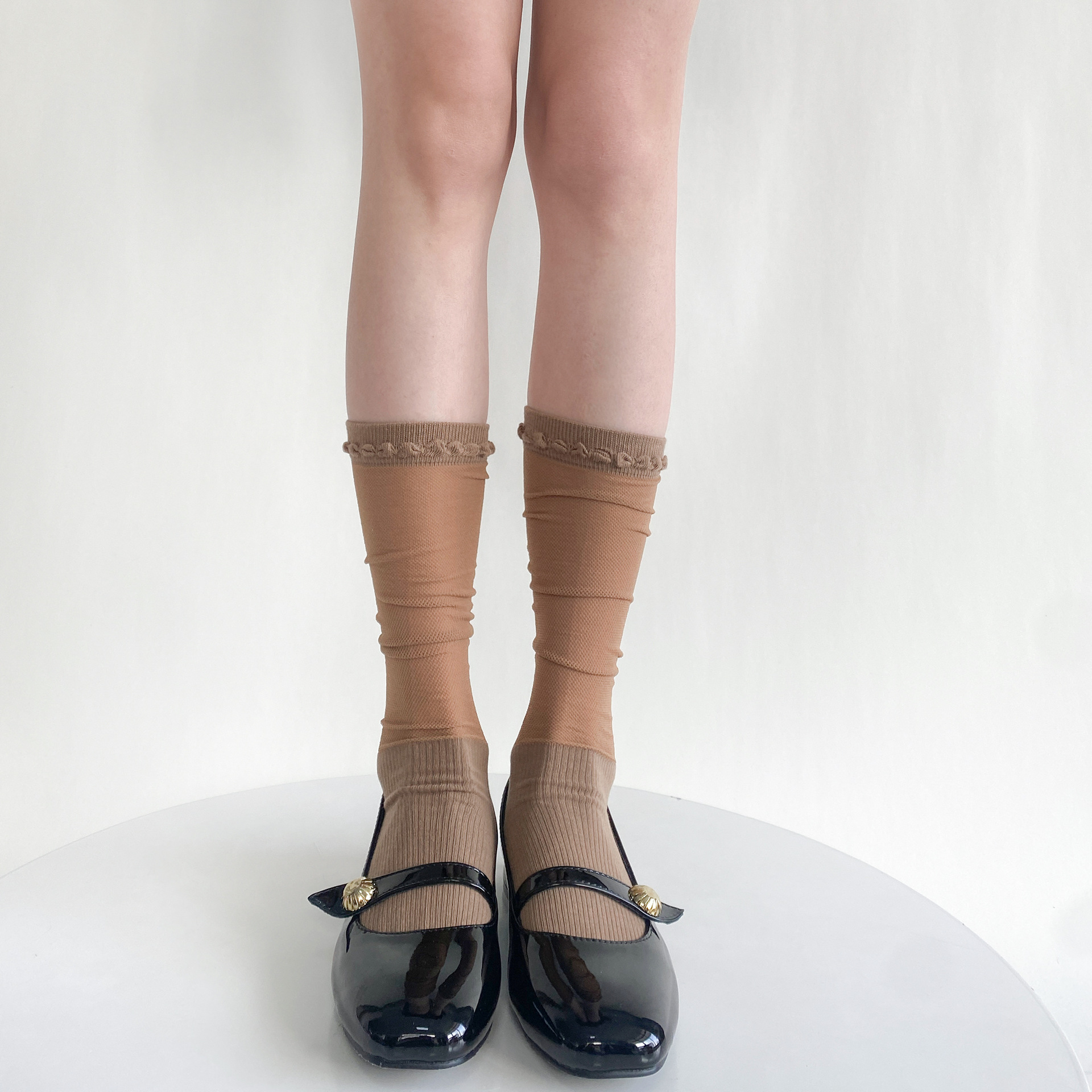 小腿袜子女春夏季薄款日系甜美花边透气网眼木耳边堆堆袜ins简约
