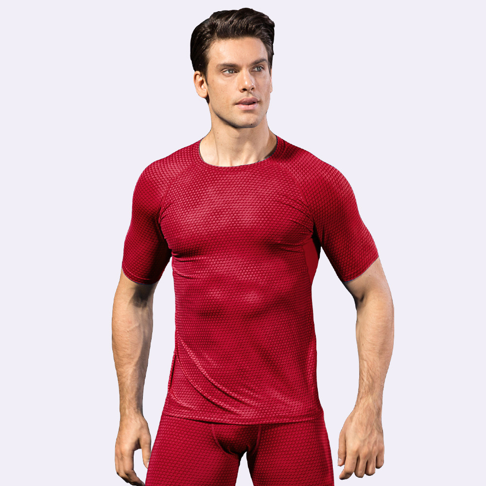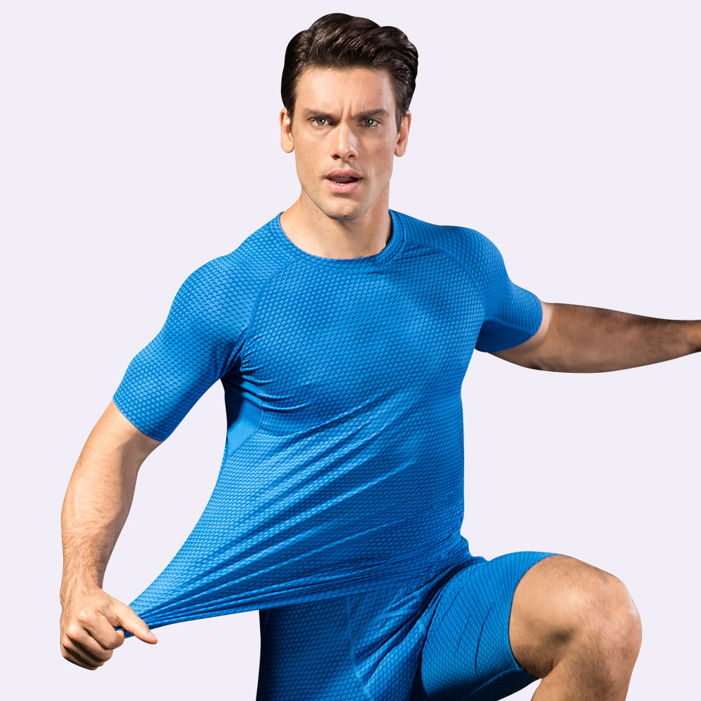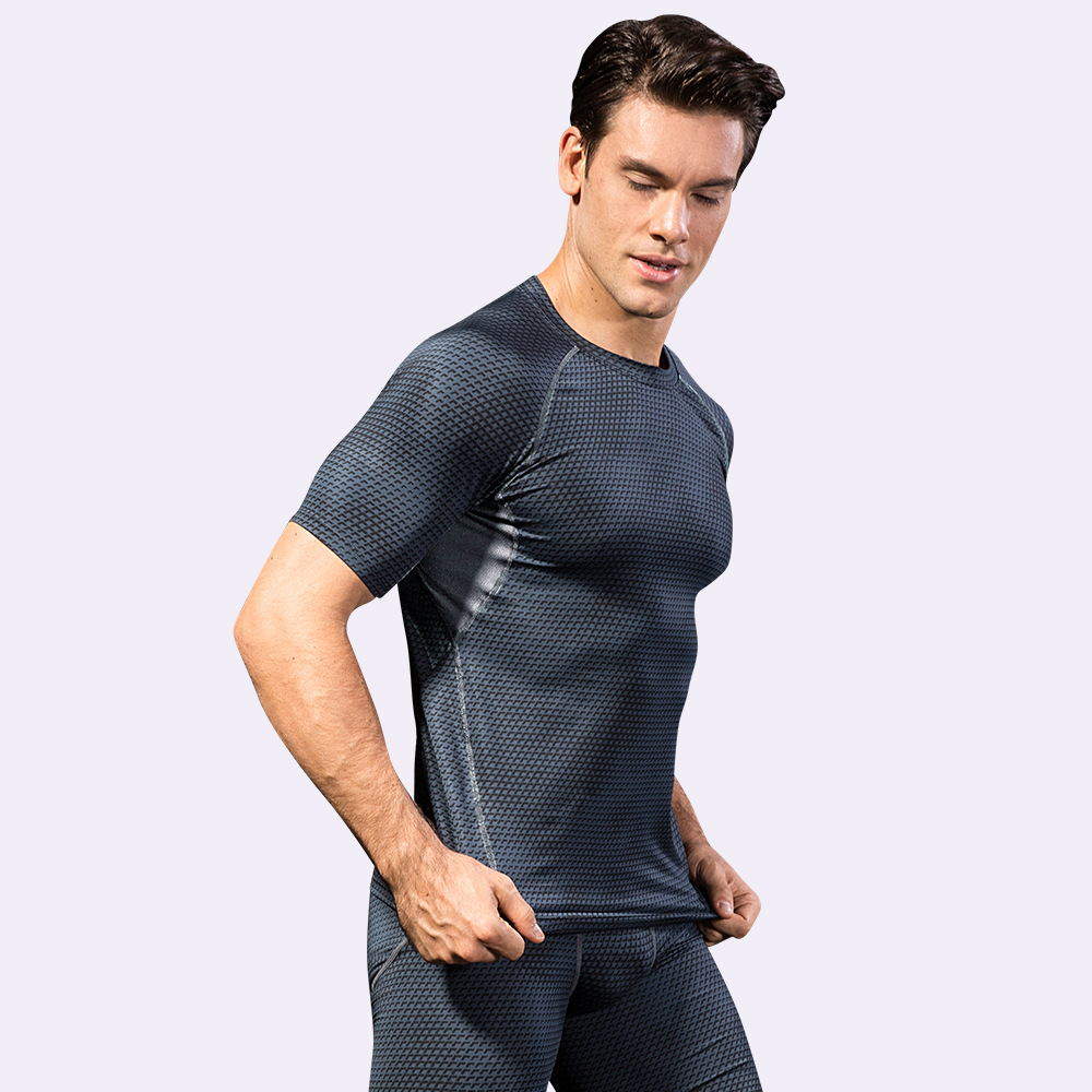 男士3D立体印花 健身跑步训练短袖 amazon紧身弹力排汗速干衣4023