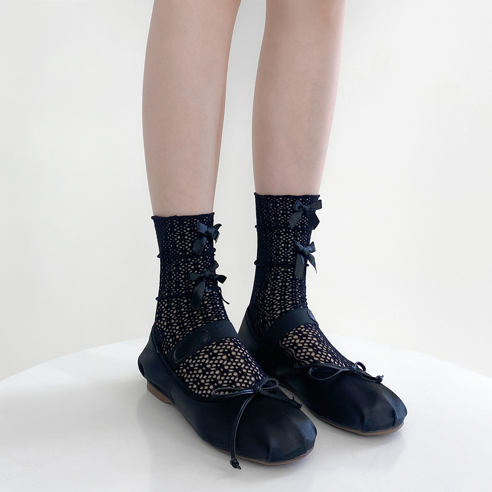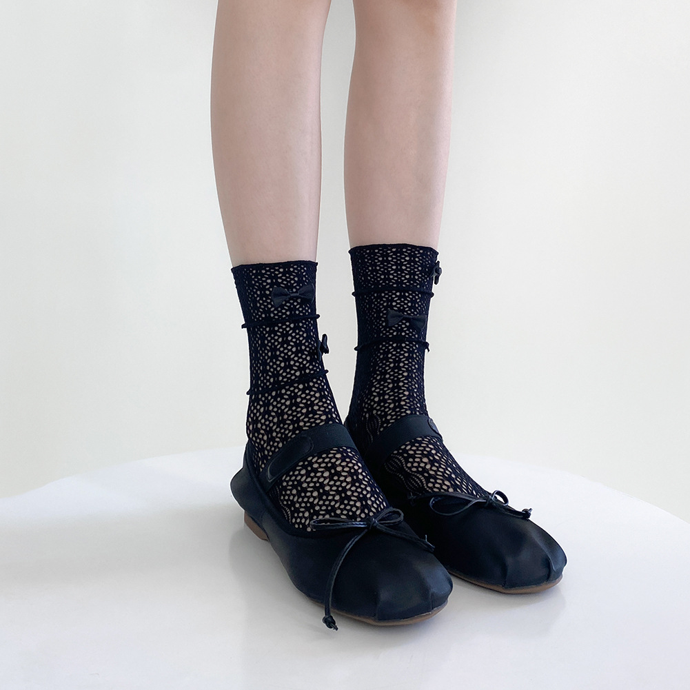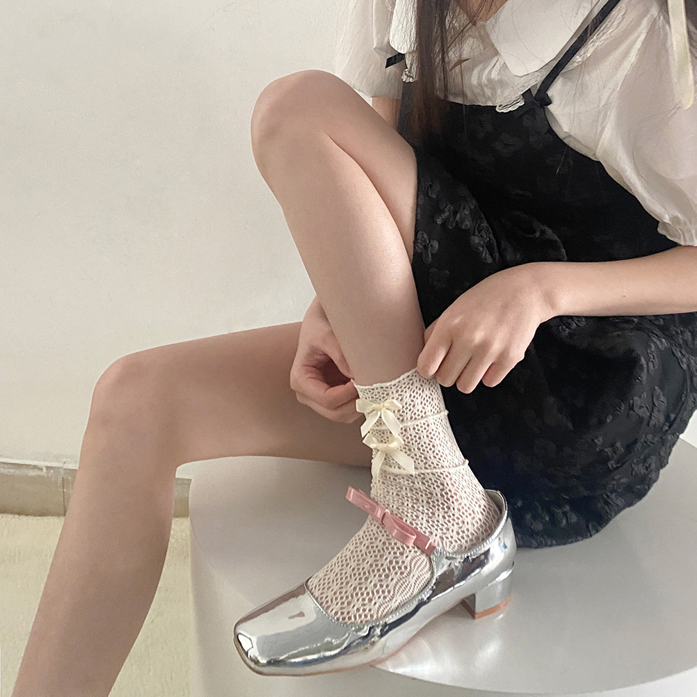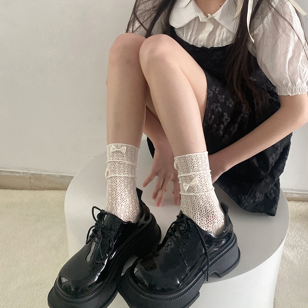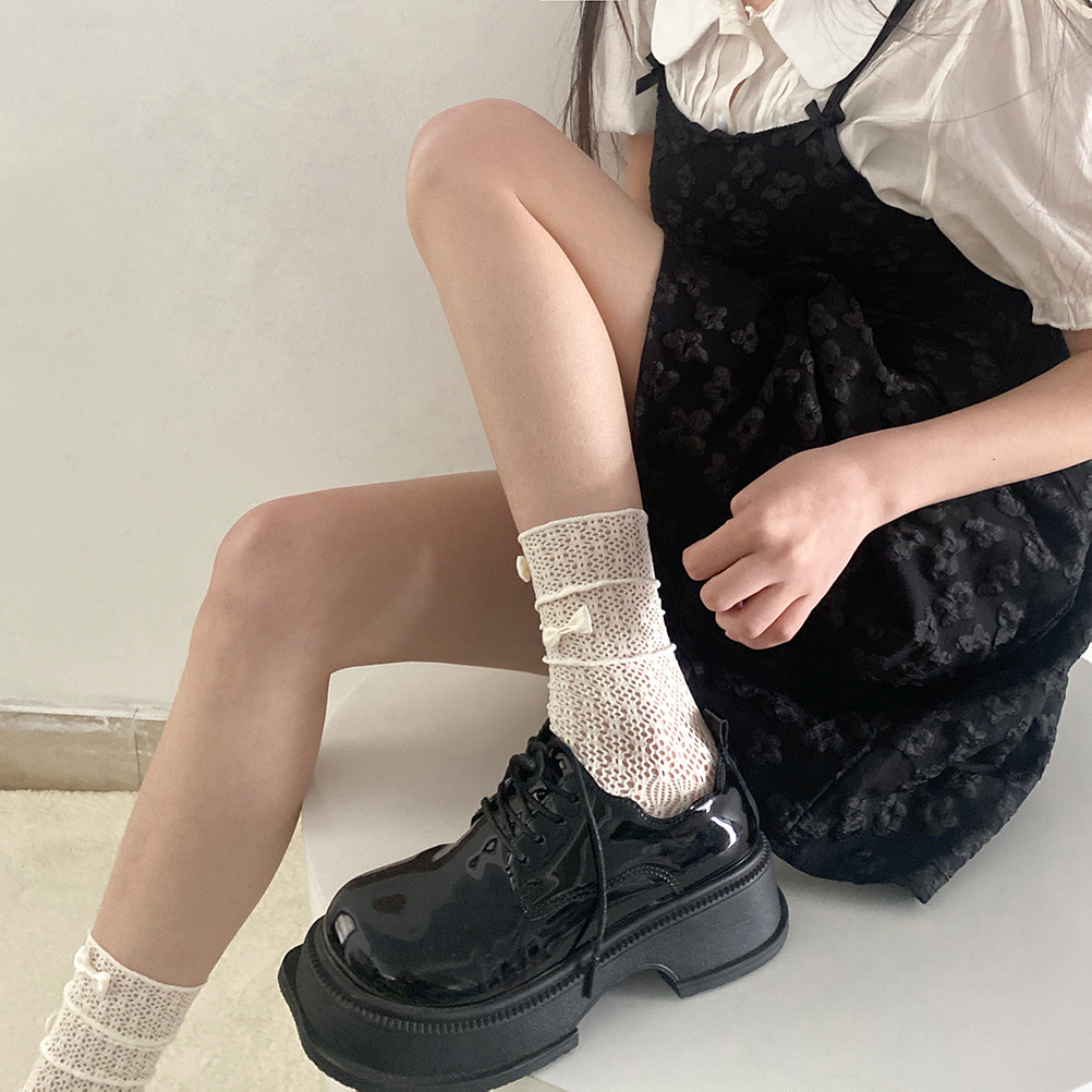 日系奶白色短袜春夏季薄款镂空三层木耳边堆堆袜蕾丝蝴蝶结JK中筒