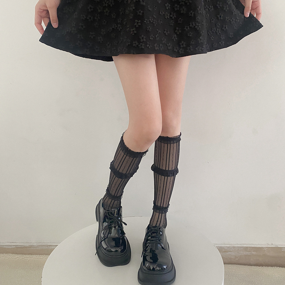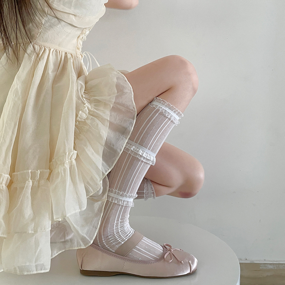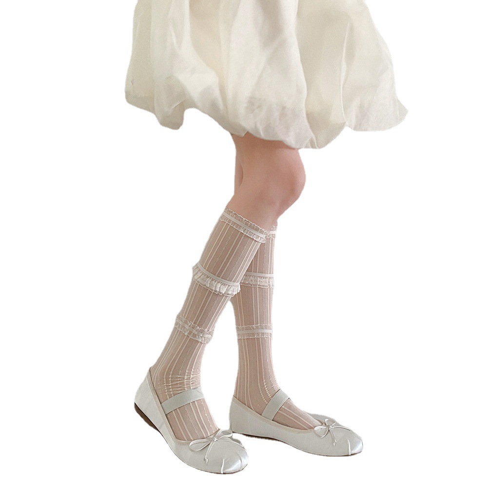 漫画腿中筒袜白色蕾丝三层花边个性甜美网纱透明薄款夏季小腿袜女