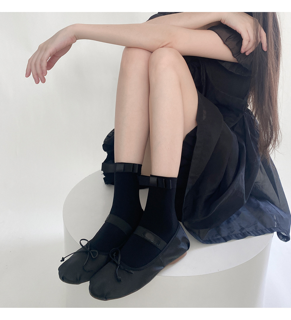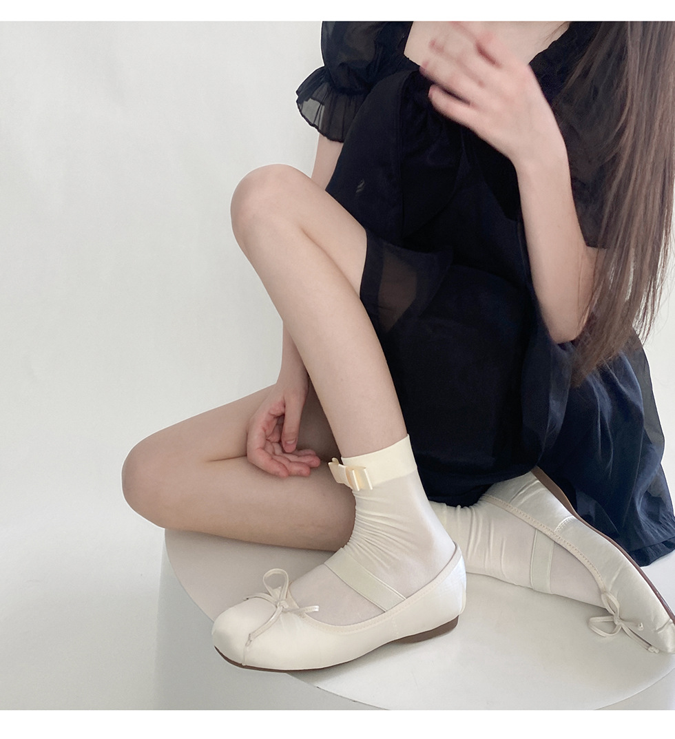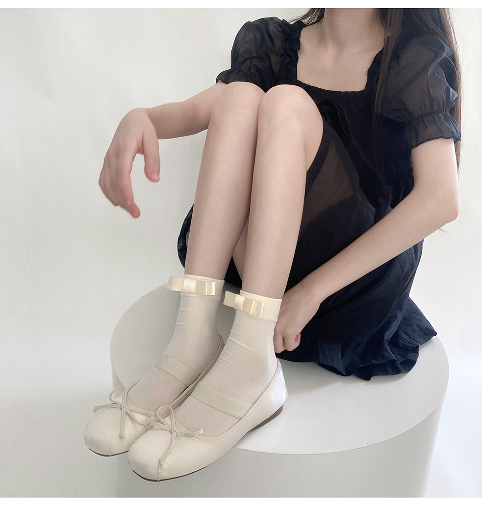 夏季新款日系百搭天鹅绒短袜奶白一字蝴蝶结甜美少女中筒堆堆薄款